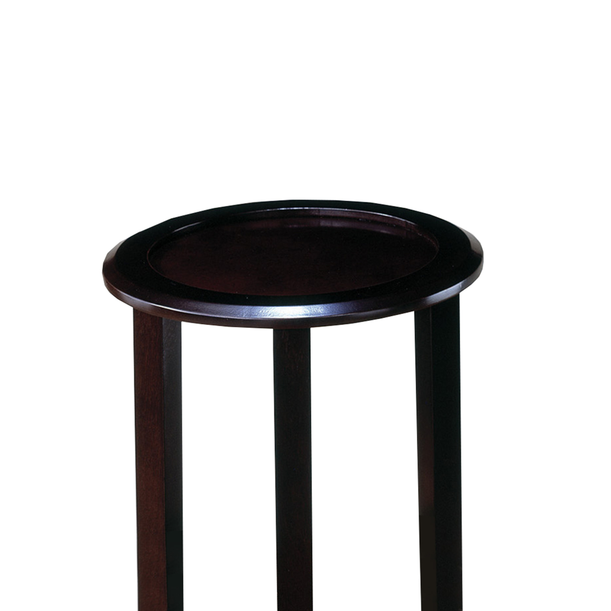 Elegant Plant Stand With Round Top Brown – Saltoro Sherpi Showcase a favorite vase of yours or a nice plant with this simple and small round plant stand. Finished in a polished espresso ( Brown) color this stand will radiate a sense of refinement and sophistication. Add another plant or accessory with an additional bottom shelf.