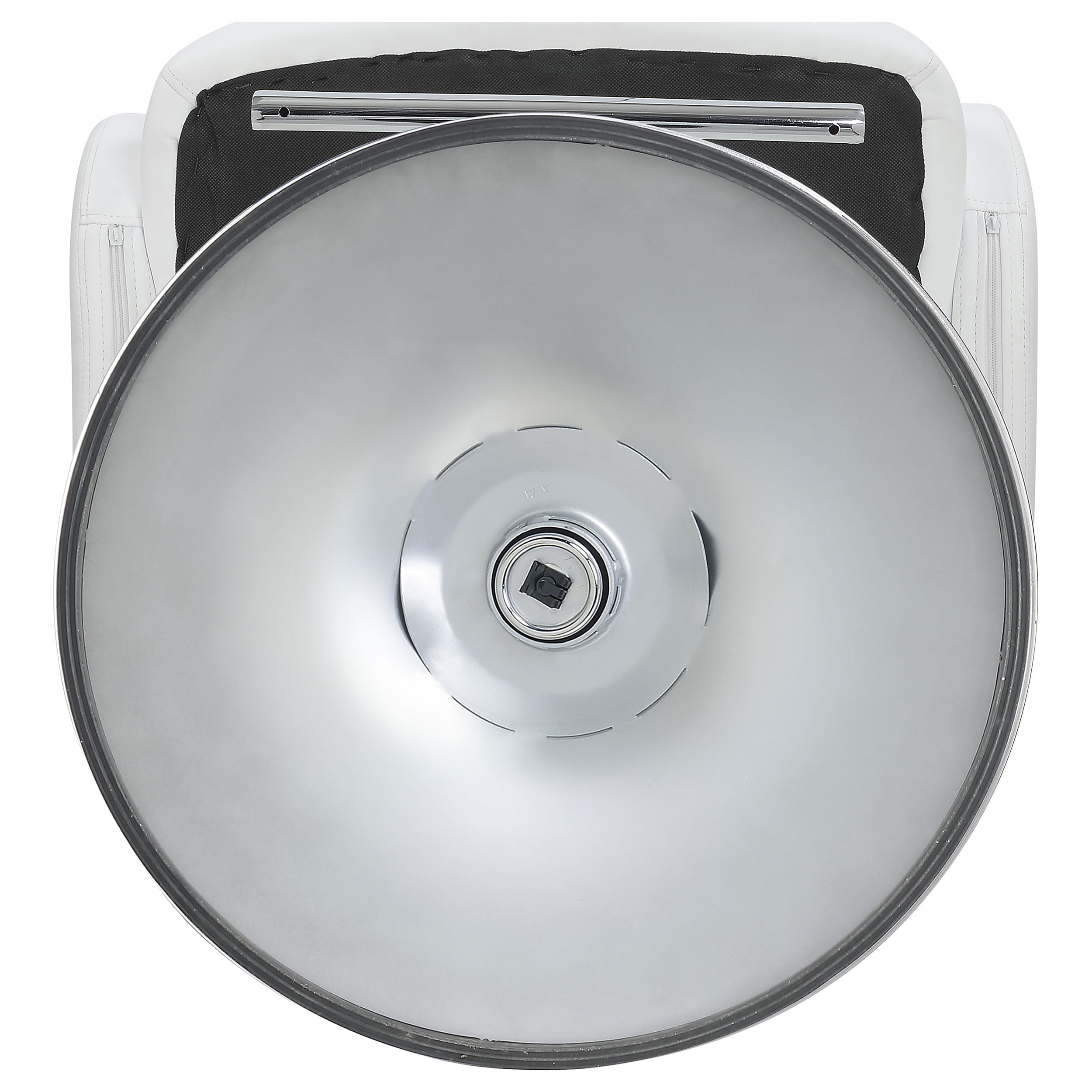 A rec room or home bar never had such chic bar seating. Chrome finish leg and base with shimmering white upholstery. Cushioned seat adjusts to maximize your presence, with chrome footrest to help maintain your perspective. Padded armrest allows you to lean comfortably in to make your point or sit back and nurse a martini. Trendy yet practical, bar stool is a modern enhancement to your home entertainment. Features: Includes: One (1) bar stool Metal finish: Chrome Upholstery: White Materials: Metal, Plywood, Faux Leather Materials content: 85% polyester, 15% polyurethane Cleaning code: S Cushions: Attached Type of pattern: Chrome base, wrapped in black vinyl Type of swivel plate: 360 degree Specifications: Product Dimensions: 39″-45″H x 24″W x 24″D Product Weight: 30.58 lbs Seat Dimensions: 25″-31″H x 15″W x 18″D Adjustability: from 39″ – 45″H Assembly Required: Yes Warranty: One (1) year limited manufacturer warranty