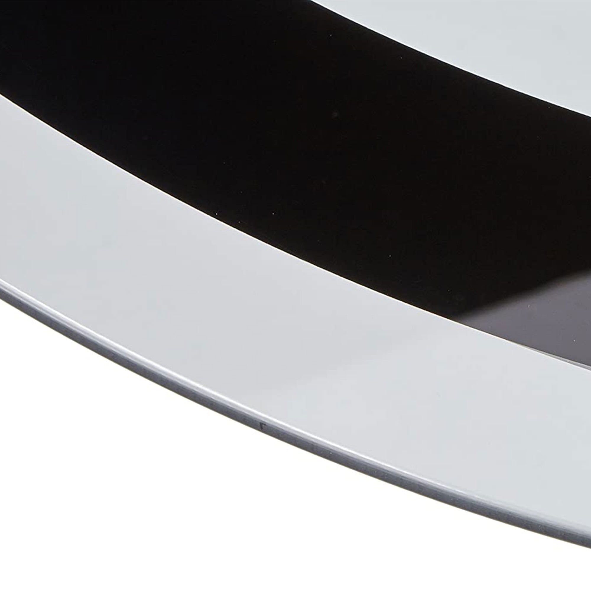 Coffee table features a round top for resting beverages or home decor Durable tempered glass surface adds a casual glamour to any room in your home Table design features a black frame around the tabletop edge to enhance the silhouette Curved metal chrome table legs crisscross each other to provide stylish support Minimal assembly is required before use Set includes: One (1) coffee table Weight capacity: 200 pounds Material: Tempered glass Color: Chrome and black Dimensions (L x W x H): 35.5 x 35.5 x 20 inches Weight: 46.38 pounds Manufacturer warranty: 1-year warranty