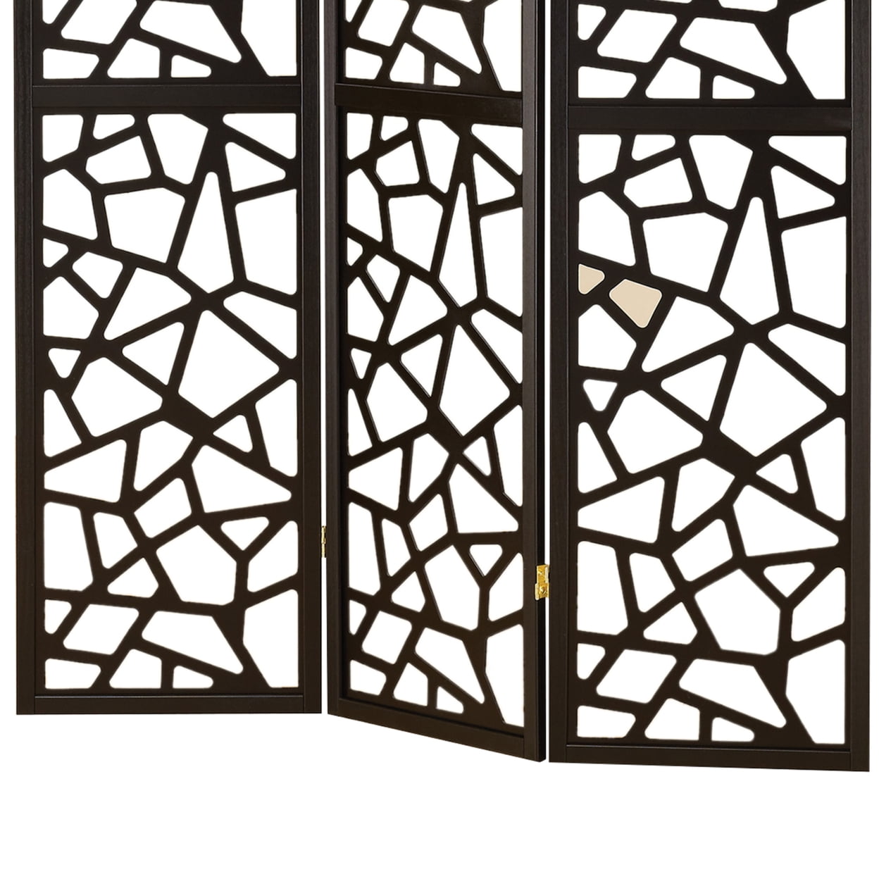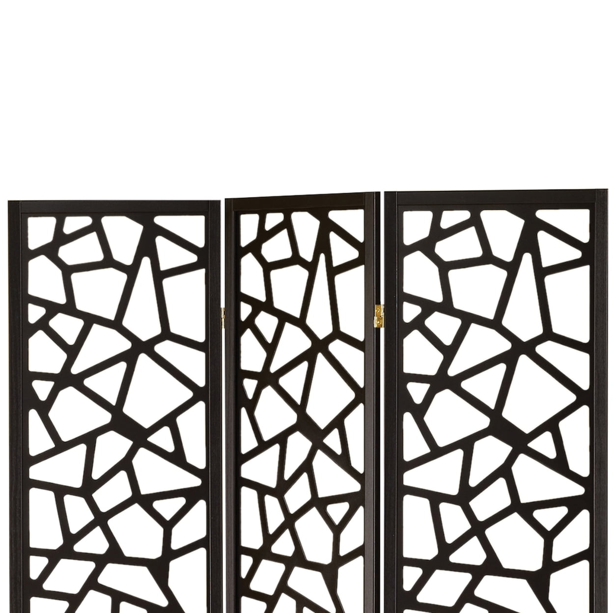 Nailan 3-Panel Room Divider Folding Screen Black Open Mosaic
