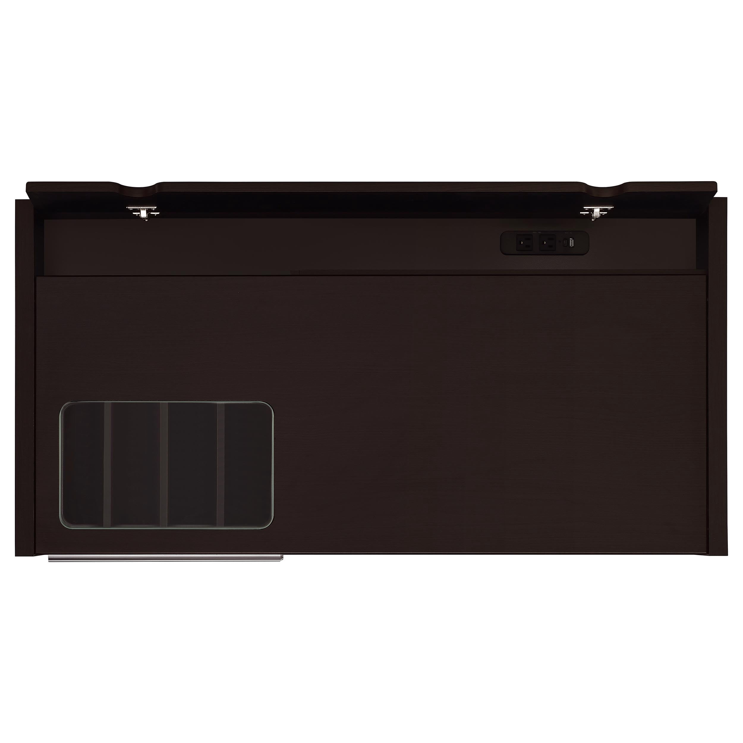 A basic piece with tasteful upgrades, this computer desk stays atop tech needs while offering a fresh, modular aesthetic. Finished in deep cappuccino, it offers versatility and bold style. Find everything you need for smooth computing, including two drawers and a keyboard drawer with Euro glides, and a storage cabinet with an adjustable shelf. Components and devices are viewable through a clear tempered glass insert on the desktop. Enjoy the convenience of a power outlet within lift-top storage. Features: Includes: One (1) connect-it desk Wood finish: Cappuccino Hardware finish: Silver Materials: MDF, hollow board, paper laminate, particle board, glass Connect-It office desk in cappuccino finish Lift-top cord management compartment, a keyboard tray, two (2) storage drawers, and one (1) file cabinet are features of this desk Clear tempered glass insert on desk offers clear view of devices Drawer: Euro glides Power/USB outlet: 1 Keyboard tray/drawer: 27mm 2-step ball bearing slide Power cord length: 76″ Drawer joinery method: Front cam bolt with nut and back screw construction Number of compartments: 2 (in door) Size of letters: No Hardware type: Pull handle Leveler/plastic glide: Plastic glide Specifications: Product Dimensions: 30.75″ H x 47.25″ W x 23.5″ D Product Weight: 101.2 lbs Number of Drawers: 3 Assembly Required: Yes Warranty: One (1) year limited manufacturer warranty