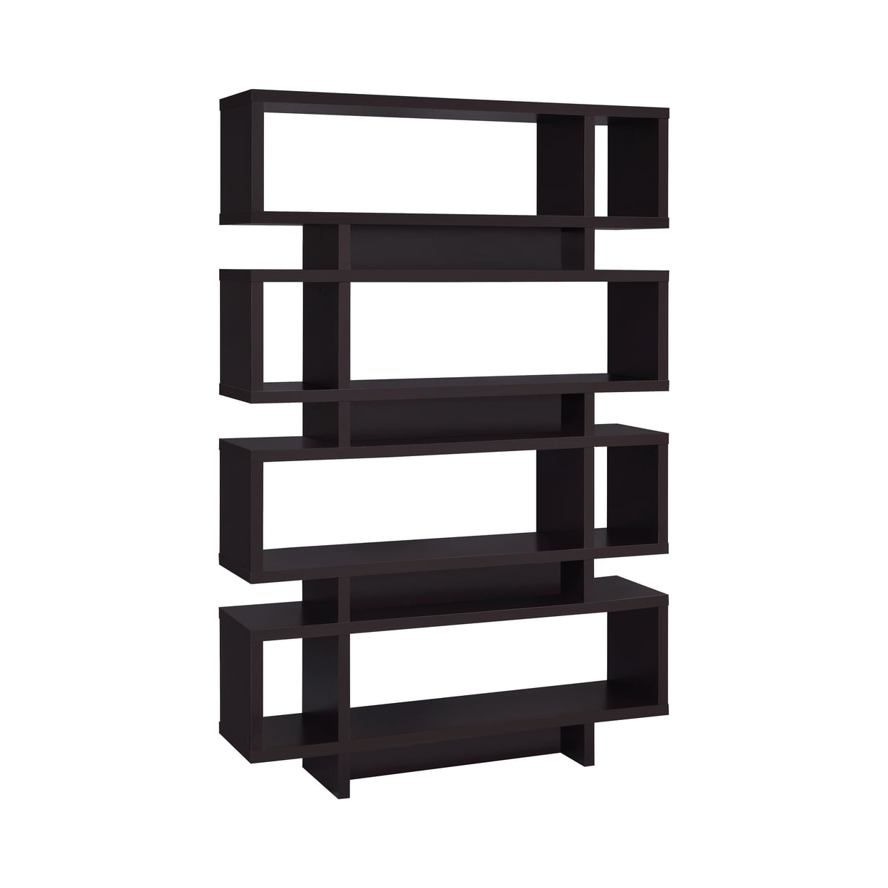 Contemporary shelving unit features 4 tiers of shelving and 3 smaller storage compartments to display books, decor, and photographs Suitable for your living room, family room, hallway, bedroom, kid’s playroom, or office Luscious cappuccino finish offers a dramatic, versatile aesthetic Laminate top coat makes this bookshelf easy to clean and keep clean Simply assemble with a quick, tool-free process Measures 11.5 inches deep, 72.75 inches tall, and 47.25 inches wide Material: Wood Color: Cappuccino Dimensions (W x H x D): 47.25 x 72.75 x 11.5 inches Weight: 114.4 pounds Manufacturer warranty: 1-year warranty Contemporary shelving unit features 4 tiers of shelving and 3 smaller storage compartments to display books, decor, and photographs Suitable for your living room, family room, hallway, bedroom, kid’s playroom, or office Luscious cappuccino finish offers a dramatic, versatile aesthetic Laminate top coat makes this bookshelf easy to clean and keep clean Simply assemble with a quick, tool-free process Measures 11.5 inches deep, 72.75 inches tall, and 47.25 inches wide Material: Wood Color: Cappuccino Dimensions (W x H x D): 47.25 x 72.75 x 11.5 inches Weight: 114.4 pounds Manufacturer warranty: 1-year warranty