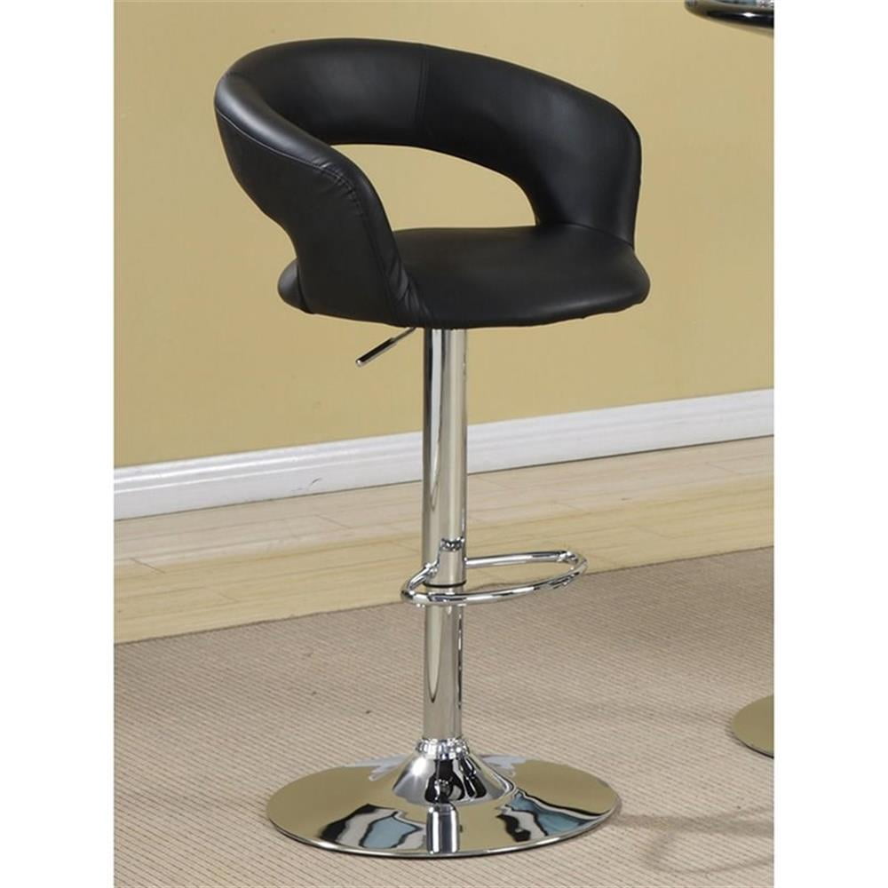 Sleek, elegant, and modern, this barstool is a fashionable choice. With comfortable seating and convenient height adjustability, it’s also exceptionally versatile. Its frame is constructed from high-quality steel for plenty of stable support. Its seat is upholstered in smooth faux leather with a thoroughly appealing texture. A classic, chrome base rounds out its design with pleasing polish and dazzling shine. Features: Includes: One (1) bar stool Metal finish: Chrome Upholstery: Black Materials: Metal, Plywood, Faux Leather Materials content: 85% polyester, 15% polyurethane Cleaning code: S Steel construction Swivels: Yes Adjustable: Yes Adjustable height: Overall height: 35″~40″, seat height: 24.5″~29.5″ Type of swivel plate: 360 degree Specifications: Product Dimensions: 35″-40″H x 23″W x 21.25″D Product Weight: 17.93 lbs Seat Dimensions: 24.5″-29.5″H x 14″W x 18.5″D Adjustability: from 35″ – 40″H Assembly Required: Yes Warranty: One (1) year limited manufacturer warranty