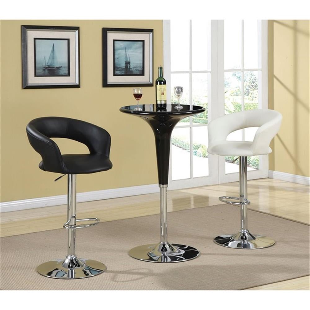 Includes: One (1) bar stool Metal finish: Chrome Upholstery: Black Materials: Metal, Plywood, Faux Leather Materials content: 85% polyester, 15% polyurethane Cleaning code: S Steel construction Swivels: Yes Adjustable: Yes Adjustable height: Overall height: 35″~40″, seat height: 24.5″~29.5″ Type of swivel plate: 360 degree