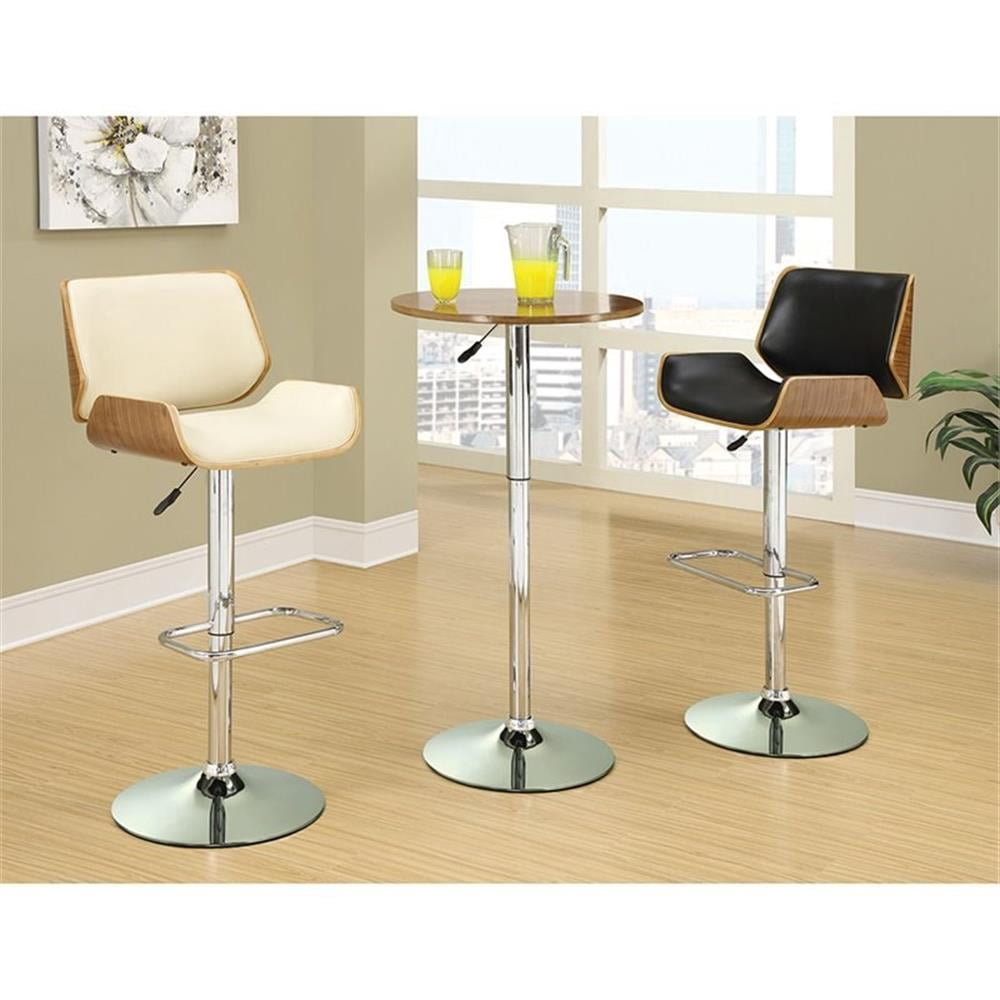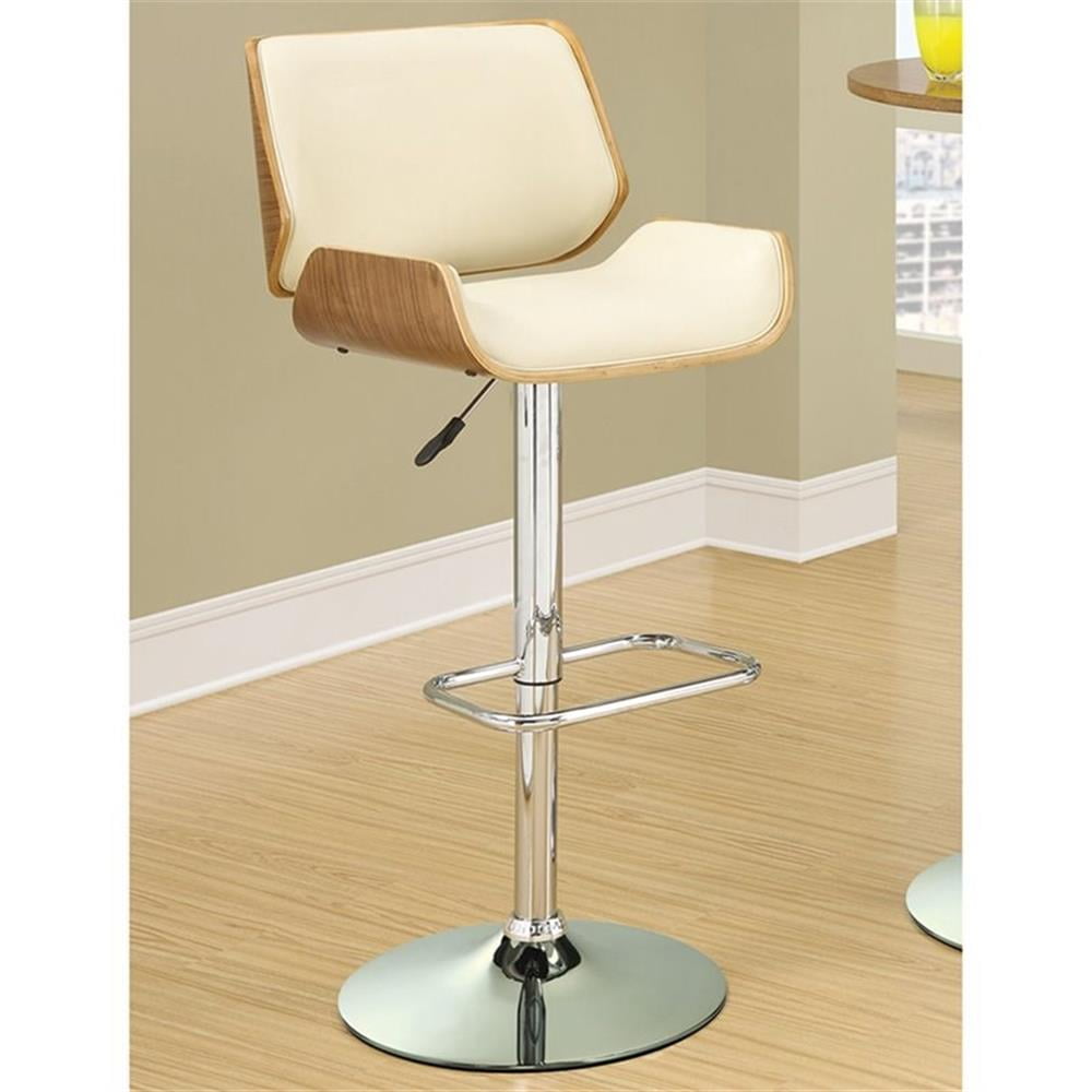 This fabulous recreational bar stool adds a comfy, creative touch to any entertainment area. It also works well in a home office or professional setting. A sleek, curved seat elegantly blends with a stylish, square back with rounded edges. Its high-shine chrome finish base fits appealingly with a modern decor style. You’ll enjoy hours of relaxing comfort and easy adjustability when you settle into this comfortable, durable seat. Features: Includes: One (1) bar stool Metal finish: Chrome Wood finish: Walnut Upholstery: Ecru Materials: Metal, Plywood, Faux Leather Materials content: 85% polyester, 15% polyurethane Cleaning code: S Type of swivel plate: 360 degree Specifications: Product Dimensions: 37.5″-43″H x 19.75″W x 20″D Product Weight: 27.5 lbs Seat Dimensions: 26″-32″H x 19.5″W x 16.25″D Adjustability: from 37.5″ – 43″H Assembly Required: Yes Warranty: One (1) year limited manufacturer warranty