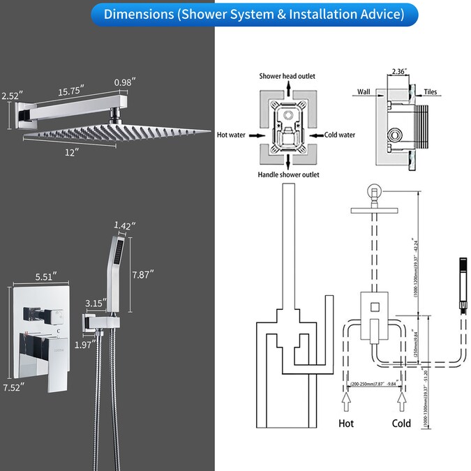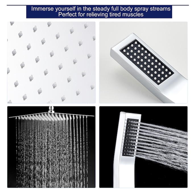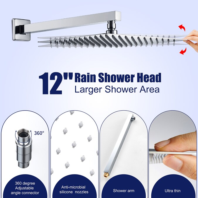 - Experience a luxurious rain shower with our innovative shower system featuring a 304 stainless steel 12-inch shower head and slim design for a sleek look.