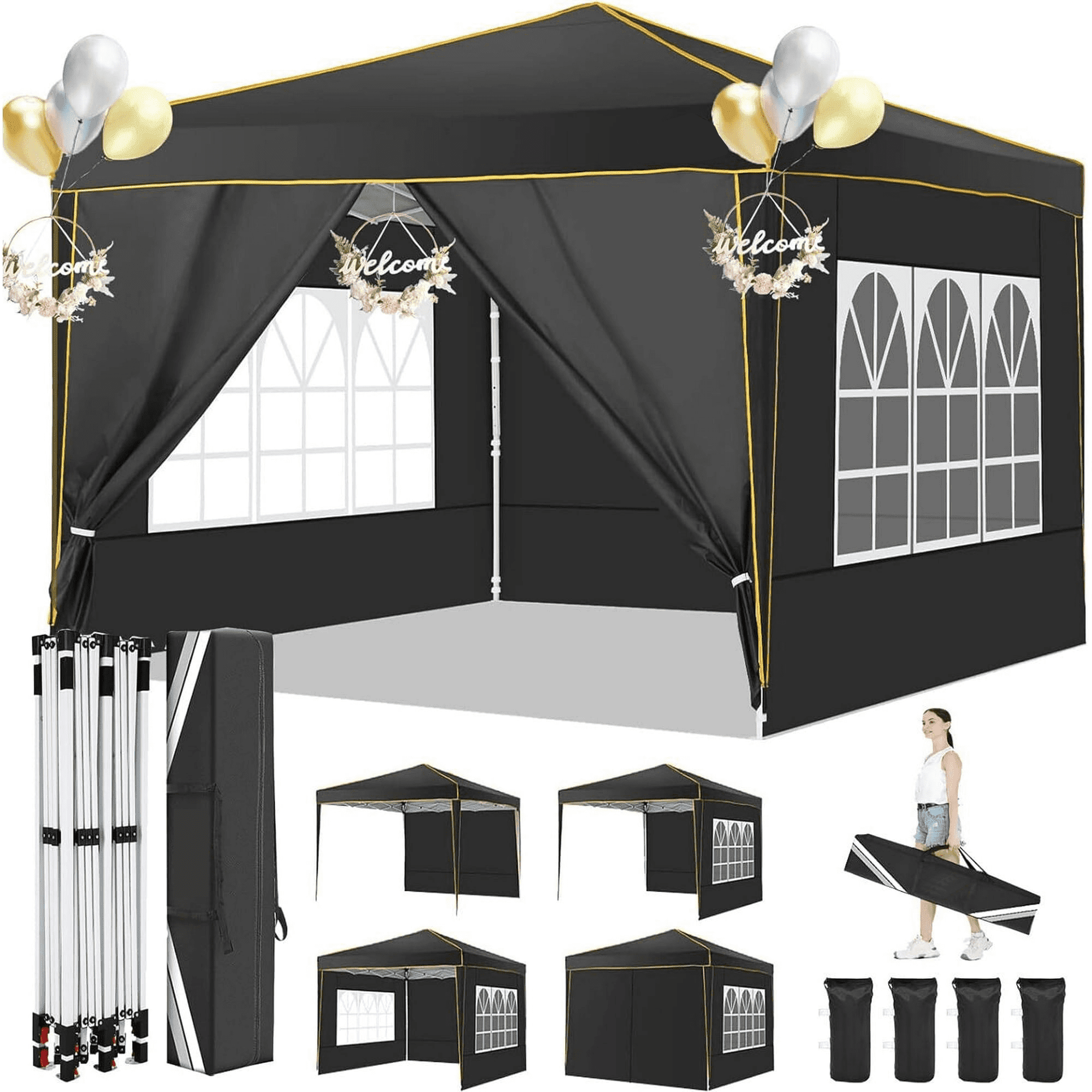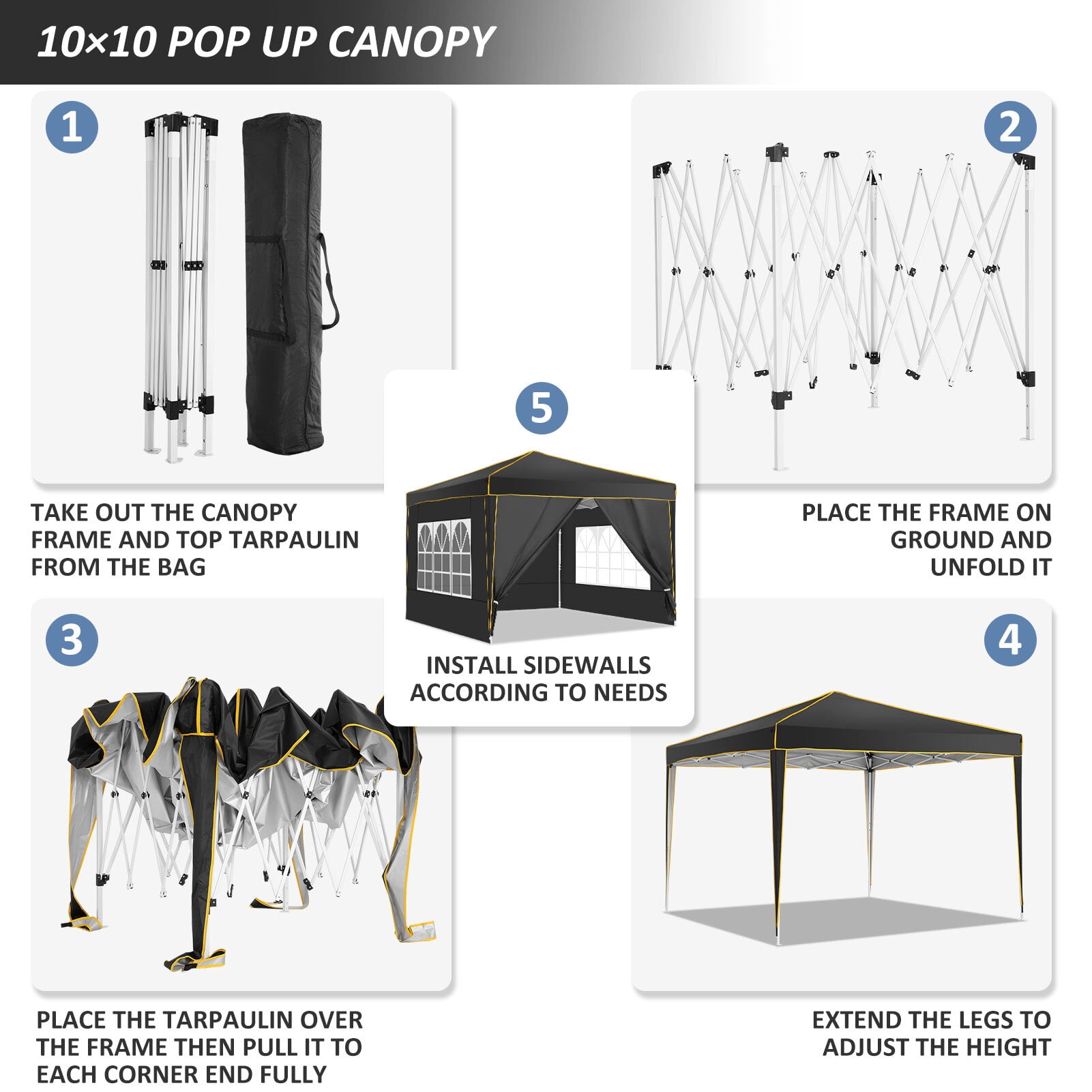 COBIZI 10×10 Pop up Canopy Tent Easy Pop up Tent Gazebo,Portable Ez up Canopy Suitable for Party Beach Camping Gathering Activities Waterproof &Upf 50+,Black