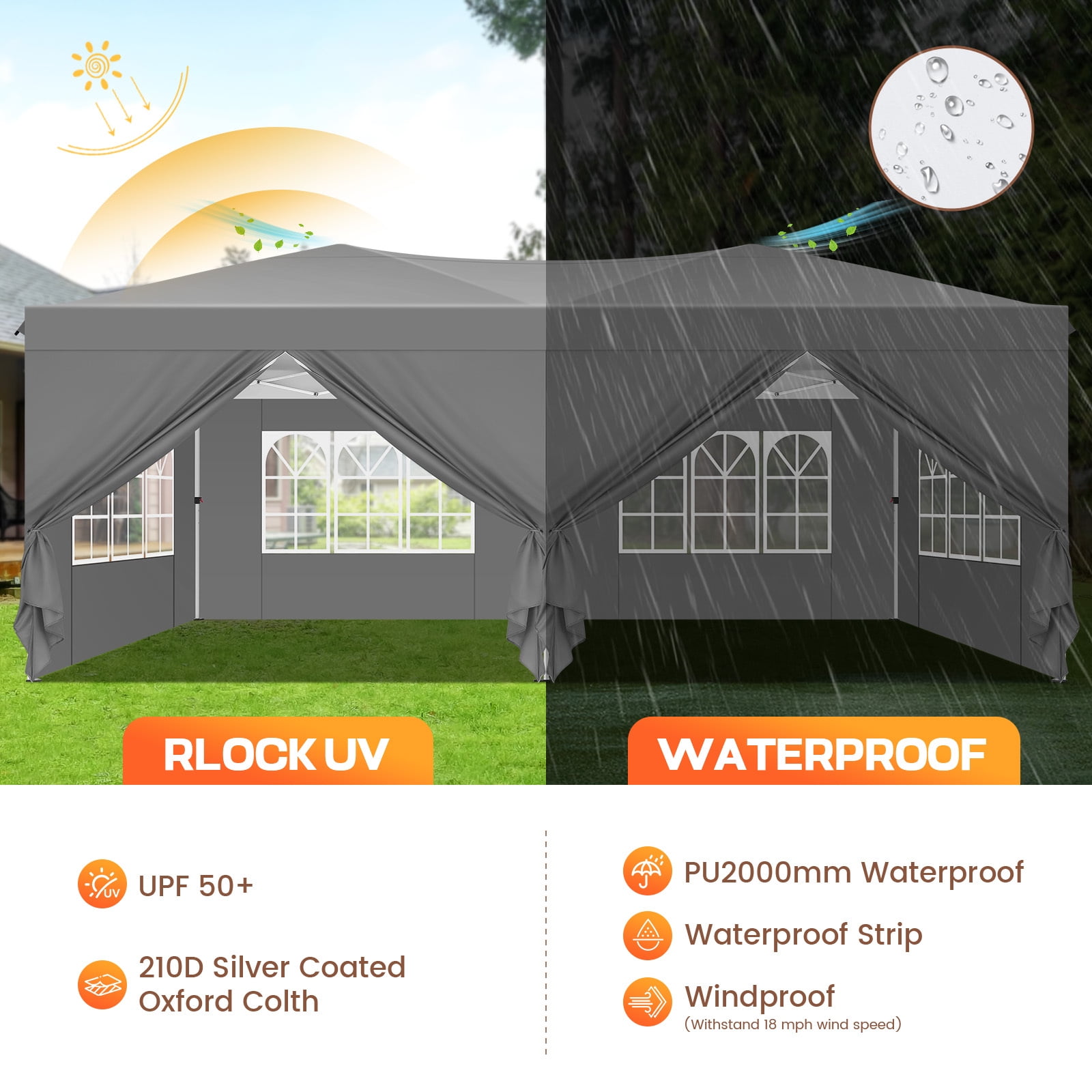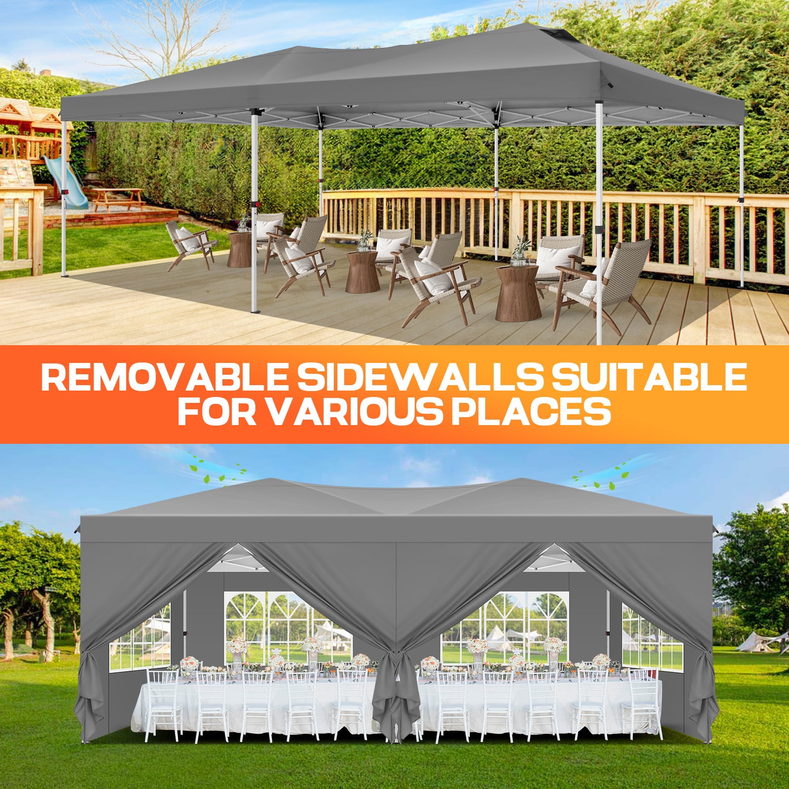 COBIZI 10×20 Pop Up Canopy Tent with 4 Sidewalls, Waterproof Instant Gazebo Shelter for Wedding Party Camping Outdoor Events with Air Vent and Carry Bag, Gray