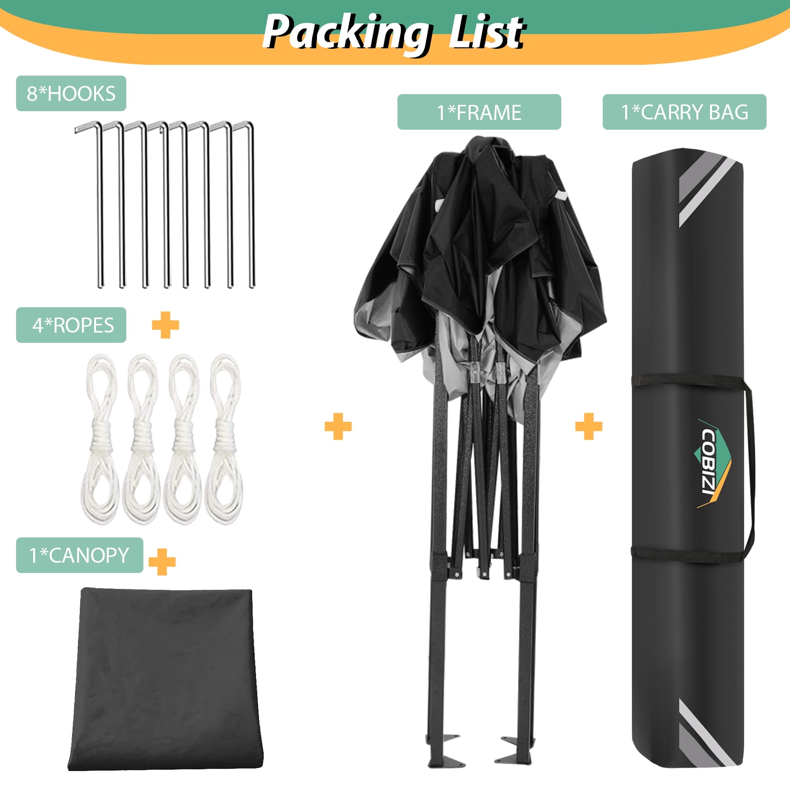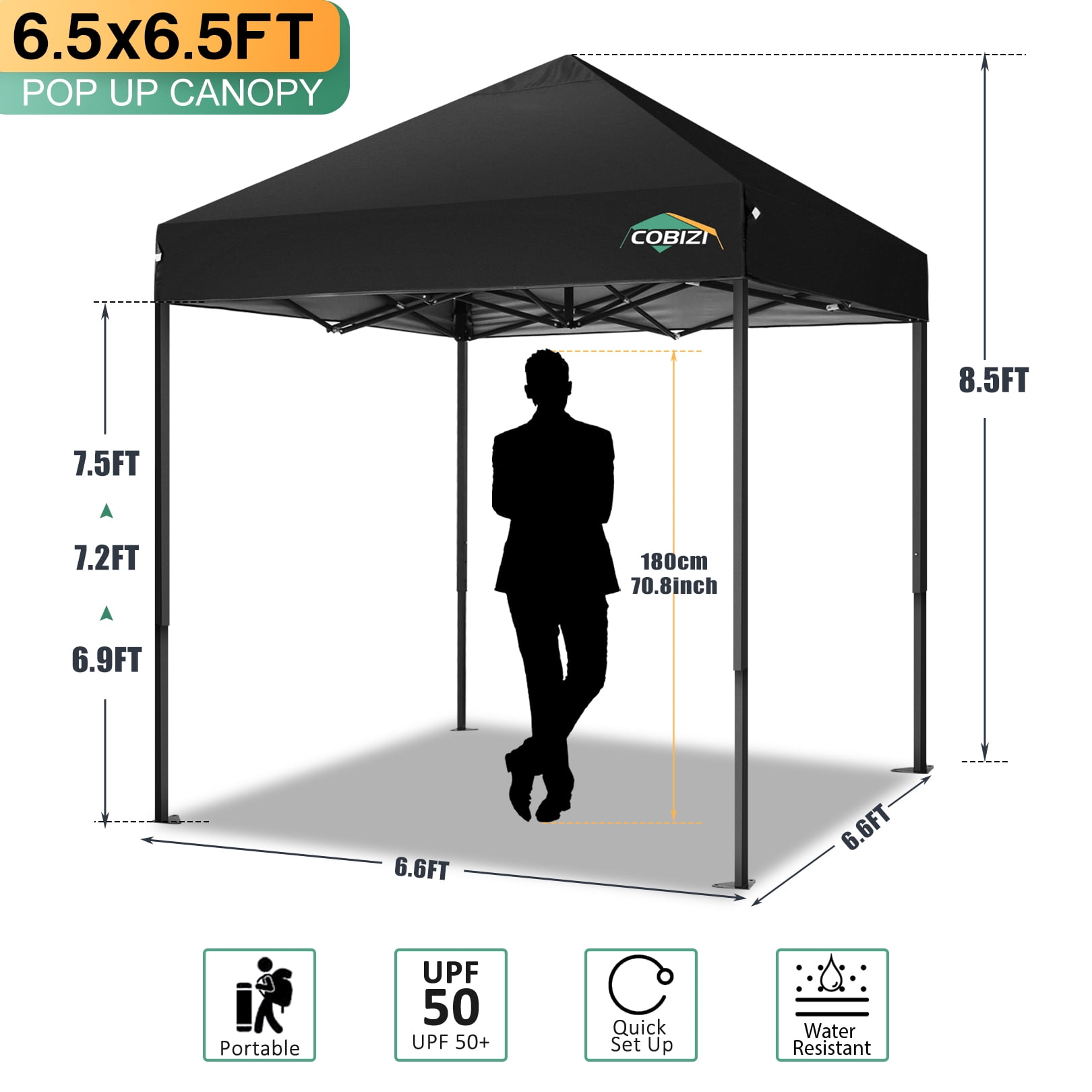 COBIZI Canopy Tent 6.6’ x 6.6’ Folding Outdoor Pop Up Heavy Duty Canopy COBIZI products range from Pop up Canopies, Heavy Duty Canopies, Party tents,Size types includes:10x10FT, 10x15FT, 10x20FT, 10x30FT,13x26FT. Each piece of our products is perfectly designed, rigorously tested for durability. COBIZI will be your best choice.