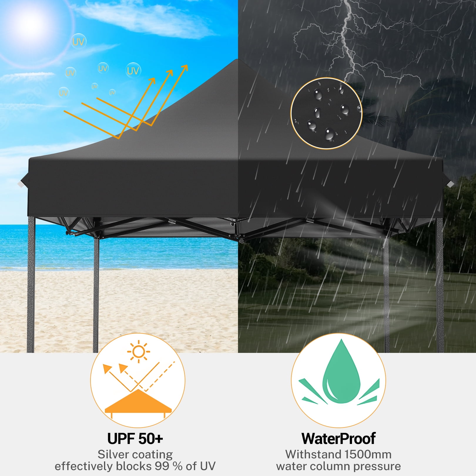 COBIZI Canopy Tent 6.6’x6.6’ Folding Outdoor Pop Up Heavy Duty Canopy for Beach Camping-Black