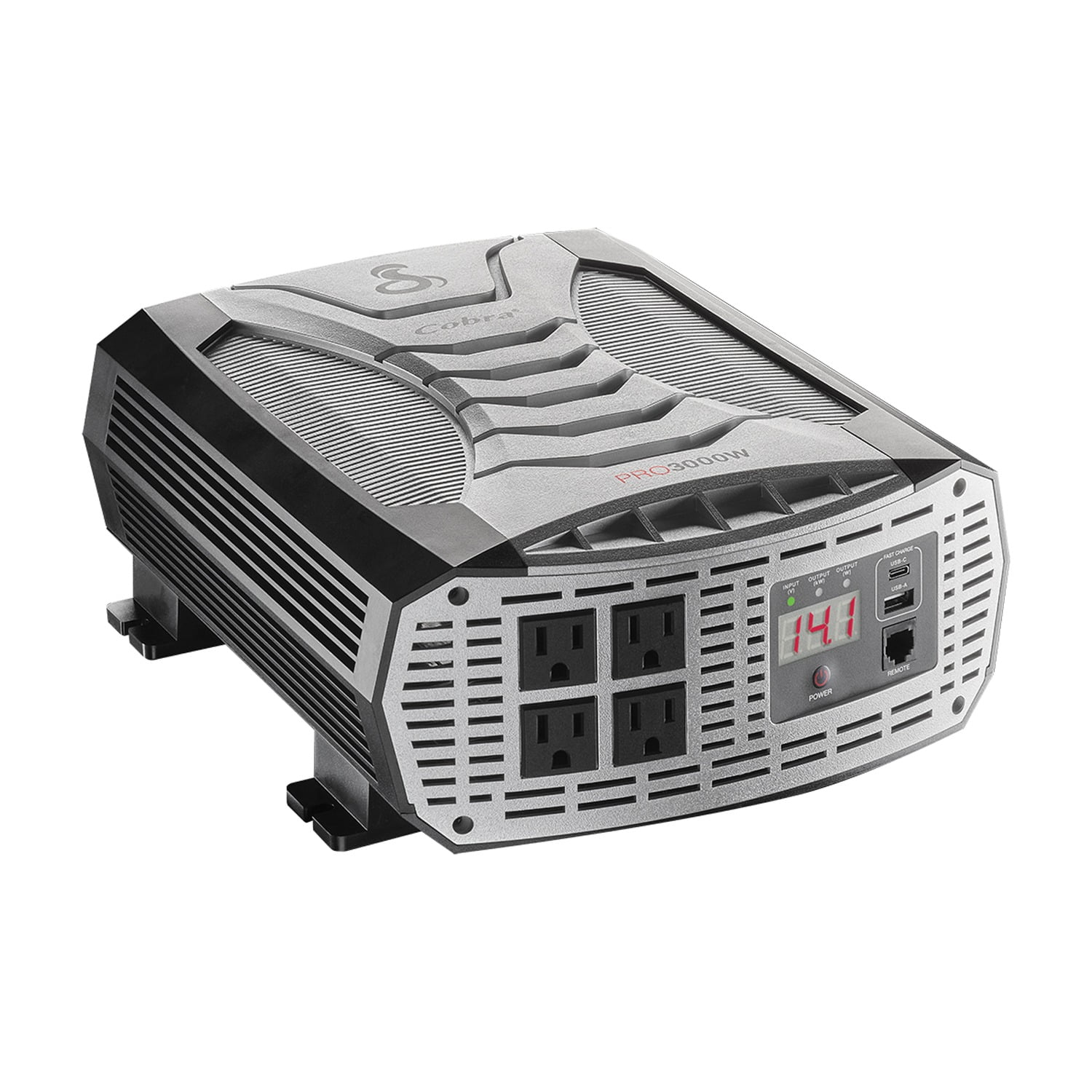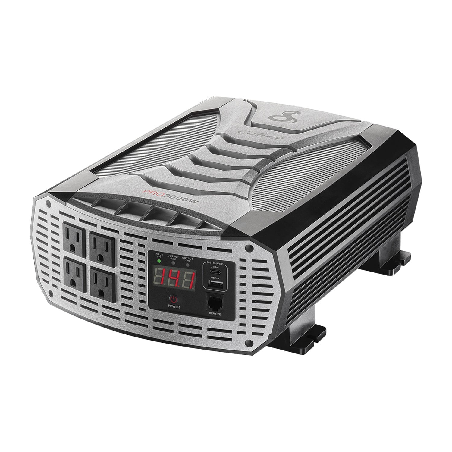 Cobra PRO 3000W Professional Grade Power Inverter Count on Cobra to Work, Play or Get Away The PRO 3000W Professional Grade Power Inverter with Fast Charge USB and Remote On/Off Controller is perfect for cross-country professional drivers, contractors, and RV enthusiasts who want to charge and power devices such as power tools, appliances, and electronics. POWER WHERE YOU NEED IT With 3000 Watts of Modified Sine Wave power, you’ll be able to charge and power your smartphones, laptops, electronics, entertainment devices, power tools, kitchen and bath appliances – safely and reliably