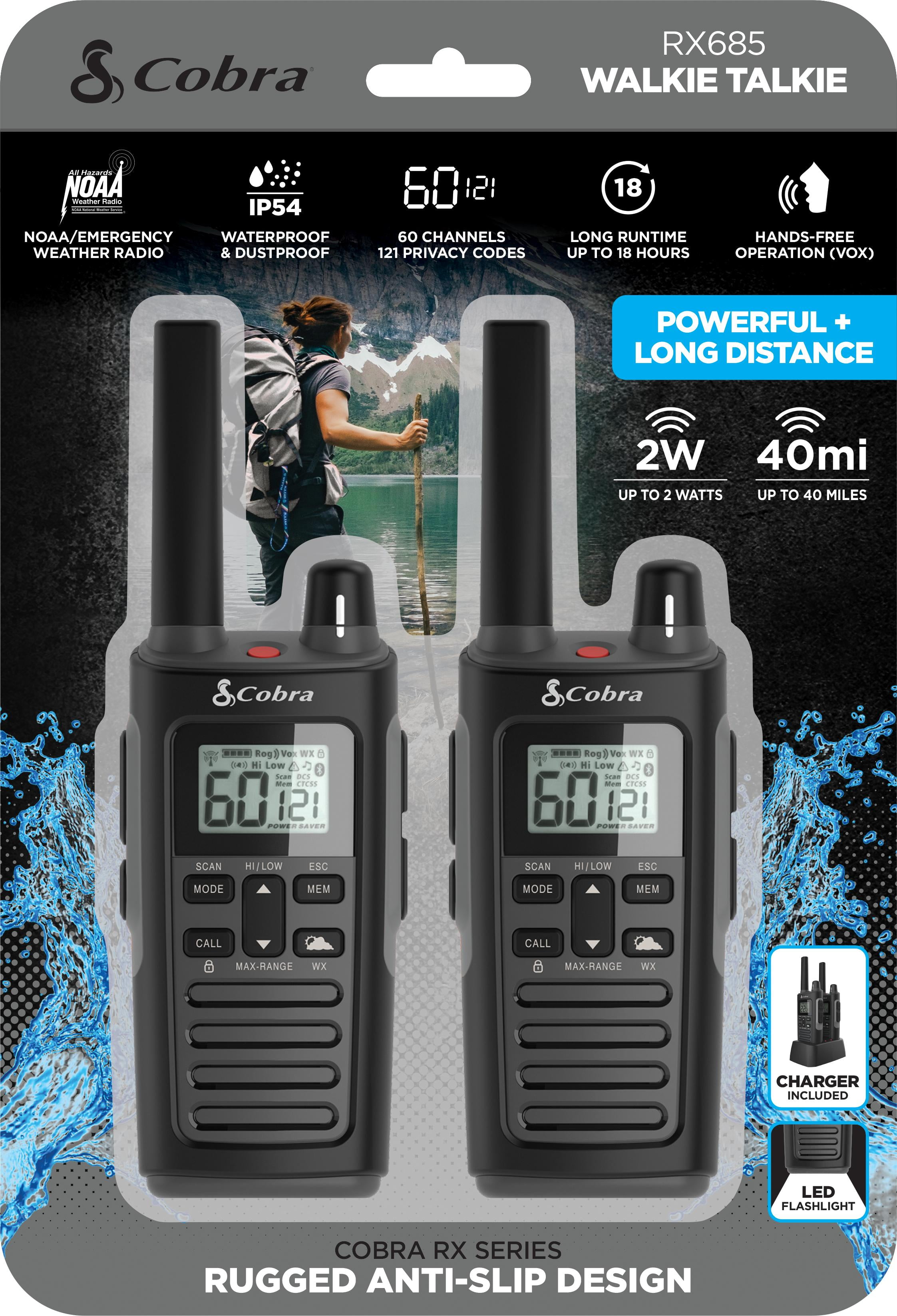 Cobra RX685 Walkie Talkies Two-Way Radios (Pair), 40-mile Range and 60 Channels with 121 Privacy Codes – IP54 Waterproof & NOAA Weather Alerts