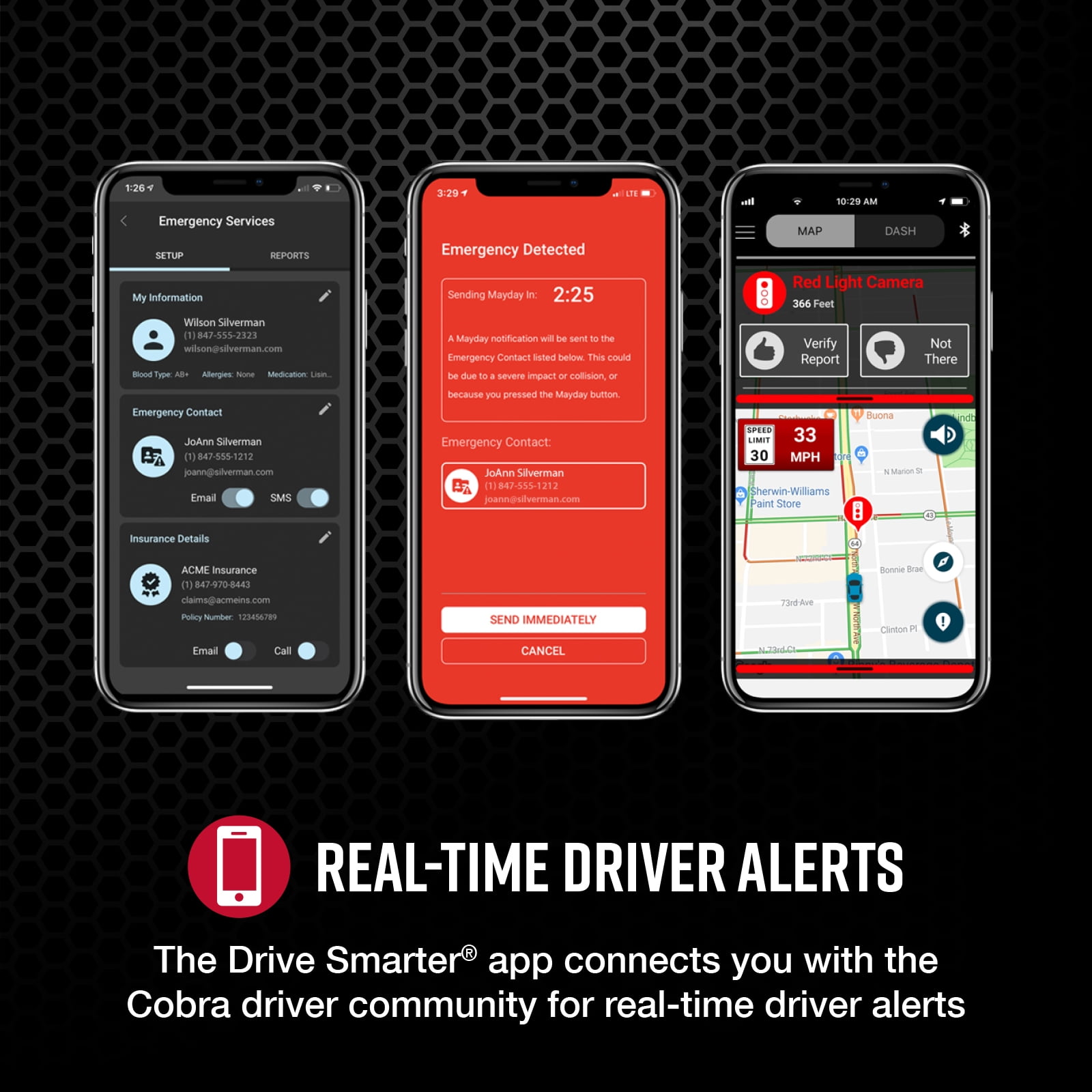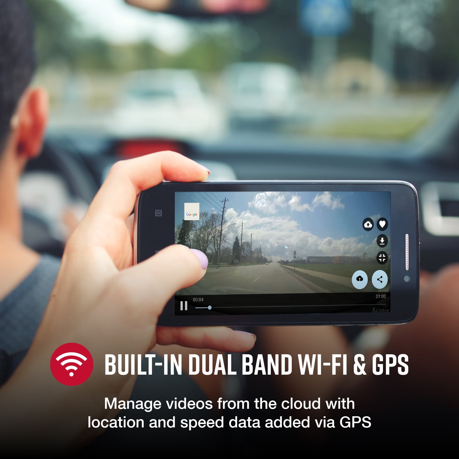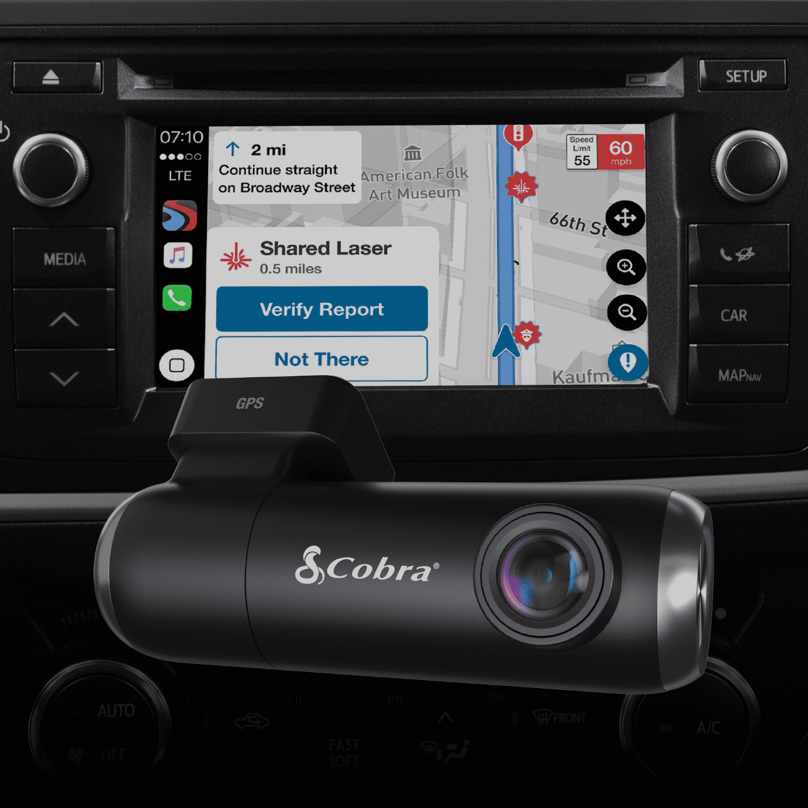 Cobra SC 100 Single-View Smart Dash Cam – 1080P Resolution, Wi-Fi & GPS with our Newly Improved Drive Smarter App with Apple CarPlay® & Android Auto® Integration There’s Never Been More Safety in Simplicity Life is full of uncertainty. Life on the road, even more so. Take some of that uncertainty away with the Cobra SC 100. This dash cam was designed with safety in mind, offering you front and rear recording, live police alerts, Incident Reports, and Mayday Alerts if a severe impact is detected. The SC 100 is there to help protect you and the ones you love from life’s blindspots. Featuring Full HD 1080P video resolution that continuously records the road ahead, you’ll be able to capture anything that may happen. An included SD card and cloud storage allow you to record videos locally and save emergency videos and photos in the cloud. Record ahead, behind, and even inside the vehicle all at the same time so you can cover all the angles and know exactly what happened. Connect to the Drive Smarter® community to get live, shared alerts from other detectors and drivers across the country. Plus, with Apple CarPlay® & Android Auto® compatibility, you can easily view your route and interact with alerts on your vehicle’s display. Your Travel Guide & Your Camera Crew Cobra SC Series dash cams are designed to protect you against life’s blindspots: past, present, and future. That’s why they’re the only dash cams that feature both trip-planning and heads-up navigation, so you’ll never have to look down at your phone while you’re behind the wheel. While an ordinary dash cam can tell you where you’ve been, only the SC series dash cams can show you where you’re headed. The Best Defense is a Sensor-Based Offense We’ve engineered our dash cams to protect you from anything that happens on the road. That’s why they’re the only dash cams that can display upcoming speed traps from a sensor-based network that’s more accurate than the leading crowd-sourced app. Because the best way to protect you from life’s blindspots is to make sure you know what lies on the road ahead.