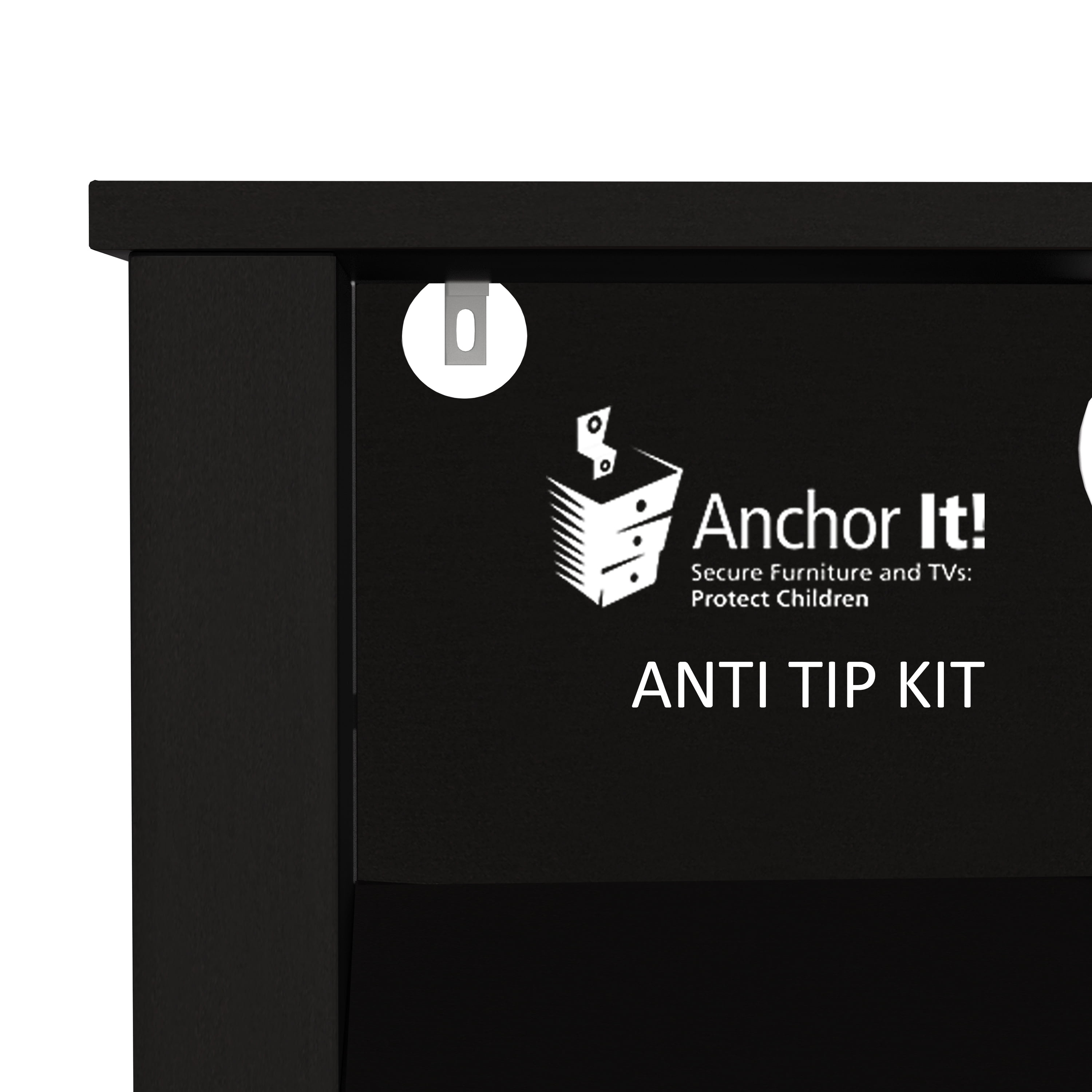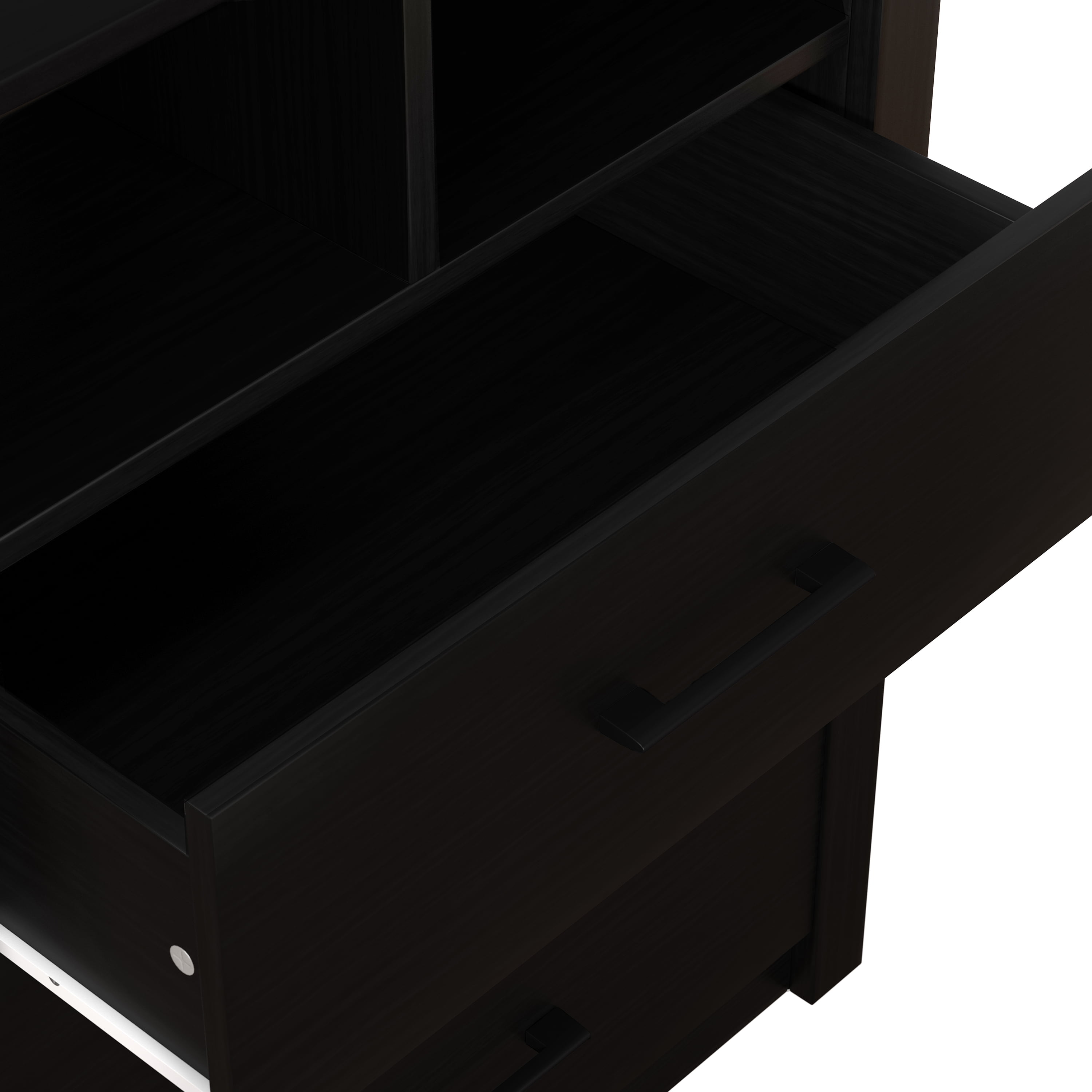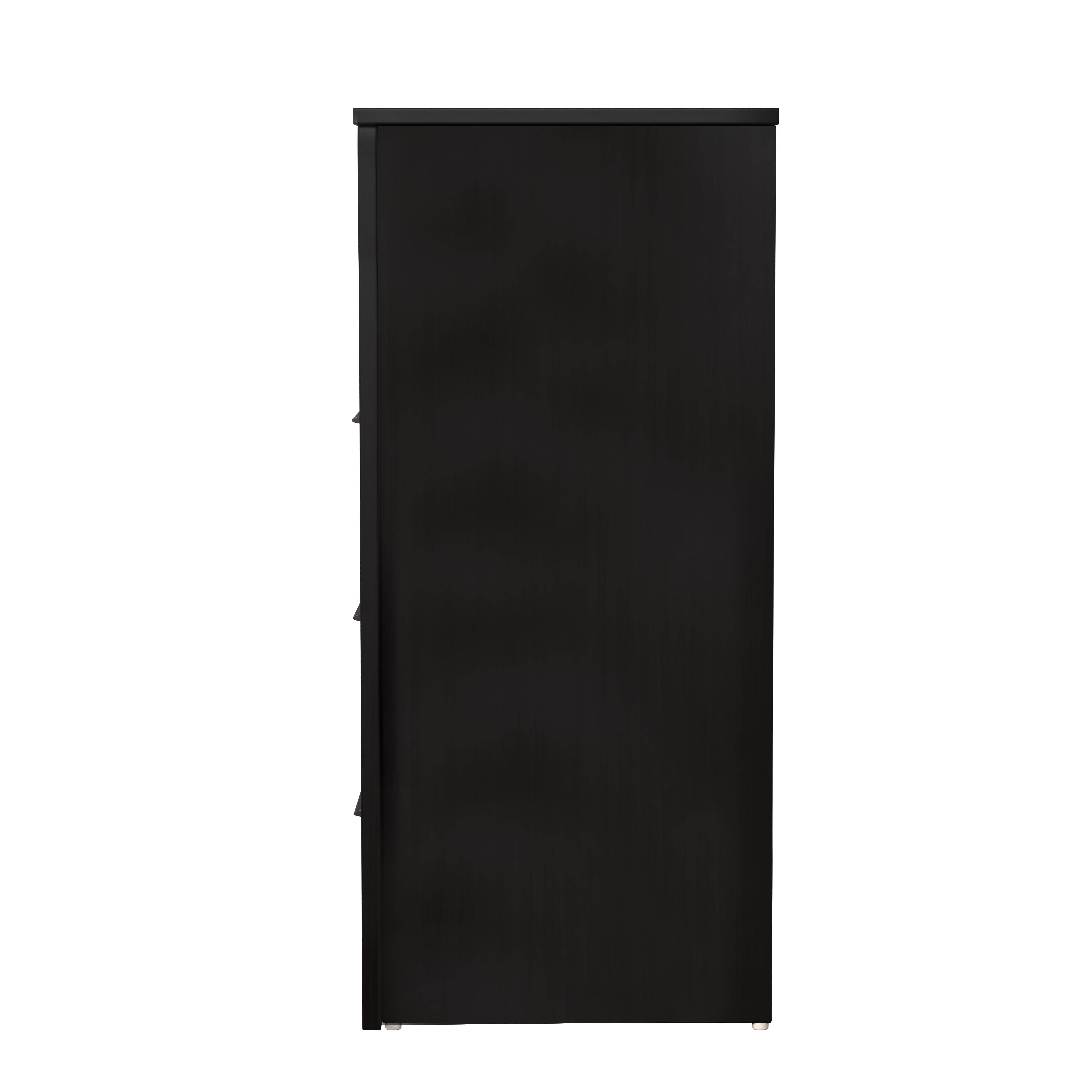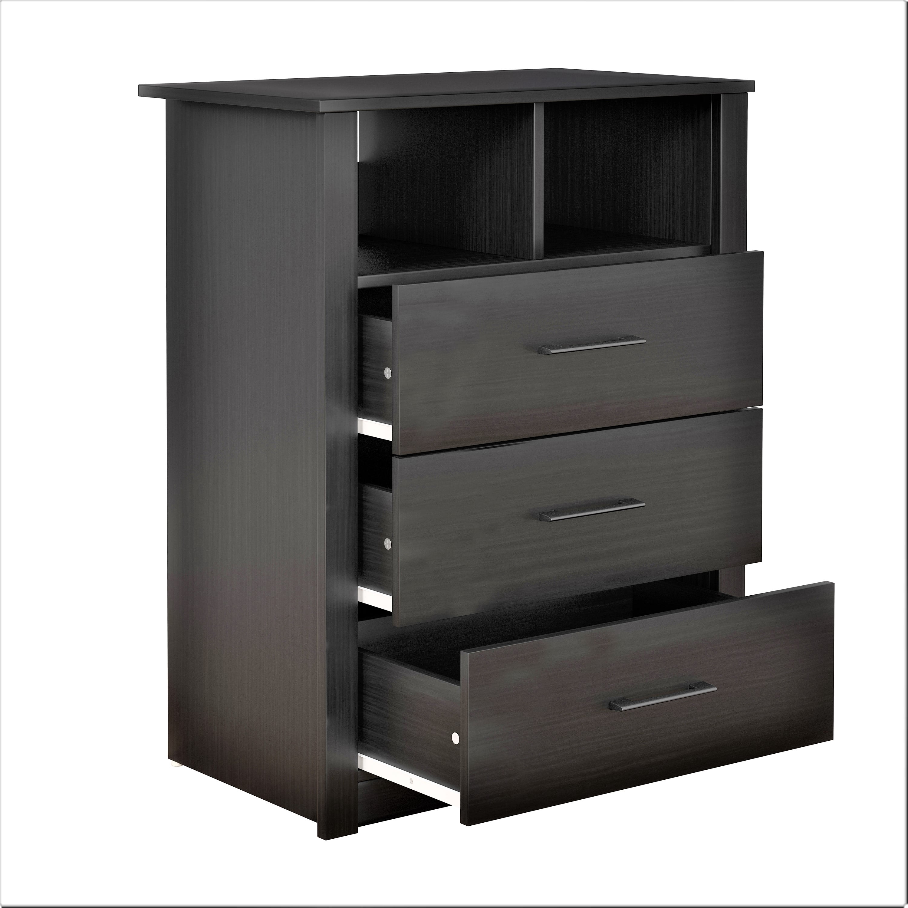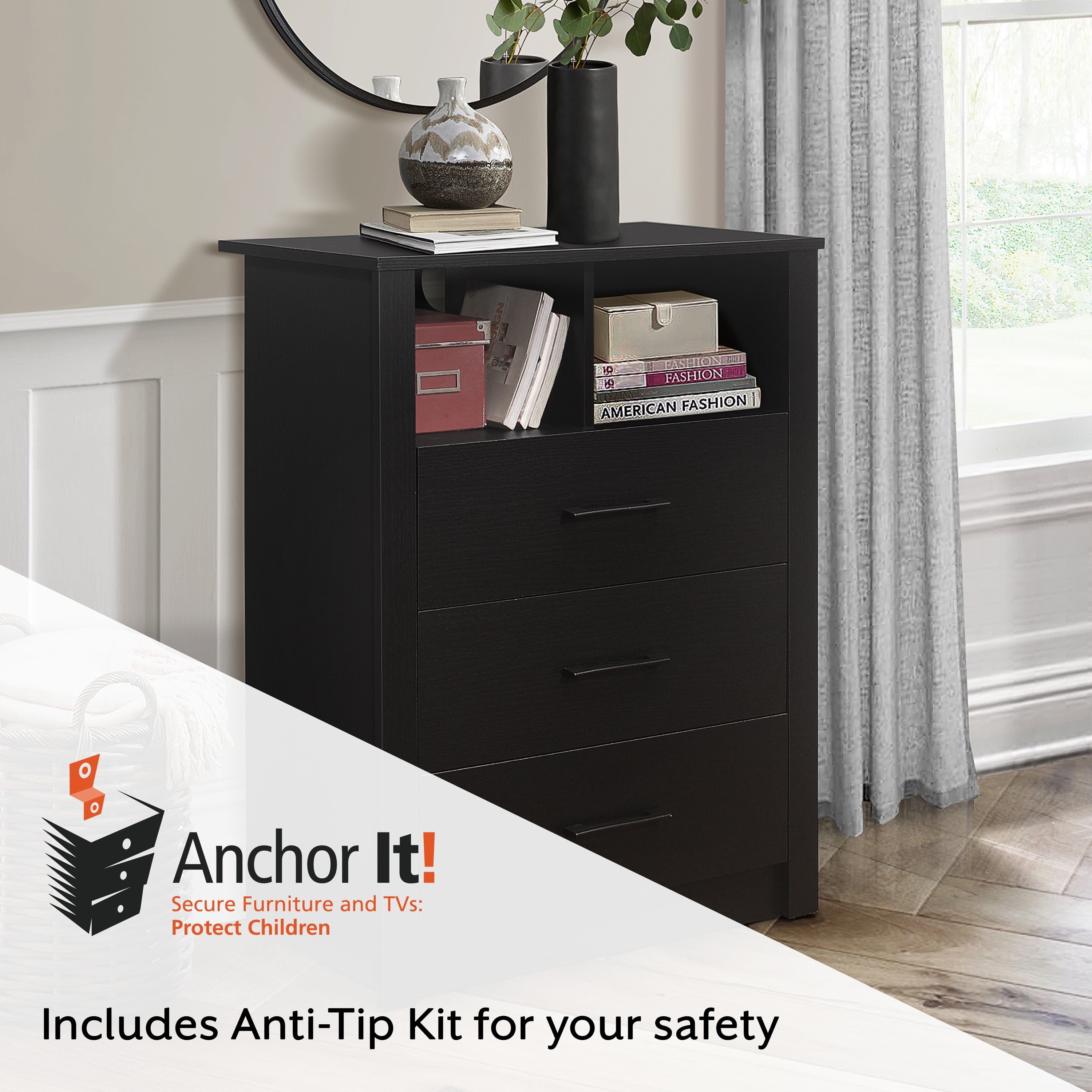 So what if you don’t have space for a massive entertainment console? We can help! Solve your space conundrums with our Coby 3 Drawer Media Dresser. This transitional vertical piece is specially designed to solve both space and media issues. The multi-functional Coby Media Dresser with an Black Oak Finish by Hillsdale Living Essentials offers multiple possibilities: Use the 3 drawers to store clothing or keep extra blankets organized, while the two open shelves 2 open storage shelves with cord management at the back can be home to a cable box, DVR and remote. Or, if you prefer, use the shelves to display your favorite treasures or things you want easily accessible. Or for even more options, wall mount your TV screen above the chest, use the compartments for your media components and decorate the top of the chest any way you want!