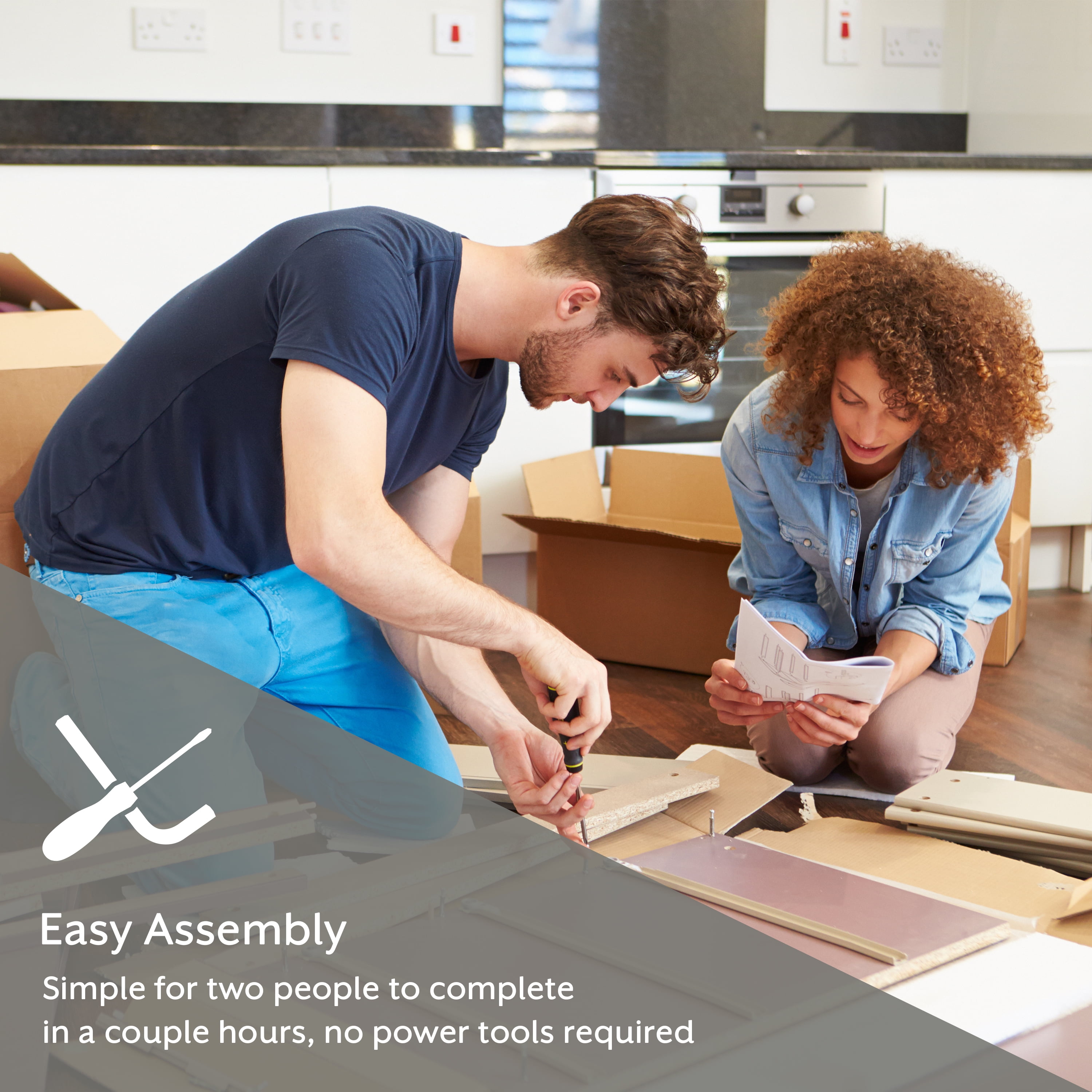 Assembled dimensions: 27.6″L x 15.6″W x 35.8″H Drawer dimensions: 21.3″W x 13″D x 4.4″H Open shelf dimensions (2 compartments): each is 11.3″W x 13.9″D x 8.6″H For use with a TV up to 25 lbs. in weight 2 open storage shelves with cord management at the back 3 drawers Made of composite wood and MDF Dust and polish with non-abrasive cleaners Includes anti-tip anchor hardware Assembly required Ships in 1 box