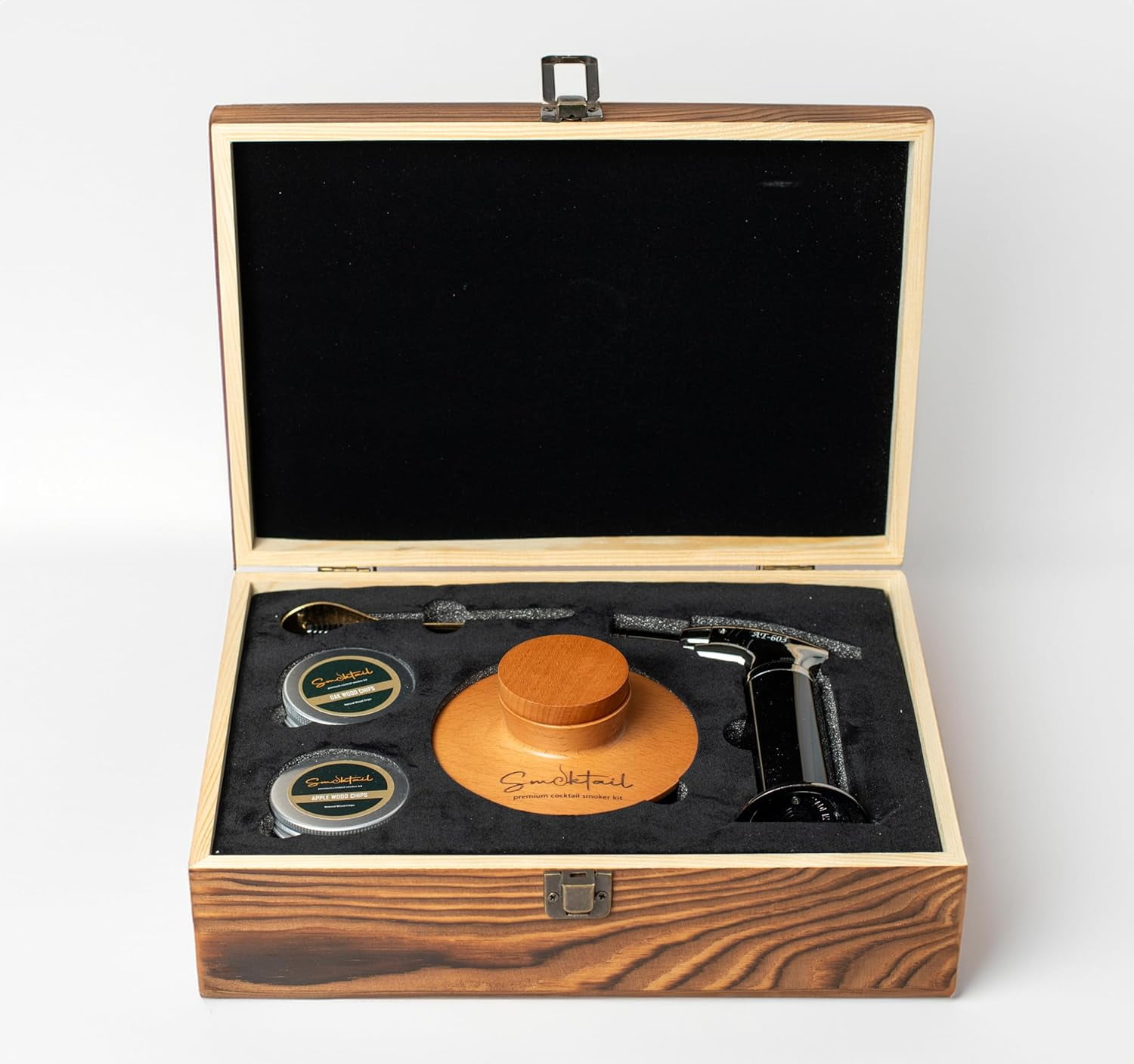 Exquisite Vintage Box Design: The Smoktail Vintage Cocktail Smoker Kit features an elegant, retro-inspired box that not only showcases the kit but also adds a touch of sophistication to any home bar. Crafted with meticulous attention to detail, this cocktail kit’s stylish packaging makes it a standout piece for any mixologist. Its charming aesthetic makes it a delightful addition to your entertaining setup, inviting guests to explore the art of cocktail creation. The Ultimate Gift for Cocktail Lovers: Searching for the perfect gift? The Smoktail Vintage Bourbon Smokers for Drinks is an exceptional choice for both men and women who appreciate fine spirits and innovative mixology. Ideal for birthdays, holidays, or special occasions, this Smoker Lovers Kit inspires creativity and adds a unique flair to any celebration. Delight your loved ones with a gift that encourages exploration of flavors and elevates their cocktail experience. Experience the Perfect Blend of Bourbon and Smoke: Elevate your cocktails with the Whisky Smoker Kit, designed to create the perfect blend of rich bourbon and aromatic smoke. By infusing your favorite spirits with a variety of wood flavors, you can enhance the depth and complexity of each drink. This transformative experience invites you to savor the nuances of flavor and aroma, turning every sip into a celebration of craftsmanship.