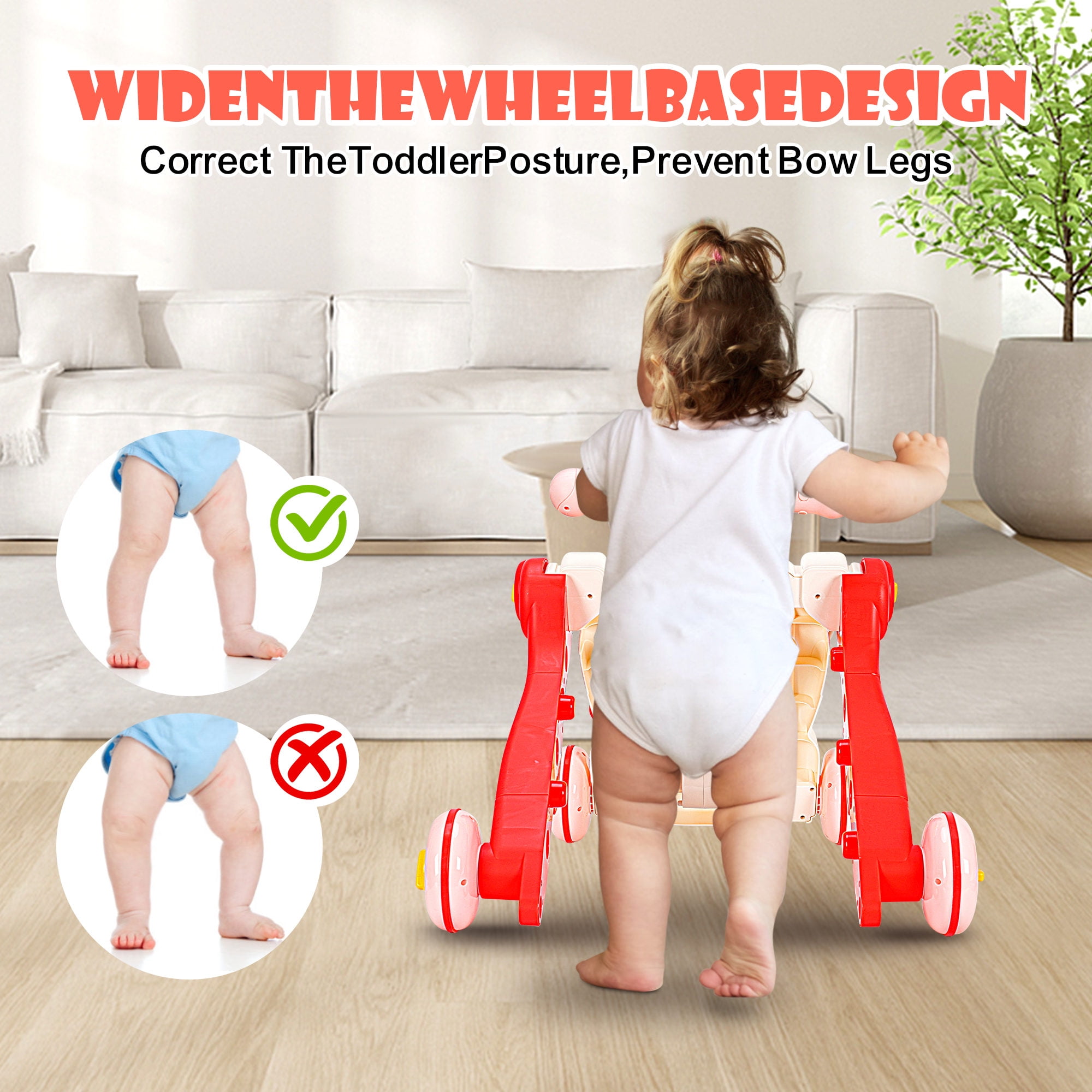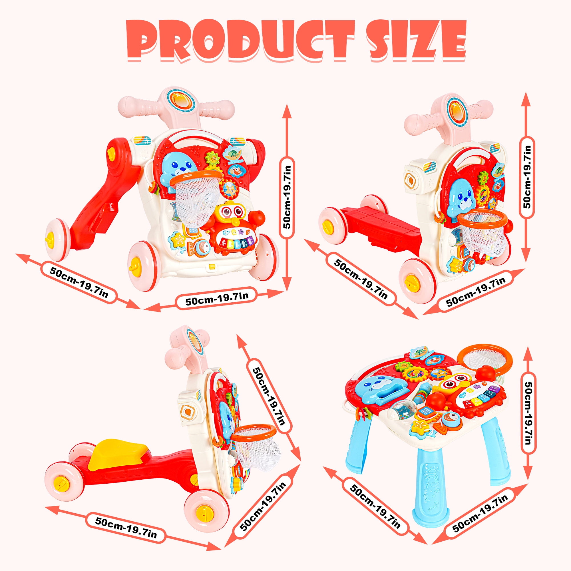 COCLUB 5-in-1 Baby Walker Push Toy & Activity Center for Infants 6-12 Months, Sit-to-Stand Learning Walker with Adjustable Speed, Pink