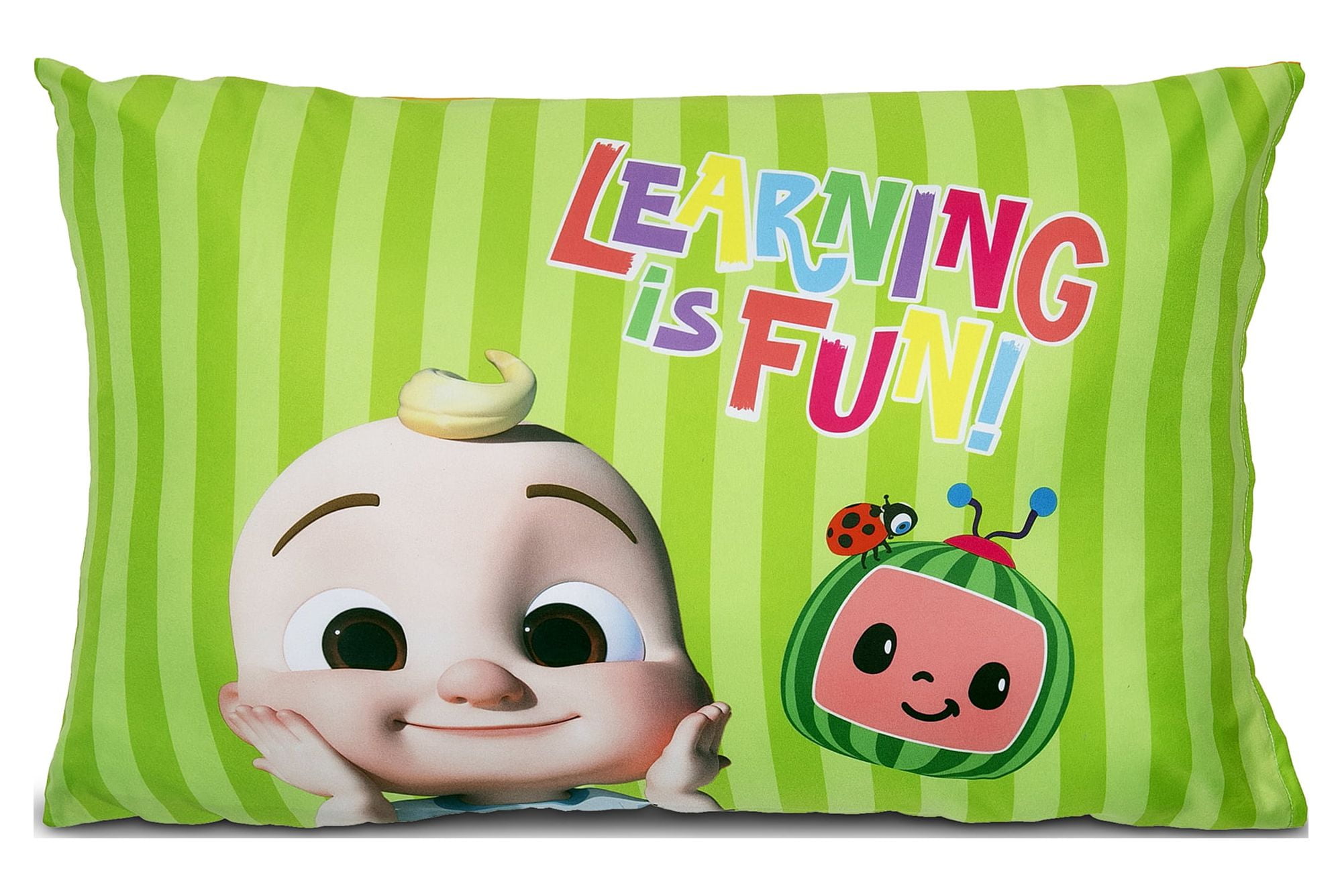 Inspire dreams of playful adventures for your little one with this colorful Cocomelon “Let’s Go Play” 5-piece toddler bedding set and plush blanket bundle. The colorful design featuring the beloved J.J. and his fun animal friends that love learning, music and adventure are sure to excite your child and make a versatile addition to any bedroom decor. This 5-piece set includes a reversible bedspread, flat sheet, fitted sheet, reversible standard size pillow case plus warm and cozy plush blanket. Fits a standard crib/toddler mattress. The comforter and pillowcase is reversible so you can flip them over and reveal a different fun design. Crafted for comfort, this bedding is made from high quality, super soft 100% Polyester that keeps kids cozy night after night. This bedding set is machine washable and designed to last without worrying about the color fading, making it a great choice for any child’s room.