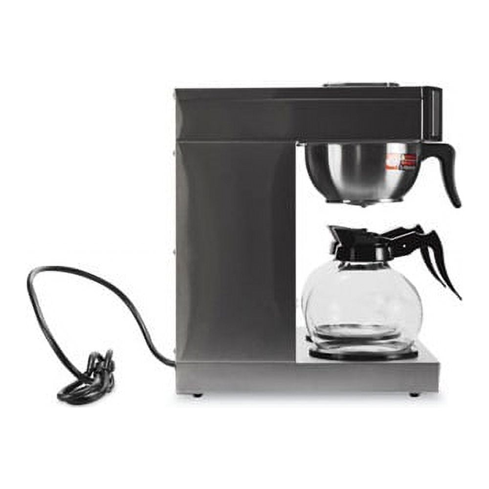 Three-Burner Low Profile Institutional Coffee Maker, 36-Cup, Stainless Steel Includes independent warmers. Designed for high energy efficiency. Fresh water pour-over system. Grounded cord with three prongs. For high-capacity service. Decanters sold separately. Independent warmers. High energy efficiency. Designed for fresh water pour-over. Grounded cord with three prongs. High capacity service. Decanters sold separately. – Carafe Material: Glass – Warmer: Yes – Depth: 14.75″ – Material: Stainless Steel – Number of Burners: 3 – Color: Stainless Steel – Compliance Standards: cUL Approved, UL Commercial Listed – Height: 17″ – Global Product Type: Commercial Drip Coffee Brewers – Width: 15.5″ – Number of Warmers: 3 – Number of Cups: 36 – Product Biodegradability in Days: 0 – Product Biodegradability Indicator: N – Product Compostability Indicator: N