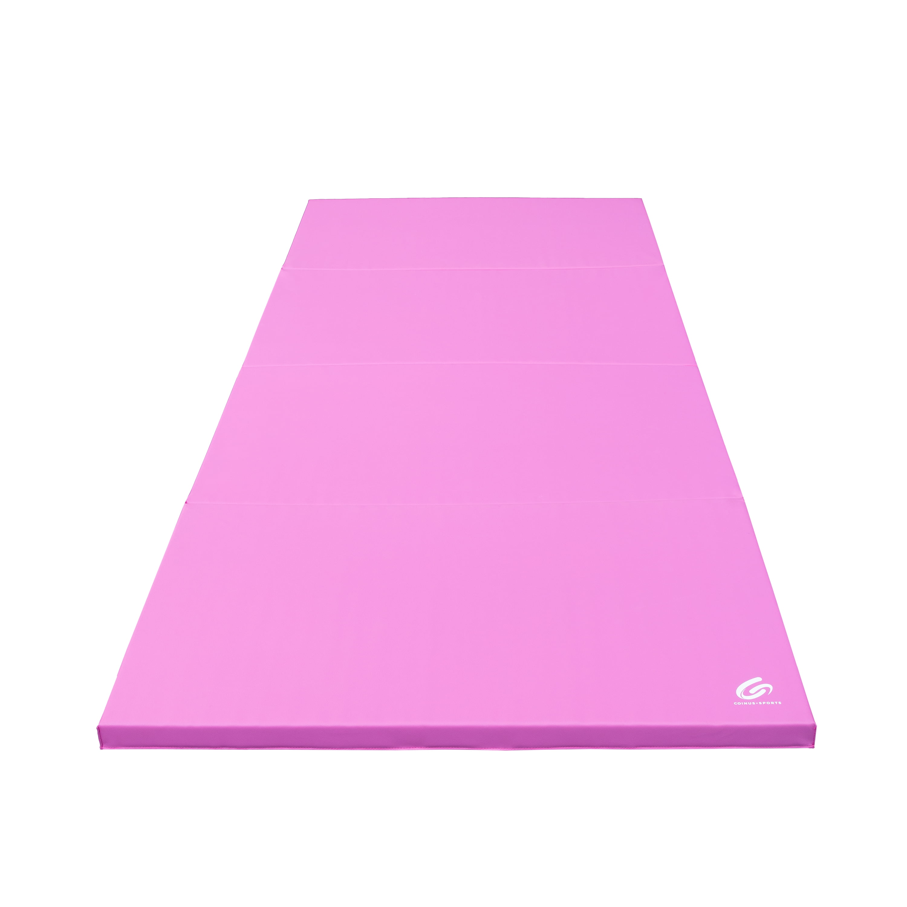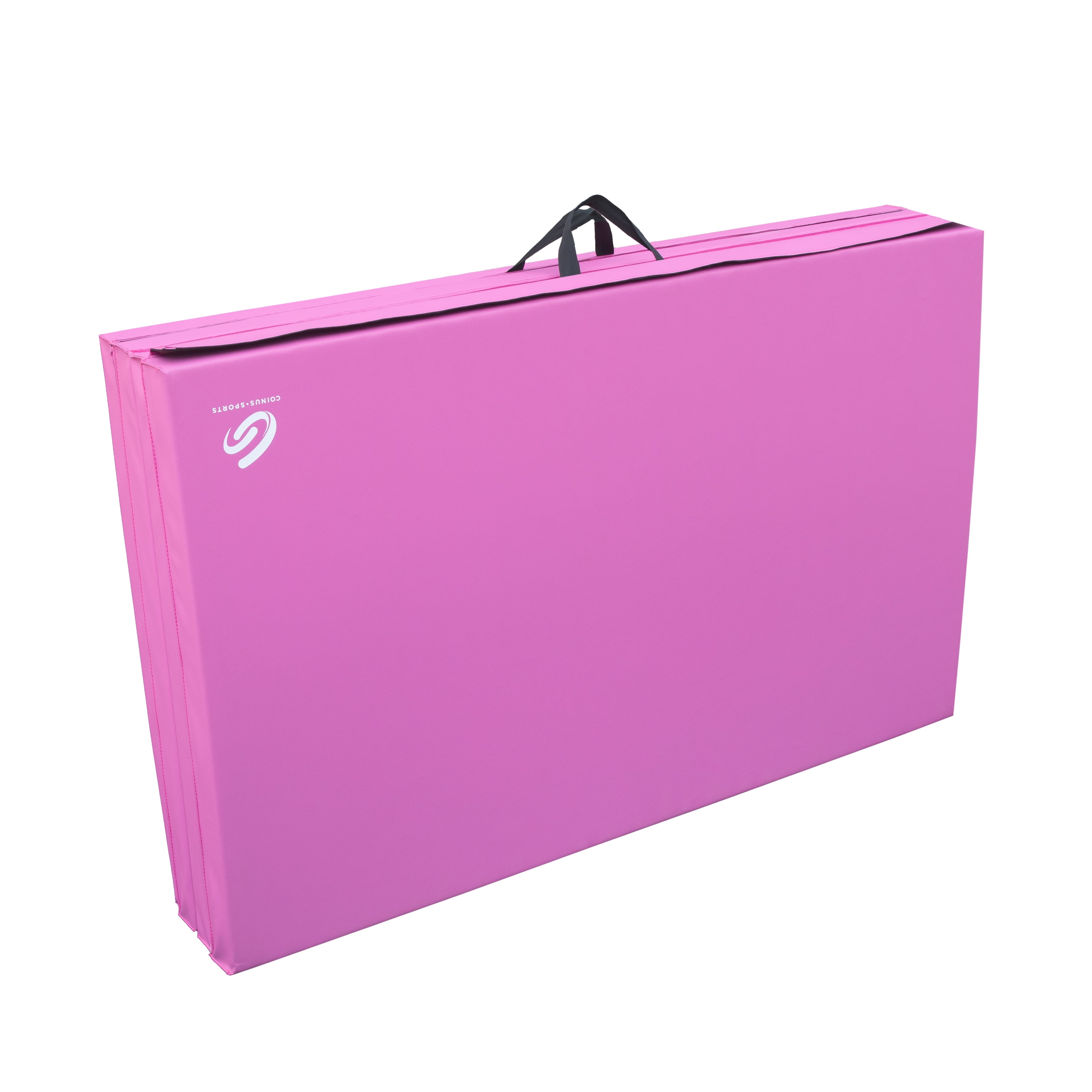 Tumble into your workout routines with confidence with the Coinus Sports 4-Panel Gymnastics Mat in Pink. Whether you’re stretching, working out, tumbling, or practicing martial arts or yoga positions, this versatile exercise mat will be the perfect addition to your home gym, studio, garage, or wherever you desire to work up a sweat. The portable 4-fold design and attached handles allow for easy transportation so you can exercise anywhere on the go, and the mat’s folded profile offers neat, compact storage after training. Made with a thick 2″ PVC and polyethylene foam, you can confidently jump right into your flips and turns knowing that this ultra-cushioned, durable tumbling mat will be there to support your lands and soften your falls. This folding gym mat measures 4′ x 10′ x 2″ when expanded to offer plenty of space for all your fitness needs. Assembled product weight: 12.48 lbs.
