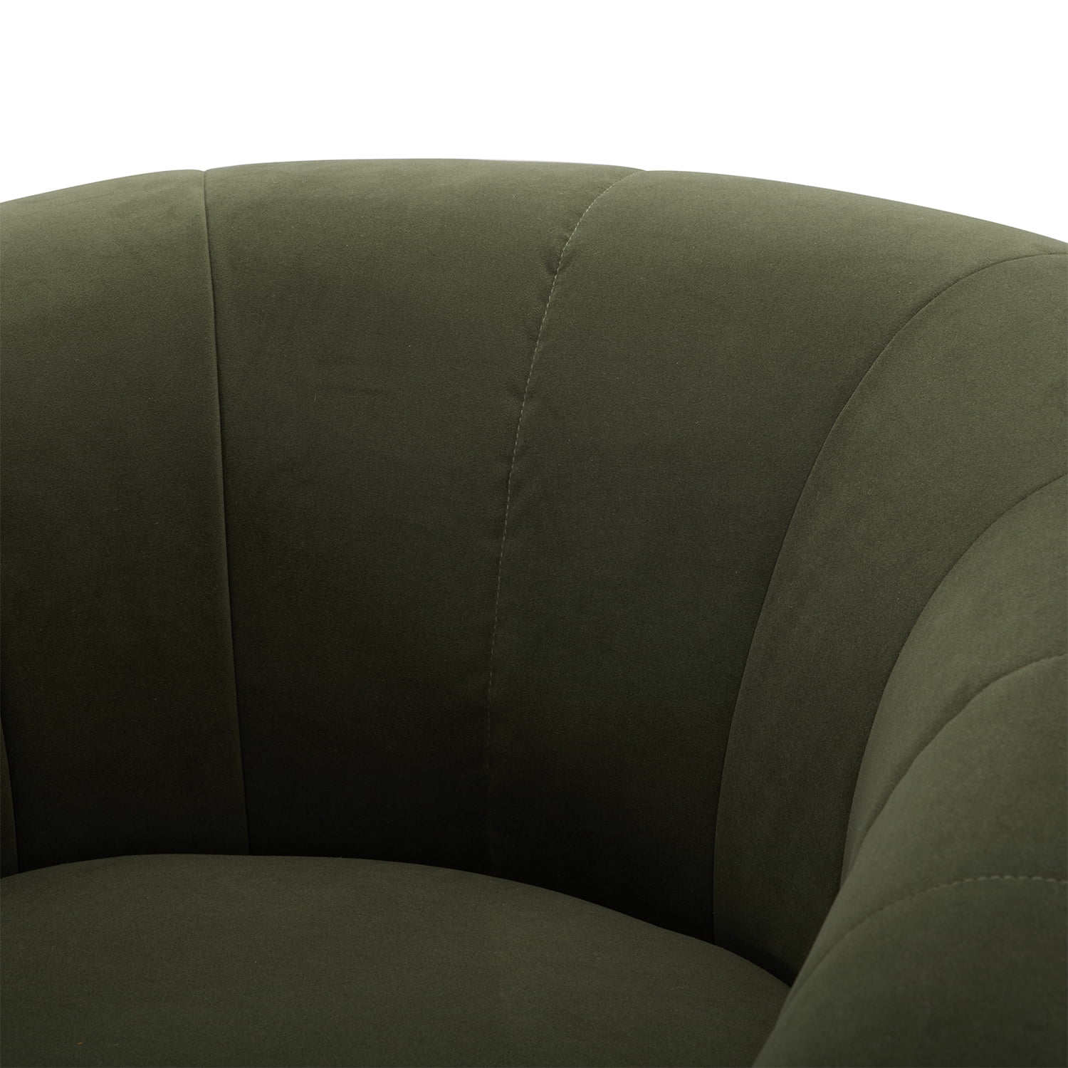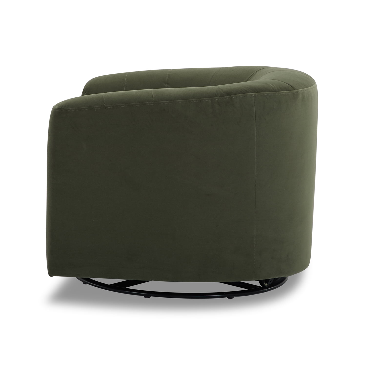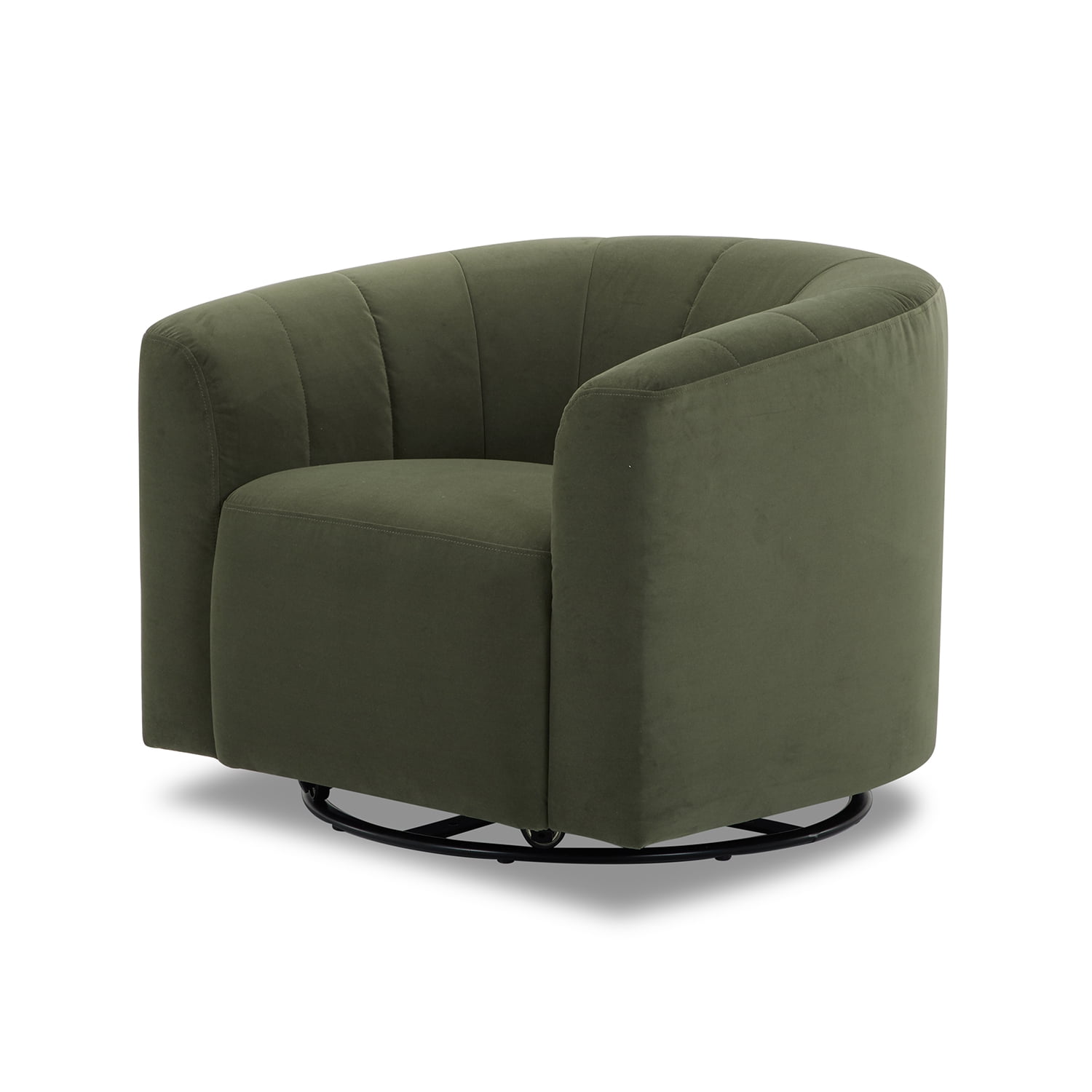The Cole & Rye Swivel Chair, Olive, is perfect for any contemporary living space. Its curved arm and welt trim emphasize its shape and add to its sophisticated appearance. The olive velvet upholstery and its plush feel and soft texture enhance the overall aesthetic of the chair, making it an ideal choice for relaxing and unwinding after a long day. The channel tufted back adds comfort and style to the design, making it functional yet elegant. With the 360-Degree Swivel Base, you have added versatility and extra lounging comfort. The chair features sturdy solid, engineered wood construction that ensures longevity so you can enjoy your contemporary accent chair for years to come. The Dacron and high-density foam make for a comfortable seat, and the webbed seat suspension adds to its stability. Best of all, no assembly is necessary for this chair, so you can sit back and relax in no time!