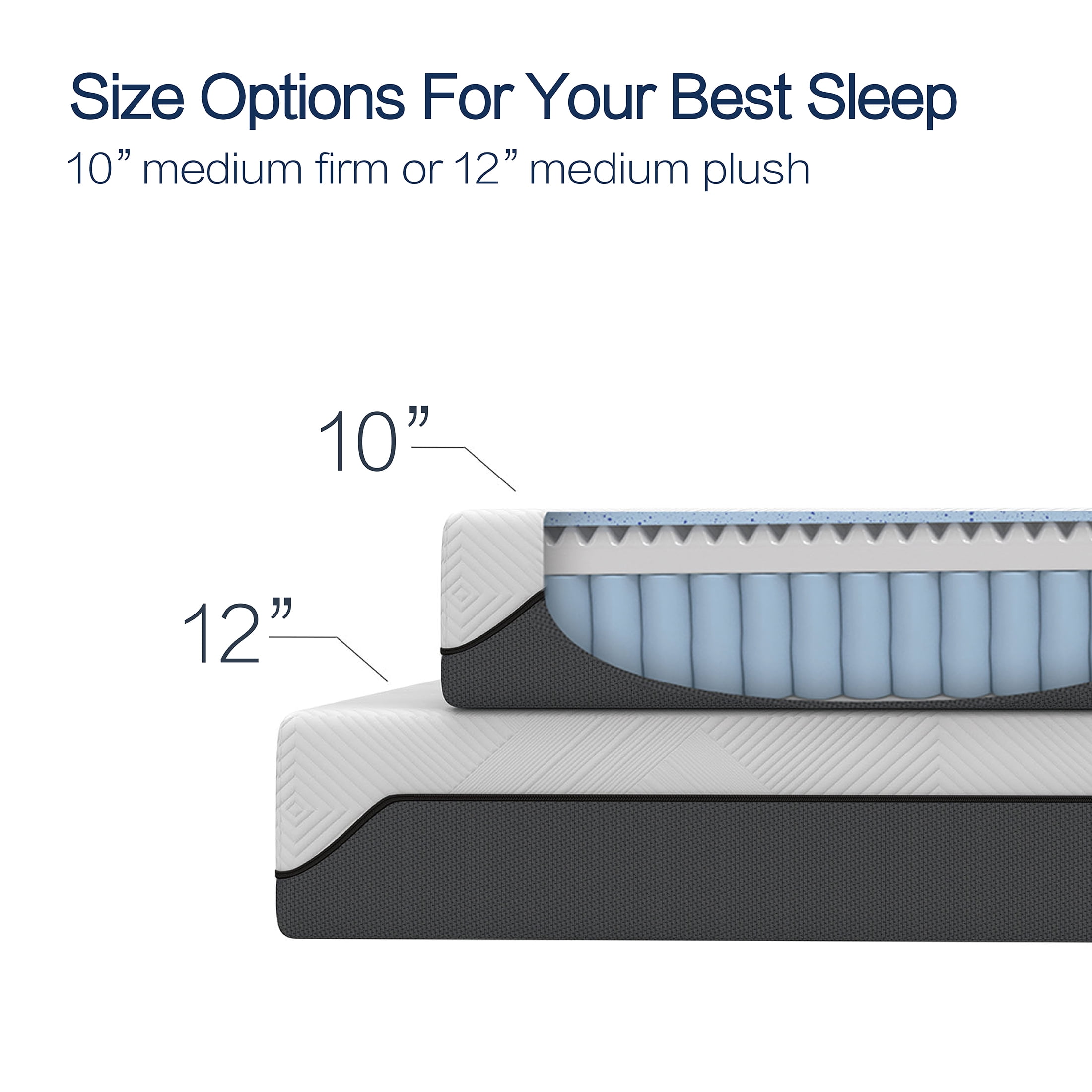 Medium Firm Comfort: Perfect balance of support and comfort for a restful sleep. Cooling Technology: Layer of gel memory foam ensures a cool, comfortable and pressure-relieving sleep environment. Breathable Materials: Features contouring, breathable foam for additional comfort. CertiPUR-US® Certified Foam: Made without harmful chemicals and low on VOCs for indoor air quality. OKEO-TEX® Certified: Ensures the fabric used is free from harmful substances. Fabric-Encased Coil System: Features individually wrapped coils that adapt to body shape, reduce motion transfer, and provide targeted support for enhanced comfort and edge stability. Motion Transfer Reduction: Engineered to provide uninterrupted sleep, even with a moving partner. Tencel® Non-Slip Cooling Cover with Tight Top Design: Combines a sleek sleeping surface with breathable, eco-friendly skin-friendly soft and silky Tencel® fabric that keeps the mattress fresh and securely in place on your bed base. Tencel® is renowned for its moisture-wicking properties, enhancing sleep comfort by keeping you cooler and drier throughout the night. Adjustable Base Compatible: Fits perfectly on various types of bed frames, including adjustable bases. Convenient Packaging: Bed in a box. Delivered in a box for easy setup; simply unbox, unroll, and enjoy. Allow 24-48 hours for the mattress to fully expand. Age Group: Adult, Universal Twin Size : 75″L x 38″W x 10″H Full Size: 75″L x 54″W x 10″H Queen Size: 80″L x 60″W x 10″H King Size: 80″L x 76″W x 10″H