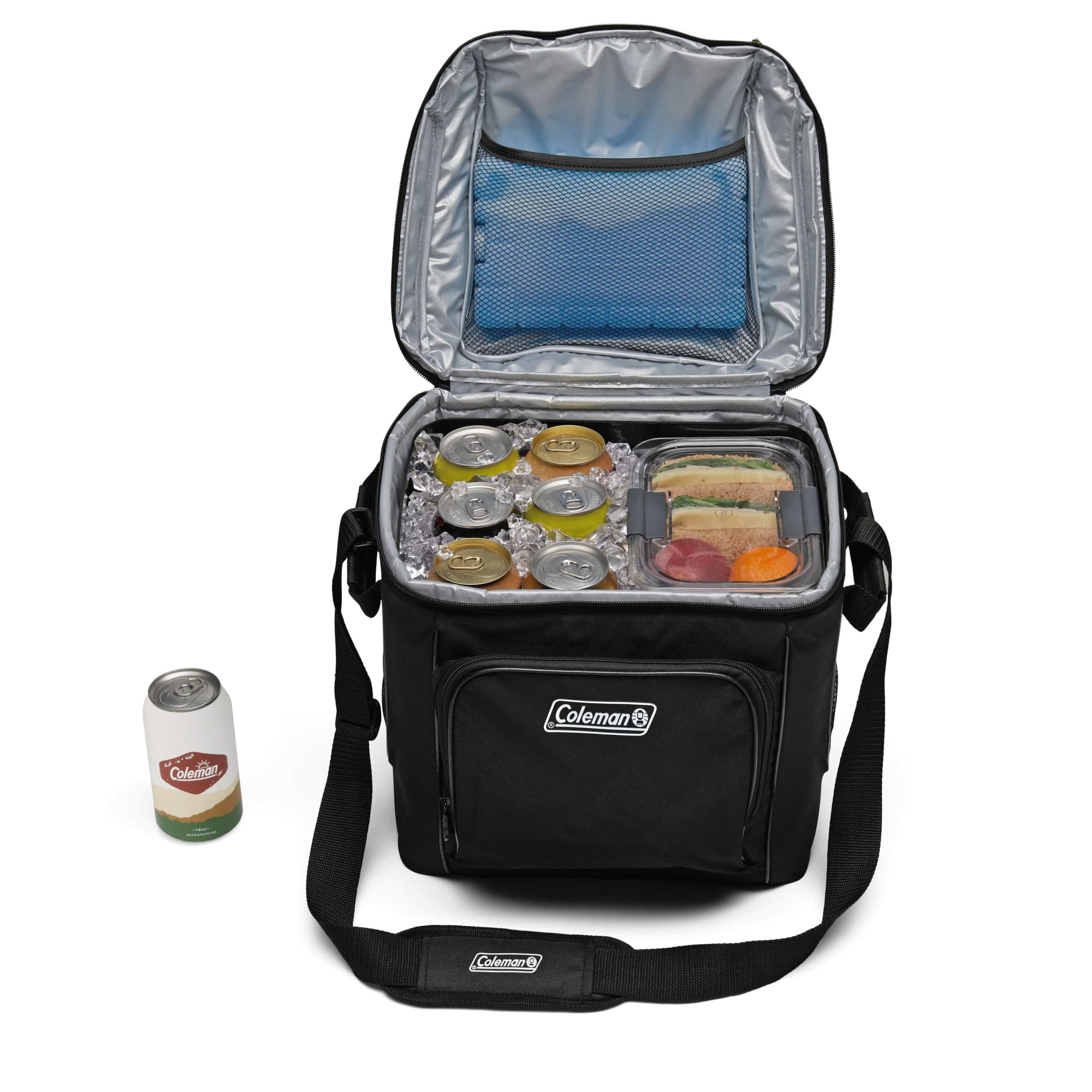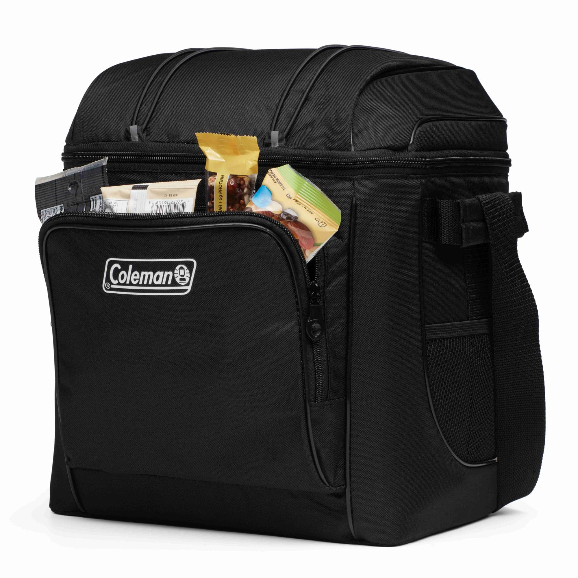 Meet the Coleman Chiller 30 can insulate soft cooler bag, Black. Whether you’re bringing drinks to the game or keeping the fam fueled on a hike, this cooler’s easy and comfortable to carry thanks to its adjustable padded sling strap and side handles. This cooler’s exterior is made from recycled polyester fibers so you’ll help reduce your impact on the environment. Its welded seams prevent leaks for no messes while you adventure, and, if you’re craving a midday snack, its zip front and inner mesh pockets are perfect for storing protein bars, trail mix, and other extras. Once the day is over, this cooler’s antimicrobial and stain-resistant liner is removable so that cleanup is quick and easy.