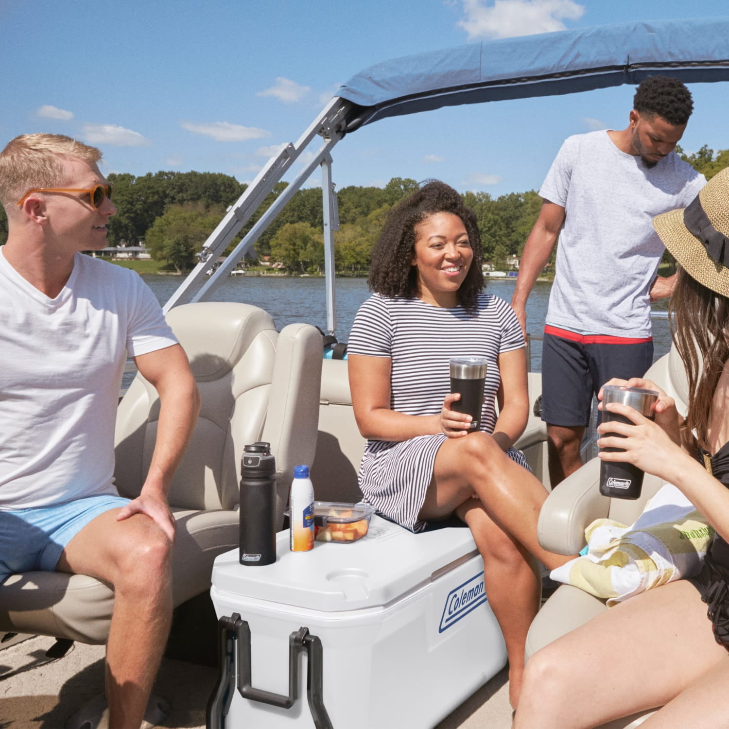 Inspired by our Wichita roots and the people who work there, the Coleman Classic Series of hard coolers brings uncompromising quality and a legacy of craftsmanship and adventure wherever you take them. The Classic Series 100-Quart Marine Wheeled Cooler is the perfect cooler to bring on board for weekend fishing or boating trips with the fully insulated lid and body that Keeps the Ice up to 5 days in temperatures as high as 90°F. Made to withstand the challenging conditions of being on the water, the UVGuard coating helps protect the cooler from damaging sun rays and the stainless steel hardware prevents rusting and corrosion—extending the life of the cooler. An antimicrobial liner resists odor, mold, and mildew from forming in between boating trips. Haul your drinks easily from the harbor to your boat with the heavy-duty 6-inch wheels and durable tow & swing-up handles. The large capacity holds up to 160 so you’ll have plenty of drinks to go around for you and the entire crew. Take a load off with the Have-A-Seat lid that supports up to 250 lbs. as you wait for the day’s catch. Get bragging rights for reeling in the biggest catch with the built-in ruler on the lid that also tells you if your fish is too small and needs to be thrown back.