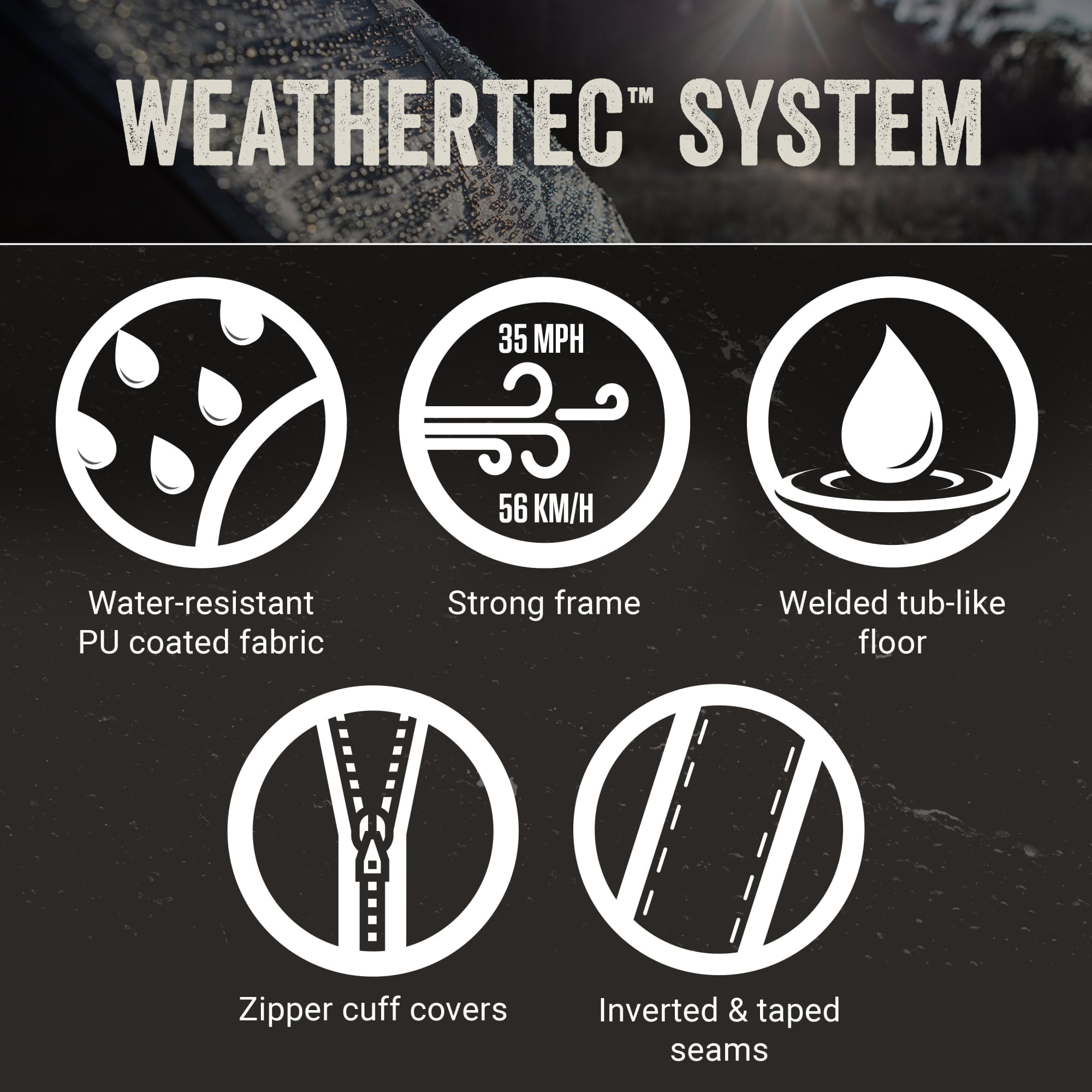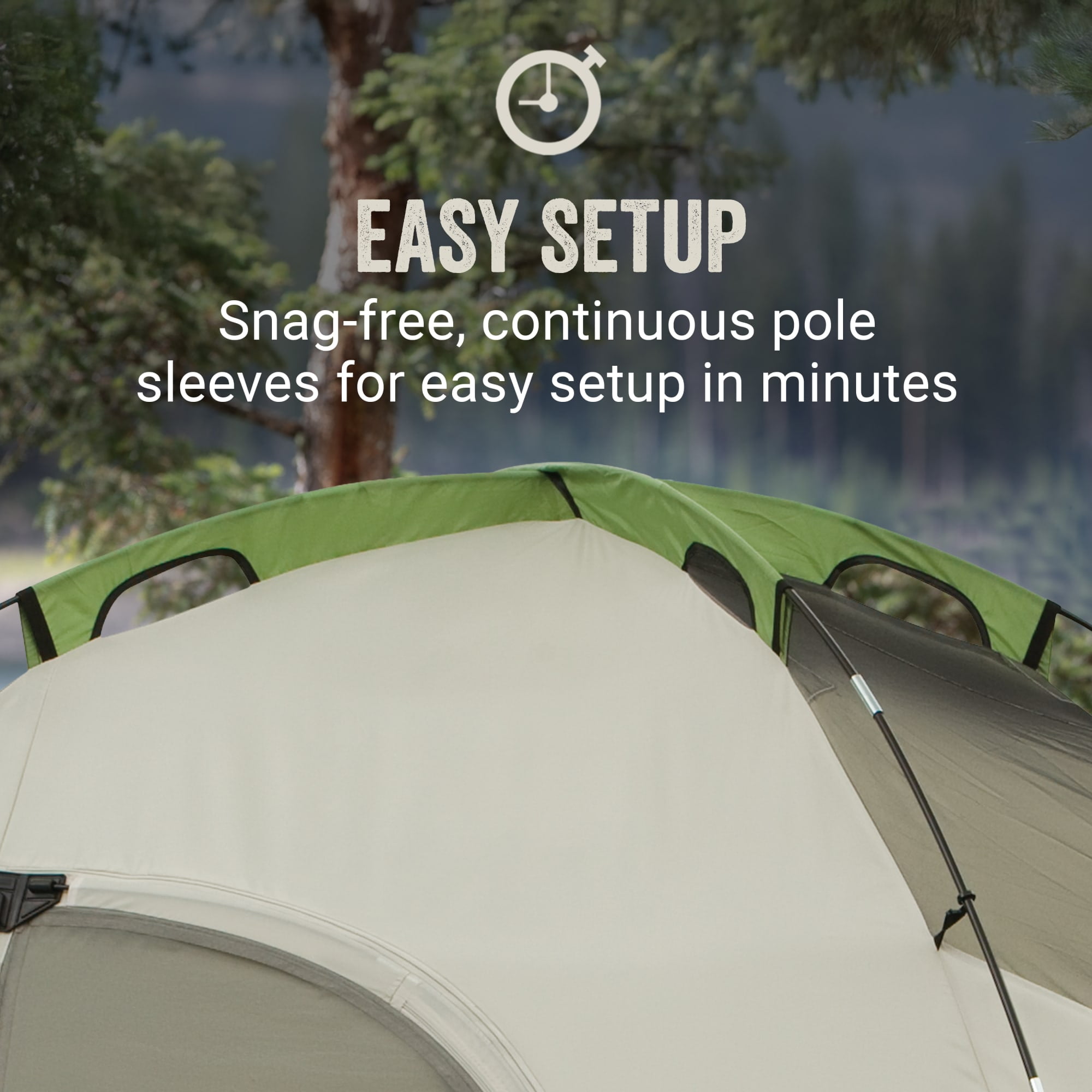 With enough room for three queen size air beds, the Coleman Montana 8-Person Dome Tent lets your whole family enjoy camping trips with extra sleeping space. This camping tent is guaranteed to keep you dry thanks to the Weather Tec system that features patented welded floors with inverted seams. The backpacking tent comes with a rainfly and a covered zipper that help keep water out. An extended door awning creates a dry space to store gear and enter the tent, while the hinged door makes it easy to come and go. The angled windows can be kept open in the rain and help improve air circulation. This 8-person tent is designed with a strong frame tested to withstand 35+ mph winds and durable Bodyguard fabric that will last season after season. It sets up easily in about 15 minutes thanks to snag-free continuous pole sleeves, a patented pin-and-ring system, and snag-free Insta-Clip suspension. And once your trip is finished, you can pack up the tent in the included carry bag for easy storage and transportation.