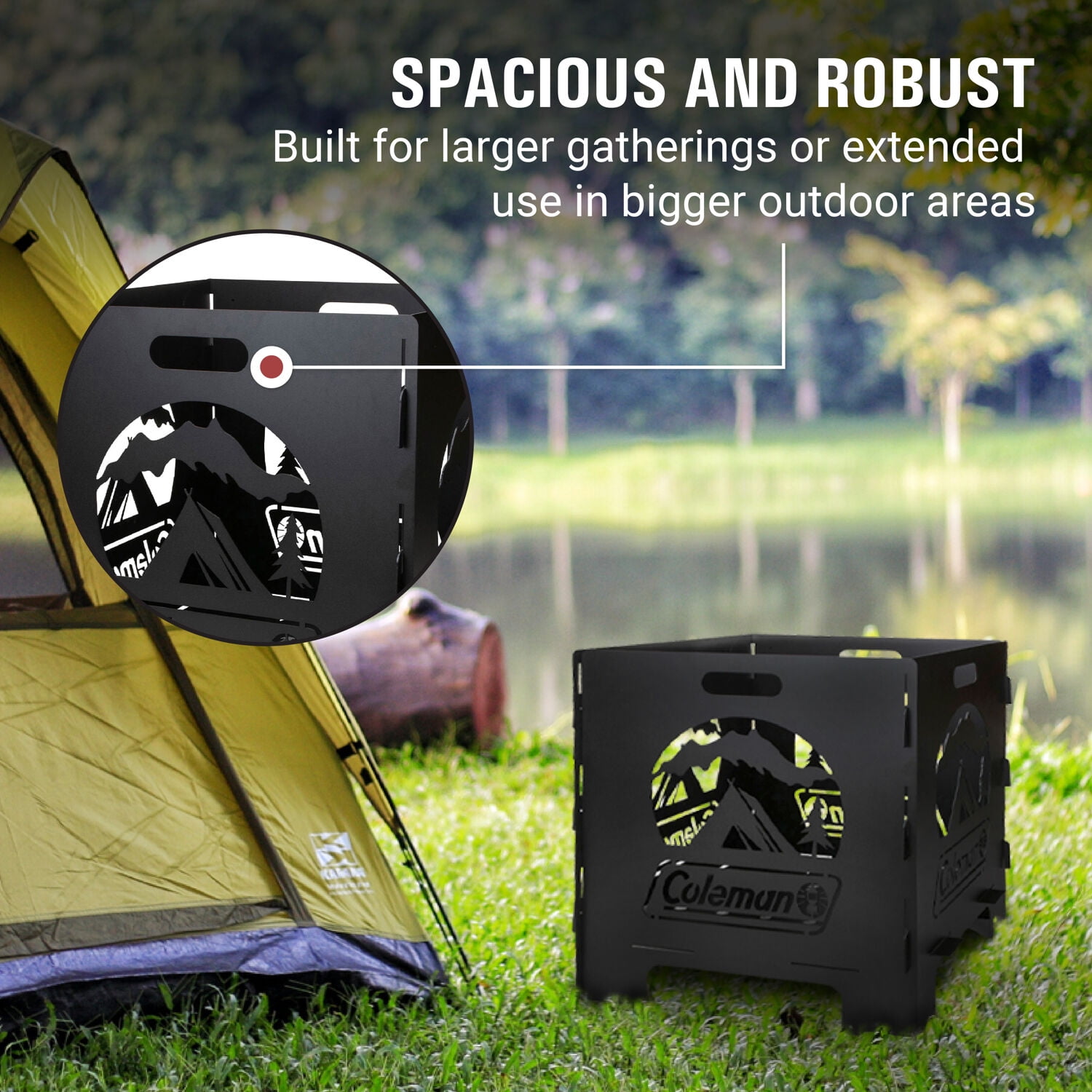 Innovative Collapsible Design: Packs down to under 1 inch so storing and transporting this portable fire pit is a breeze. Sturdy Tongue-and-Groove System: Assembles effortlessly to create a robust square fire pit. Premium Durability: Coleman portable fire pits are made in the USA with high-quality materials to stand up to frequent use. Two Convenient Sizes: Choose the fire pit model that fits your needs and space. Spacious and Robust: Large outdoor fire pit built for larger gatherings or extended use in bigger outdoor areas. Two Convenient Sizes: Choose the model that fits your needs and space.