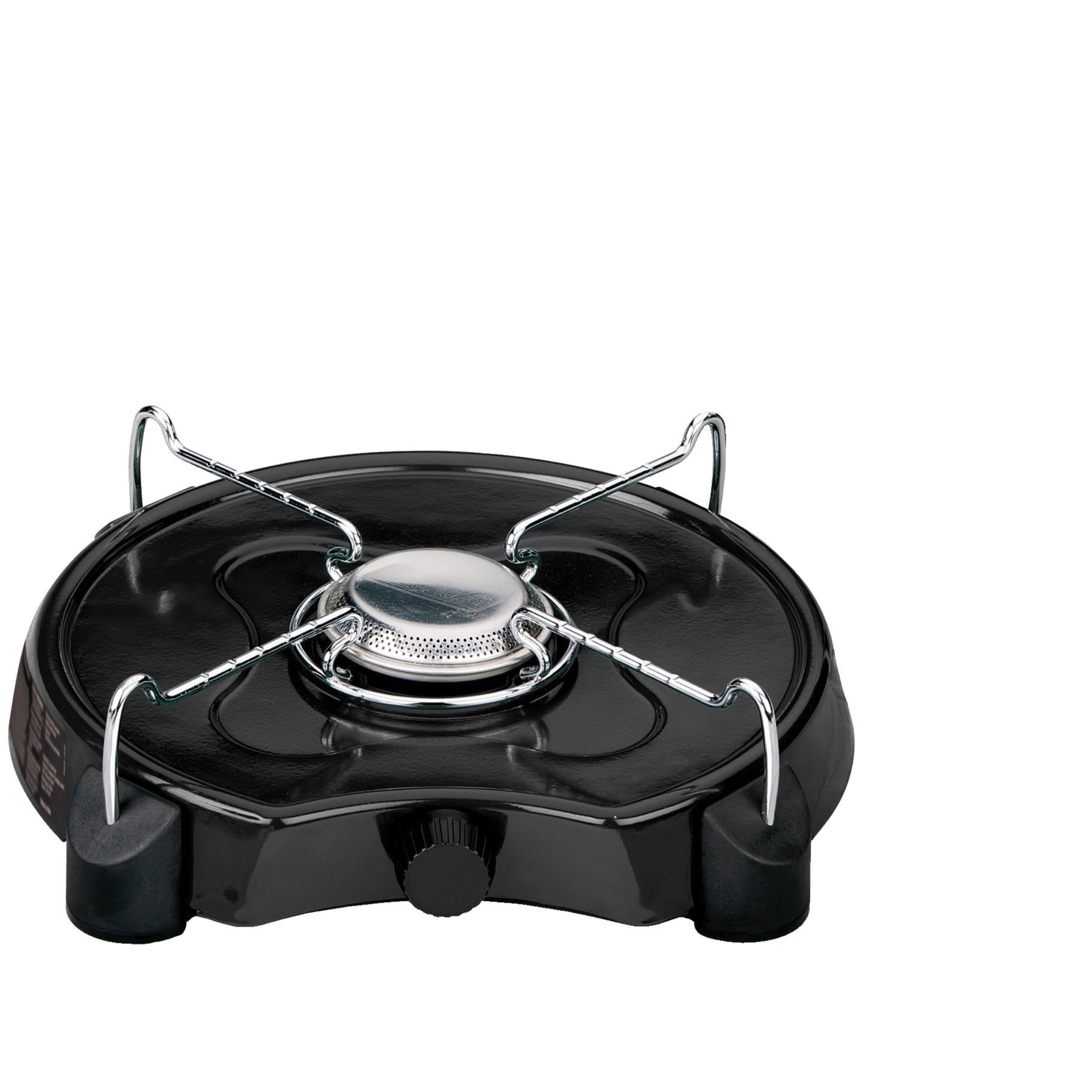 Up to 7,500 total BTUs of cooking power 1 adjustable burner for precise temperature control Fits up to a 12 in. pan PerfectFlow™ pressure regulator for consistent performance, even in extreme conditions PerfectHeat™ technology ensures more efficient cooking with less fuel Lasts up to 3 hours on high 16.4 oz. propane cylinder (sold separately) Easy-to-clean removable chrome-plated grate 3-year limited warranty