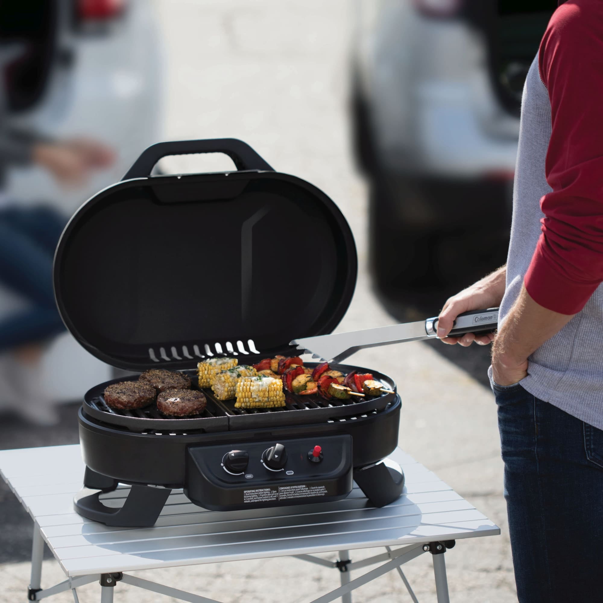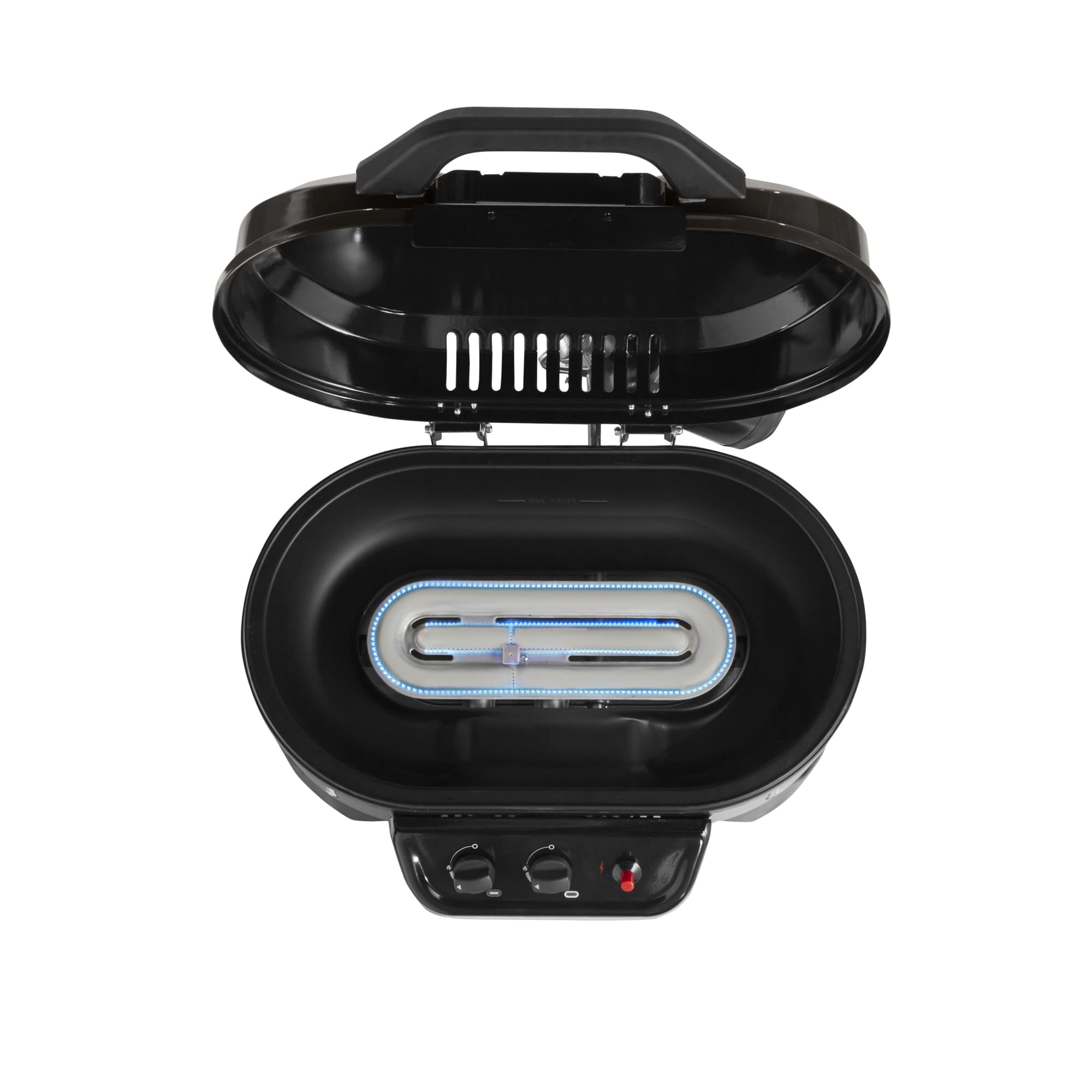 Up to 11,000 BTUs of grilling power and 225 sq. in. cooking area 2 adjustable burners for precise temperature control Water pan catches cooking grease and is removable for easy cleaning Instastart ignition for push-button, matchless lighting Uses 1-pound propane cylinder (sold separately) Arrives fully assembled
