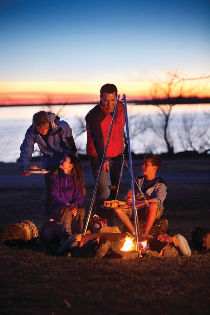 17-inch diameter grill grate that can be easily adjusted to a desired height Tripod stands over fire so you can control the heat and cook speed Tripod design provides stability & support for the grill and serves as lantern hanger Durable galvanized steel legs to stick in the ground Shock-corded legs collapse for easy transport and storage This product contains Steel (Iron, Chromium, Nickel, Manganese) No Fuel Required Brand: Coleman