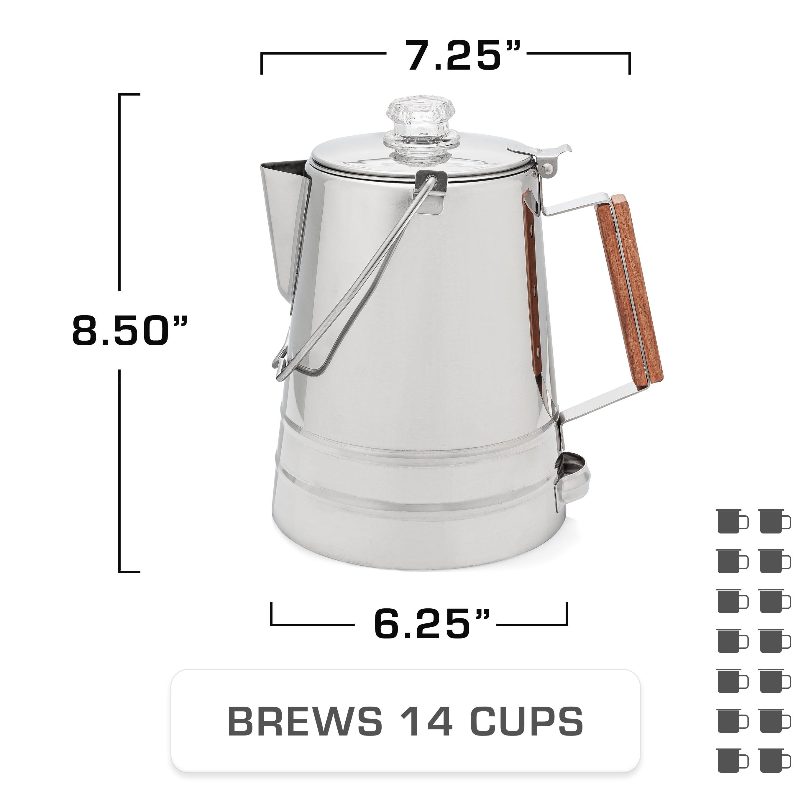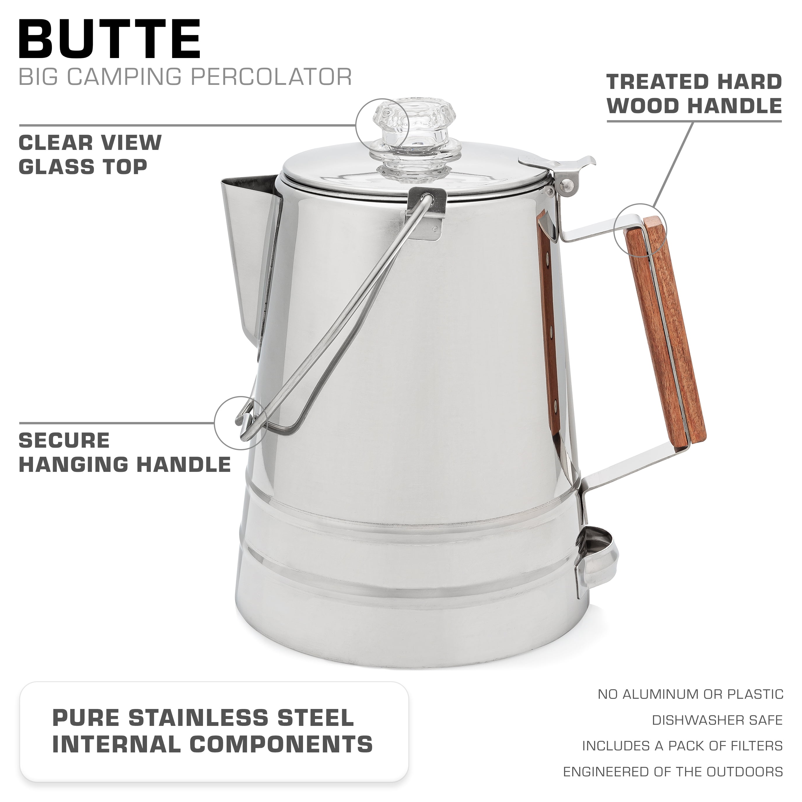 COLETTI Butte Coffee Percolator Camping — Percolator Coffee Pot, NO Aluminum or Plastic [14 Cup]