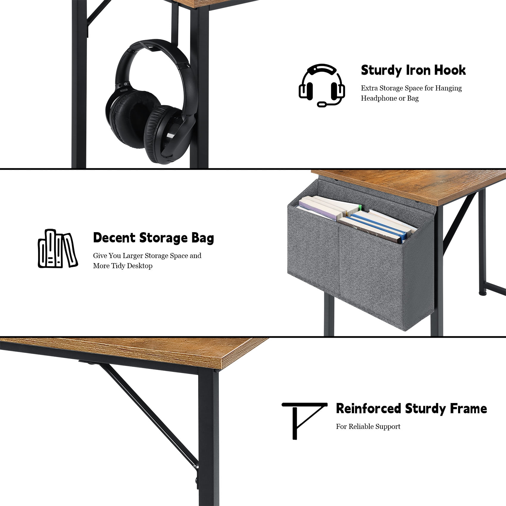 Coliware Home Office Study Gaming Computer Desk Coliware Computer desk pay attention on both tasteful appearance and multipurpose usage, The premium material of the desktop and bracket guarantees elegance, meanwhile long-lasting and easy to clean, The complete accessories expand the storage space of the desk and provide convenience to your use, Also clear instruction and hardware equipped make assembly a breeze and hassle-free, just save your time and money About the Item: Built-to-last Desk: Premium desktop design ensures your health and long-lasting use Premium & Sturdy Small Desk: Material and design of the bracket ensure the durability and large tabletop offer enough space Multipurpose Storage Design: Accessories equipped for your convenient use Wonderful Style: Suitable size make a multipurpose workstation in a simple desk Wide Application & Fast Installation: Excellent appearance offer elegant furniture decor and complete hardware ensure convenient assembly Suitable for all age group such as Adult, Children, Teenage, etc. Product Information: Base Material: Metal Top Material: Particle Board Color: Basic Rustic Brown Dimension(D x W x H): 19.7 x 31 x 29.5 inch Packing List: Computer Desk x 1 Storage Bag x 1 Hook x 1