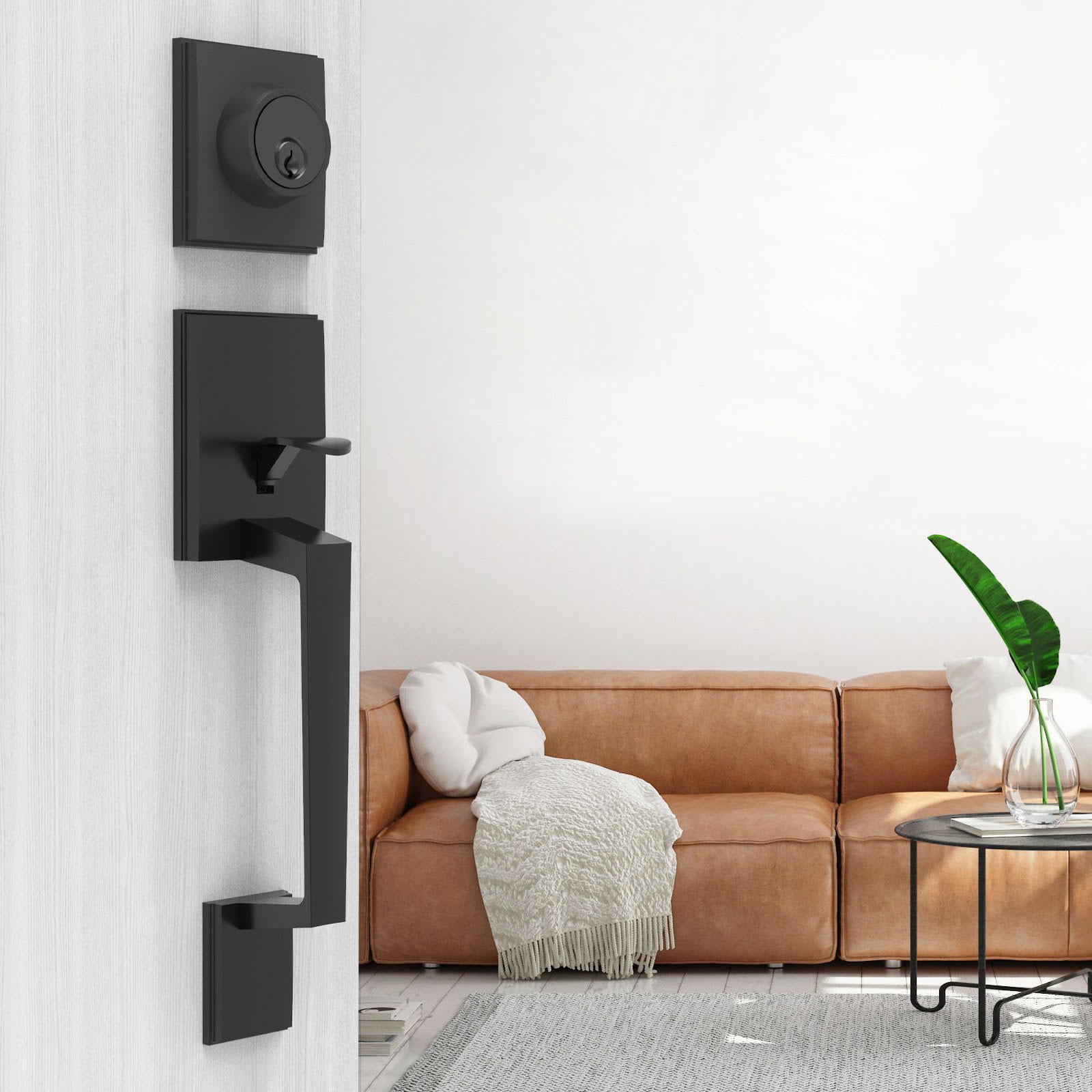 COLOSUS 833(835) Modern Exterior Square Door Handle and Deadbolt Lock Handleset (Iron Black)