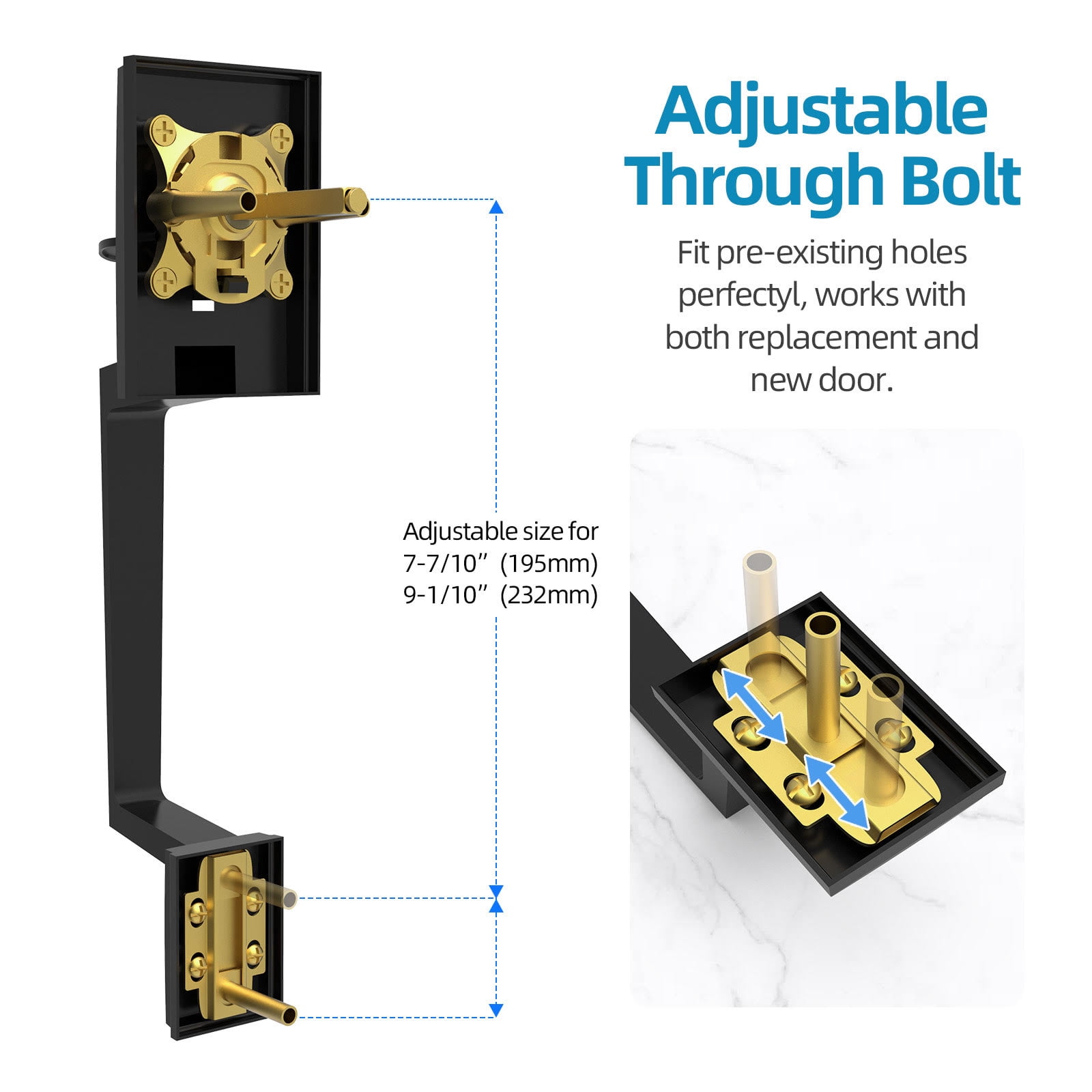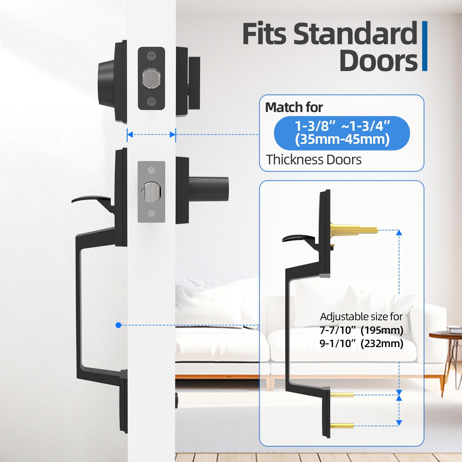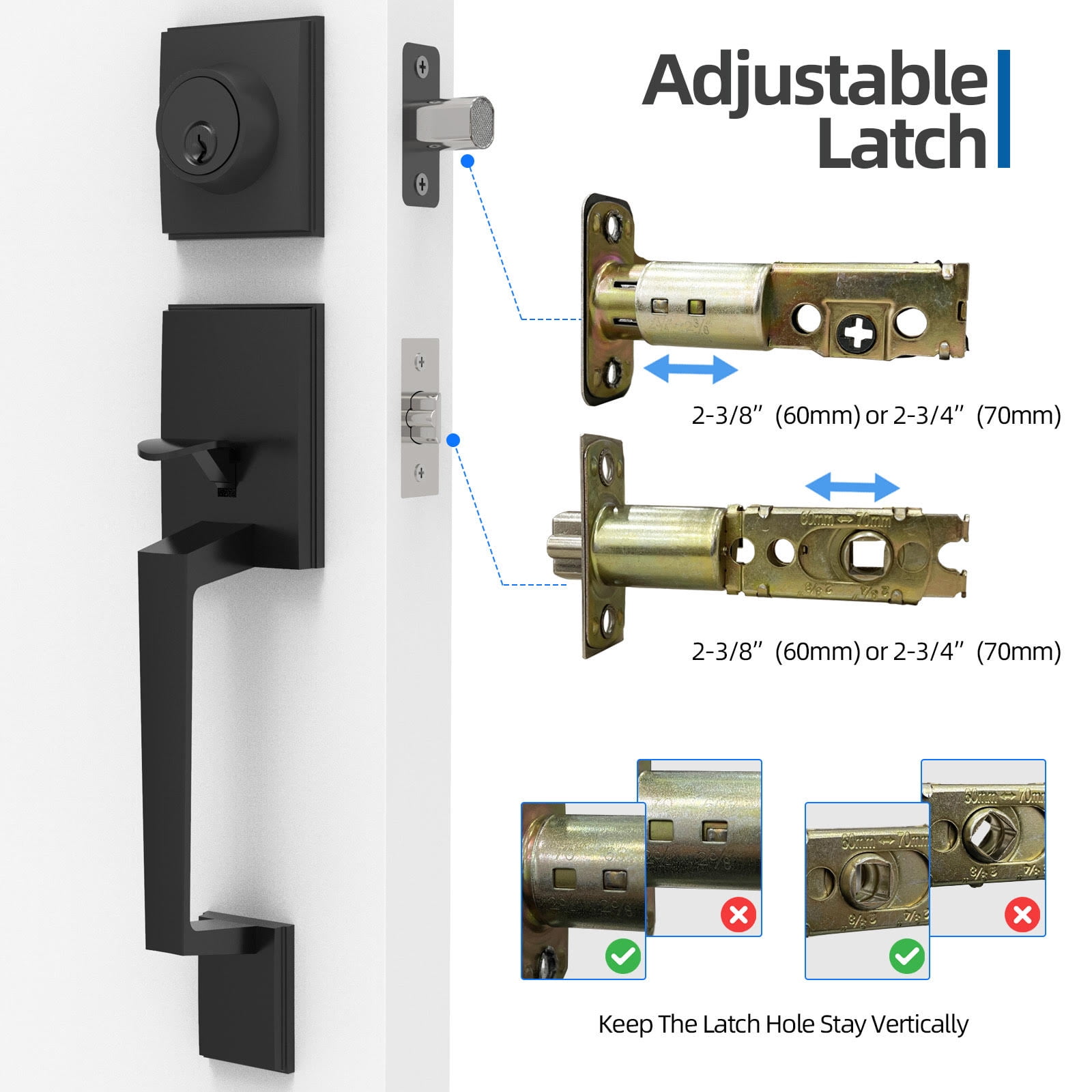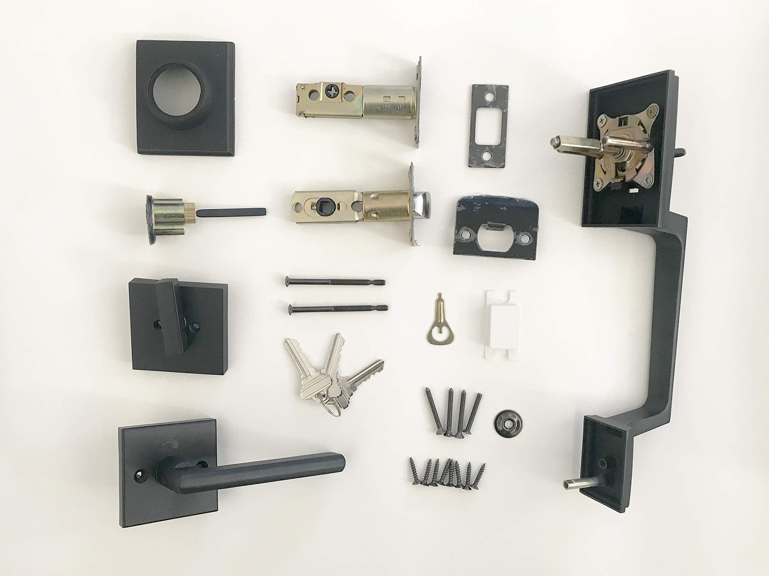 Comes with all components necessary and a clear direction for installation. Suitable for most existing, standard pre-drilled doors holes, including 2-3/8″-2-3/4″ backset latch to fit 1-3/8″-1-3/4″ doors thickness to avoid drilling again. Center-to-center mounting distance of the external handle is 8.8″. Designed to complement modern contemporary style interior and exterior doors for commercial and residential applications, front door handle and deadbolt set. Heavy duty high class security hardware locksets, entry door knob and deadbolt lock set Includes a reversible handle that makes it perfect for fitting left or right handed doors. Exterior Lever Handle Lockset come includes all parts and screws with 3 keys, easy to install; Any further question, Please feel free to contact us.