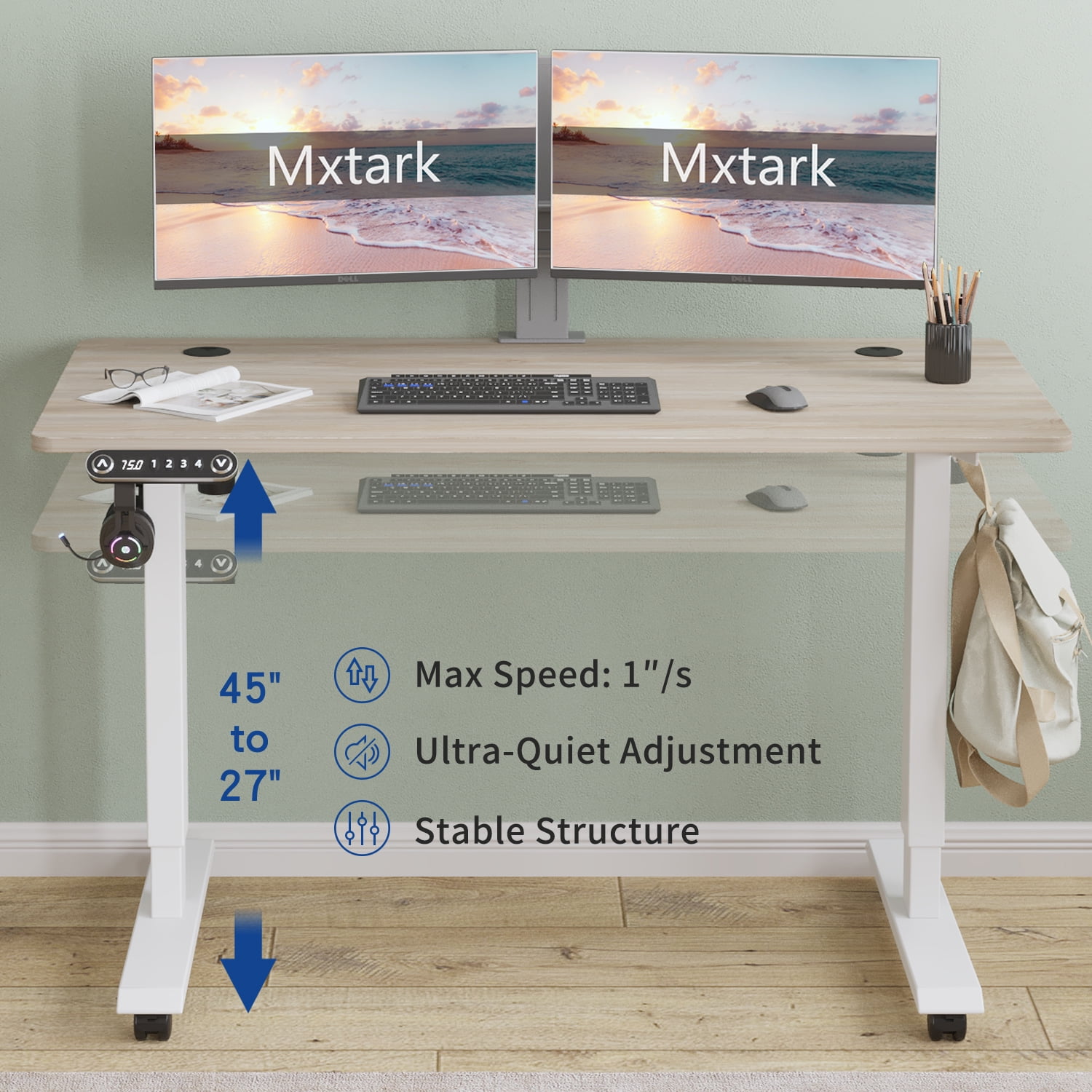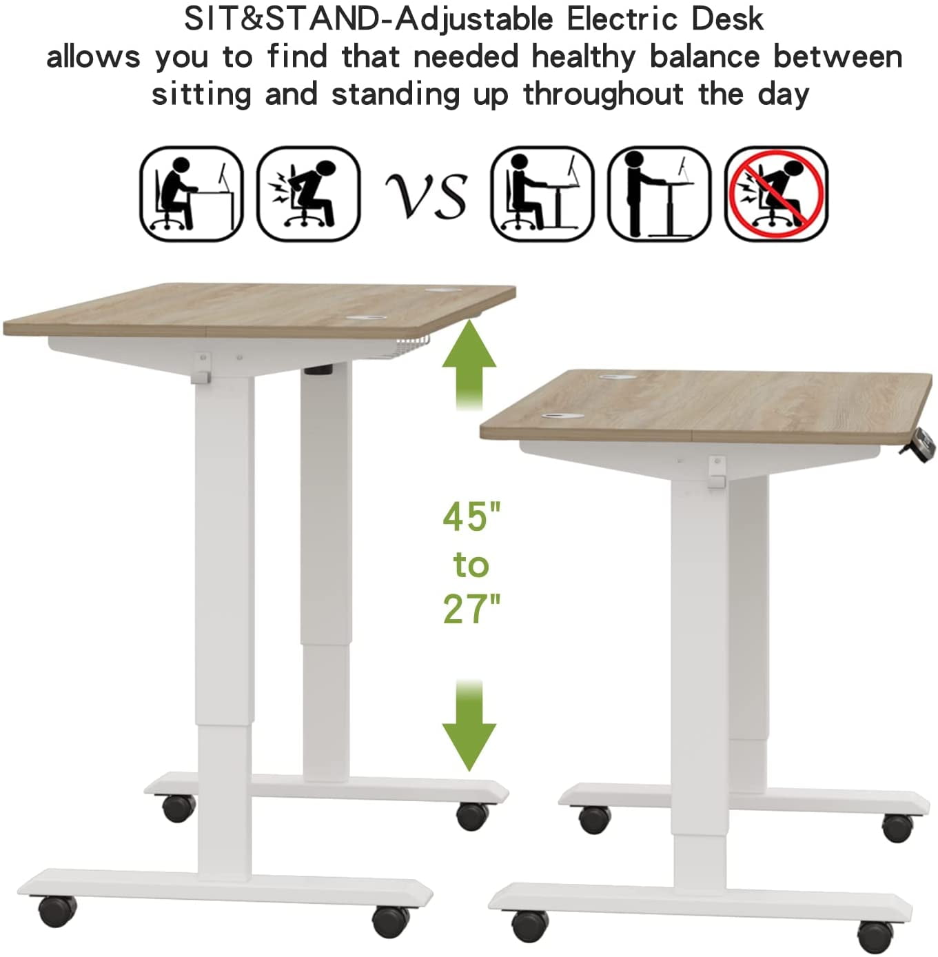 【Electric Height Adjustable】: Height adjustable standing desk can adjust the height between 27”-45” according to your needs and its ergonomic design delivers a peaceful experience to you wherever at home or office. There are four memory buttons on the desk, long-press until to hear a ‘beep” to remember the common height.The height-adjustable desk is supported by a very sturdy double-beam metal frame that can support up to 176 lbs. It is more stable and lasts longer than a single-beam desk. 【Ergonomic Workspace】: Spacious 48” x 24” eco-friendly desktop offers a roomy setup for 2 monitors and a laptop so you can spread out and calmly take on the challenges of the workday. The tabletop is water and wear-resistant and comes with 2 wire collection holes and a under-table cable tray to keep your office area neat and tidy. Please allow a slight 0 to1-inch difference in desktop size due to manual measurement. 【Built For Work From Home】: The perfect standing desk to allow independent and remote workers to stay active, healthy, and productive while working from home. Standing Office Desk is suitable for people who need to sit for a long time to work or study. It can help them reduce the burden on their neck and waist and relieve the fatigue of sitting for a long time. Precisely adjust your desk to your height and insert healthy movement into your day. 【Anti-Collision Technology & Current Protection Function】: The stand-up desk has anti-collision technology and current protection functions. The built-in sensor is given higher sensitivity, which can accurately detect obstacles and automatically descend 2cm when obstructed. if any error codes appear, you can reset it. Unplug the power supply for the 20s, then plug the power supply back in and the desk will reset automatically. after it shows 69, the reset is done. 【Easy to Operate and Install】: The desk is easy to assemble, with step-by-step instructions and hardware included. CometMin has an excellent after-sales service team, please feel free to contact us if you have any questions, we will do our best to help you solve the problems you encounter. We hope to bring you the best shopping experience.