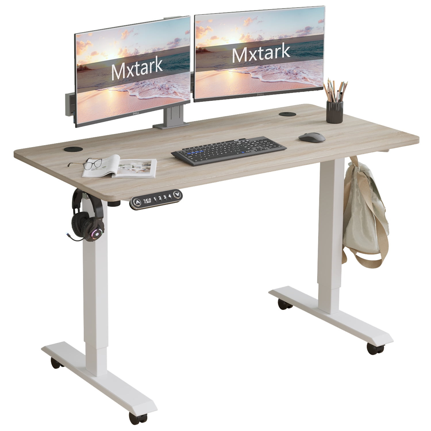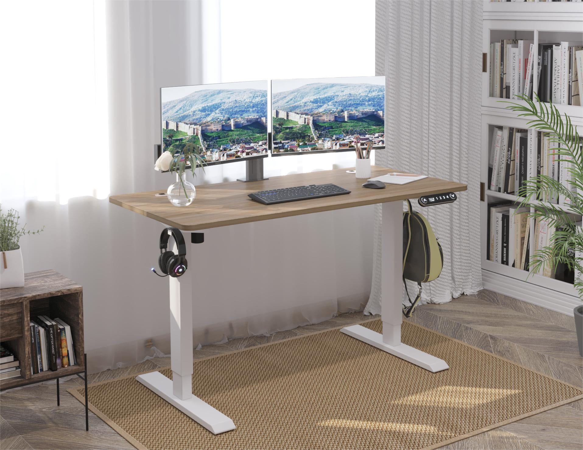 CometMin Electric Height Adjustable Standing Desk Stand Up Desk Workstation Splice Board Home Office Computer Standing Table Height Adjustable Ergonomic Desk Oak 48″