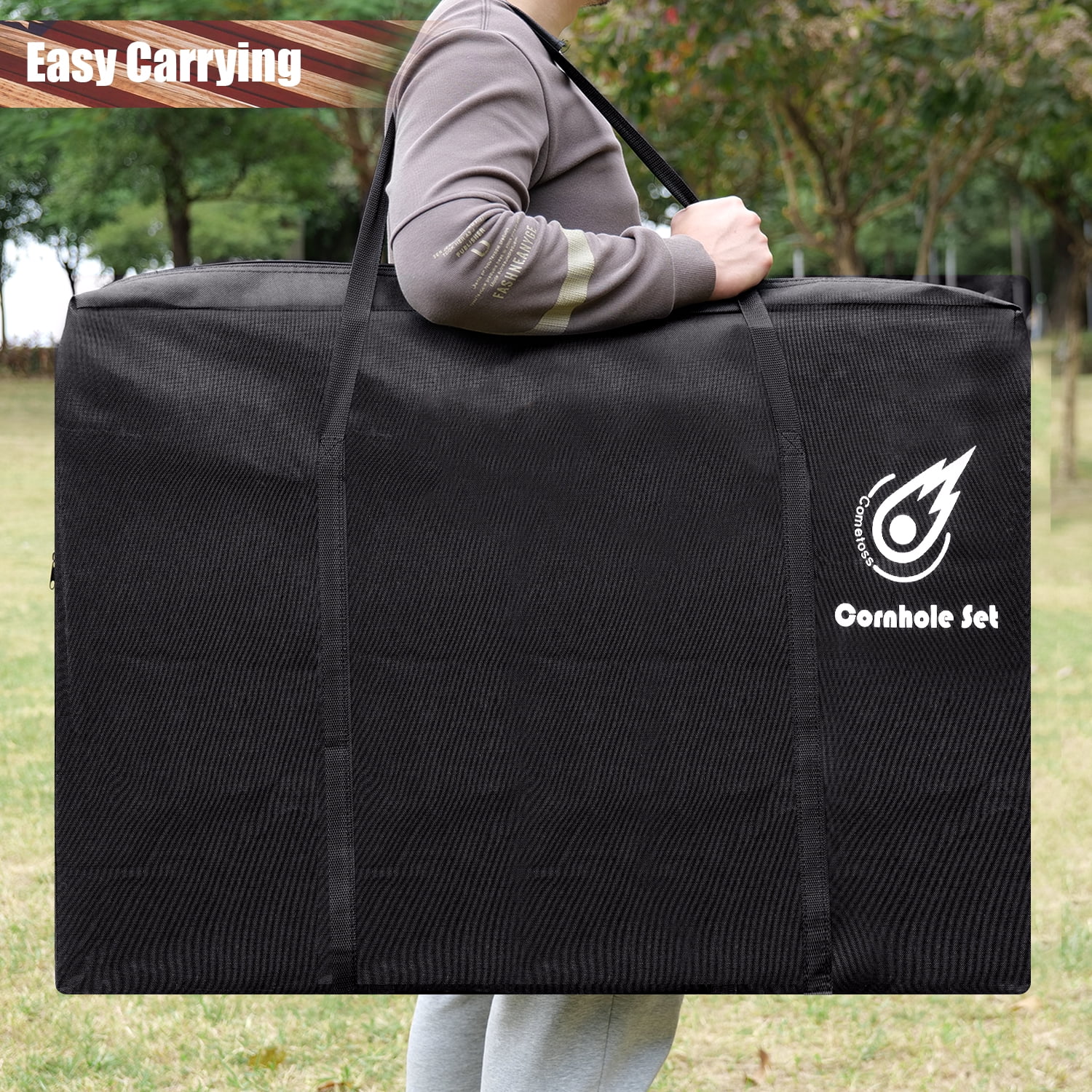 Cometoss cornhole outdoor game set included two 35″ L x 24″ W x 1.5″H MDF target boards and eight 5″ x 5″ 12ounce toss bags (4 star and 4 stripe)flag pattern design MDF target board surface with flag pattern design returns the game to classic.This board set features a carrying handle for easy transport .Great for barbecues,cookouts, campsites,parties, weddings, Backyard Fun