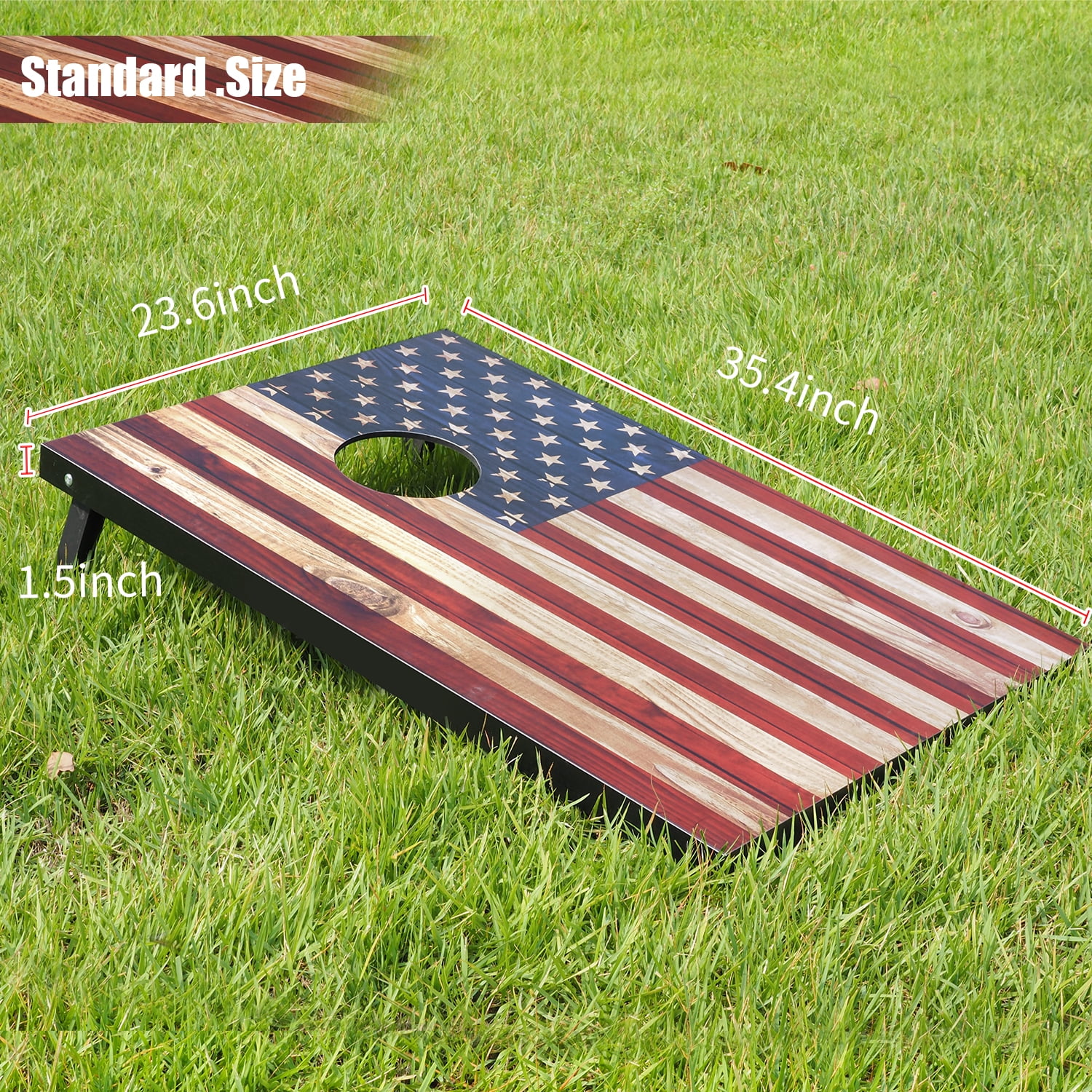 Cometoss Classic Cornhole Set 3’x2′ Outdoor Games- Includes 2 MDF Wood Boards 35.4×23.6 Inch,8 12 Ounce Corn Hole Bean Bag Cornhole Set. (America Flag)