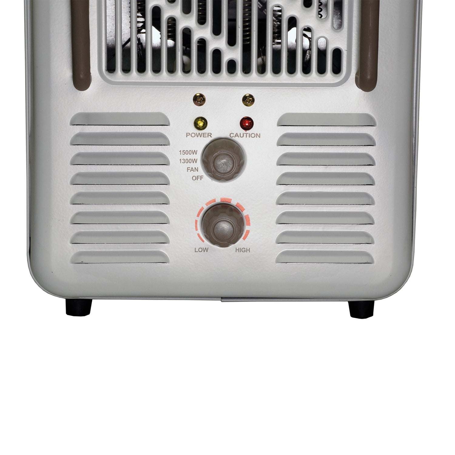 Heat settings designed to heat up to 400 sq. ft. area 2 heat settings and 1 fan-only setting for all-season use; ideal for indoor household or office use Dual controls—1 for thermostat and 1 with fan only, 1,300-watt heat, or 1,500-watt heat settings; front-mounted control panel; requires at least a 15-amp 120-volt 3-prong AC outlet Sturdy, all-metal cabinet construction with polymer handles Power indicator and caution lights; safety overheat and tip-over shutoff features