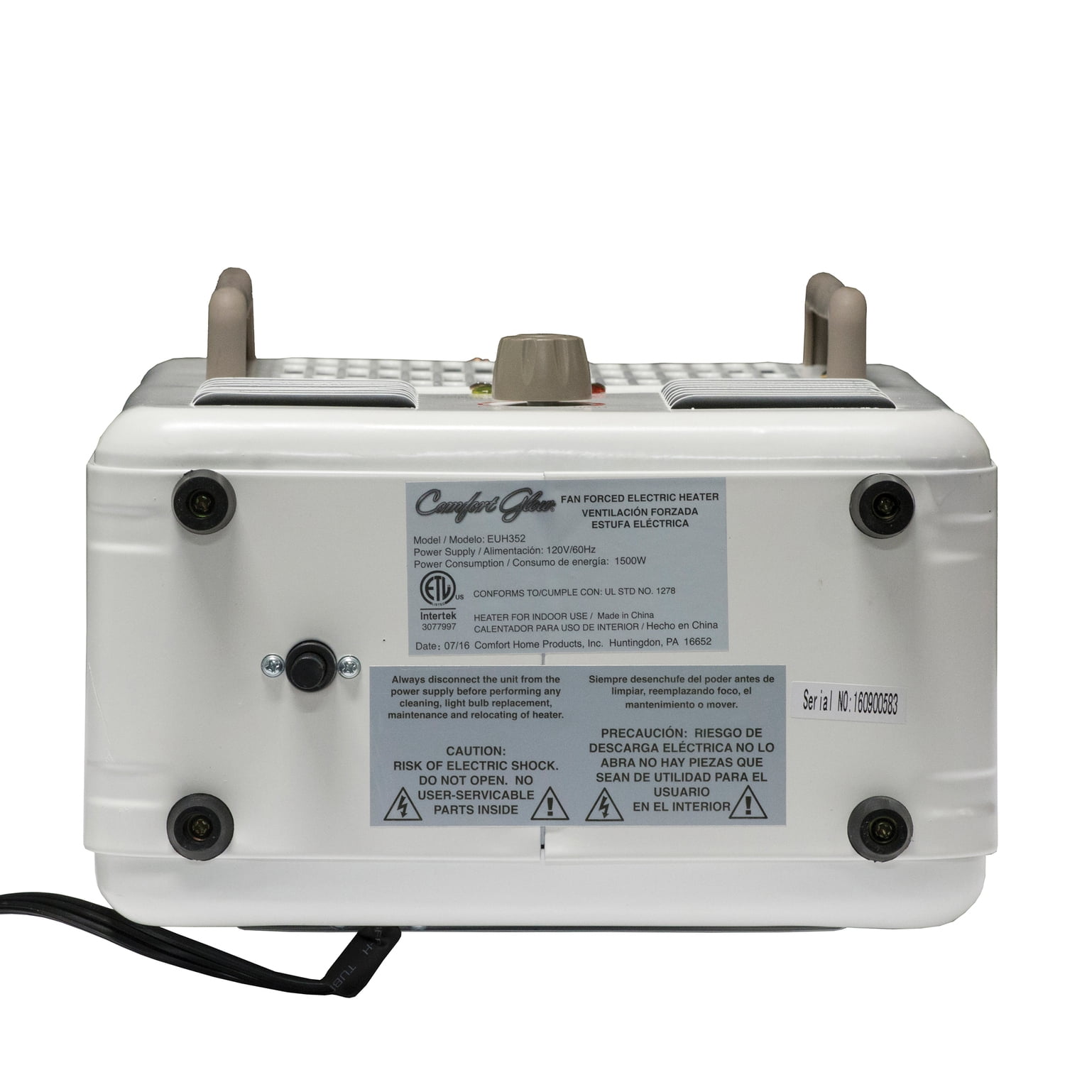 Comfort Glow EUH352 1,500-Watt-Max Portable Electric Forced-Air Milkhouse-Style Utility Heater, White and Gray, EUH352