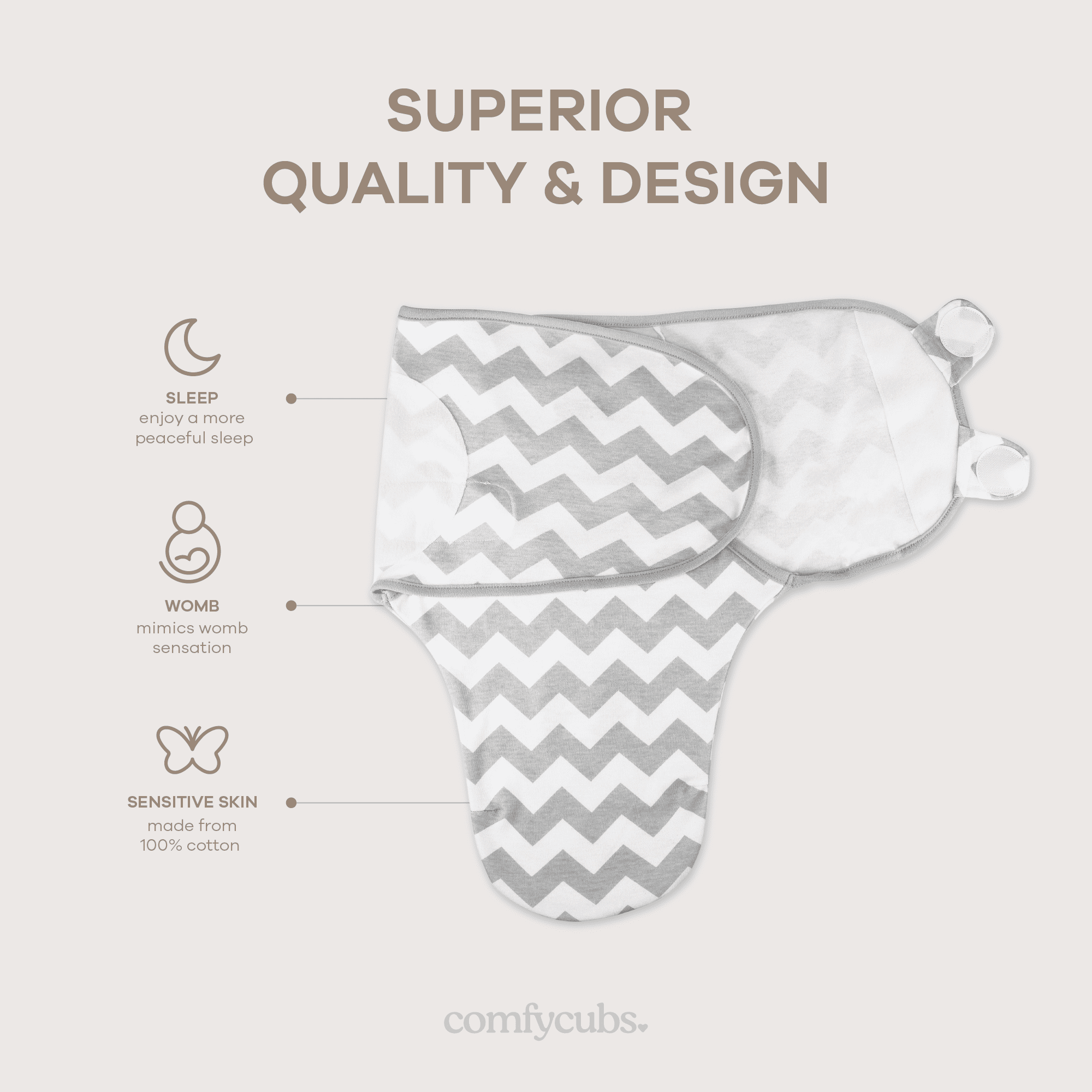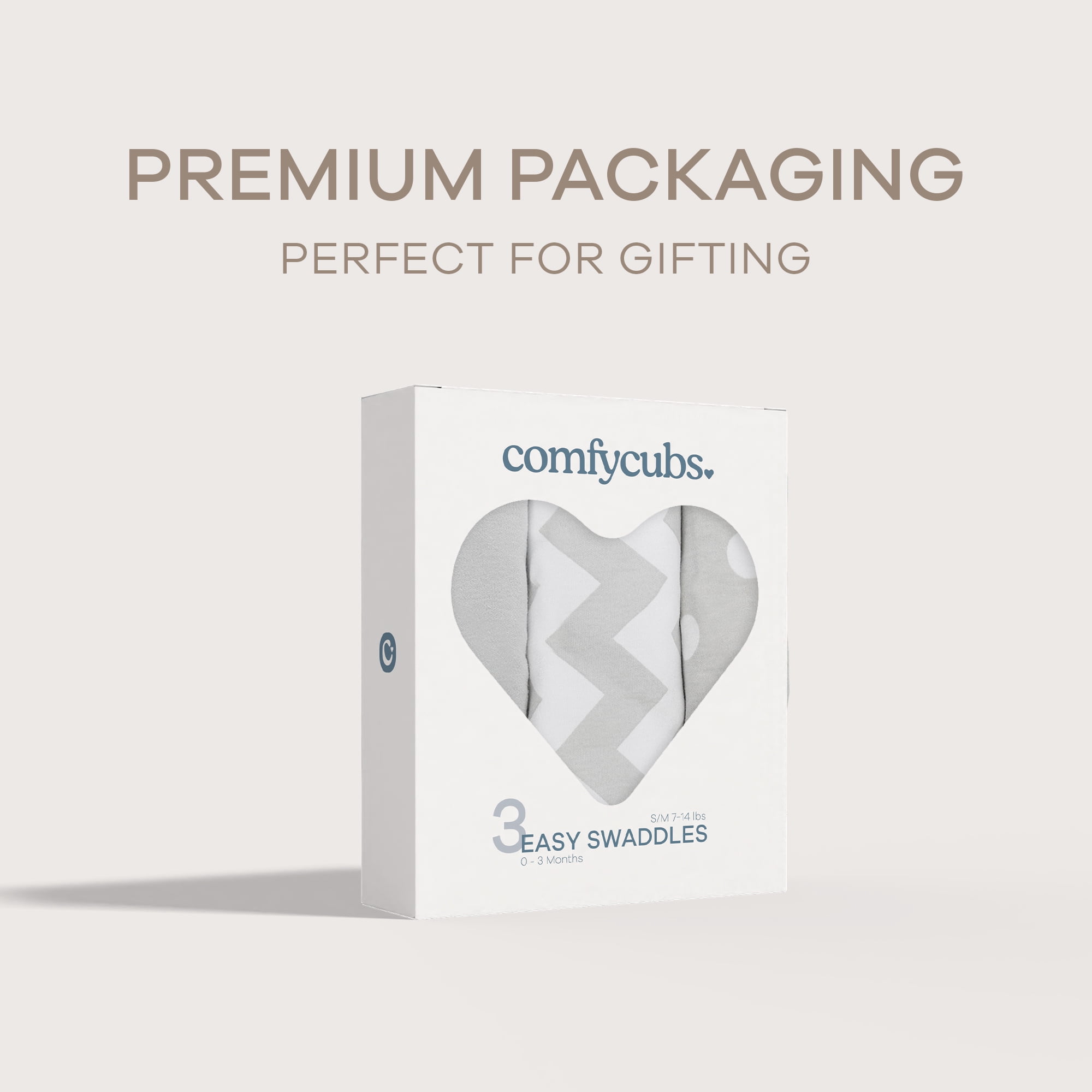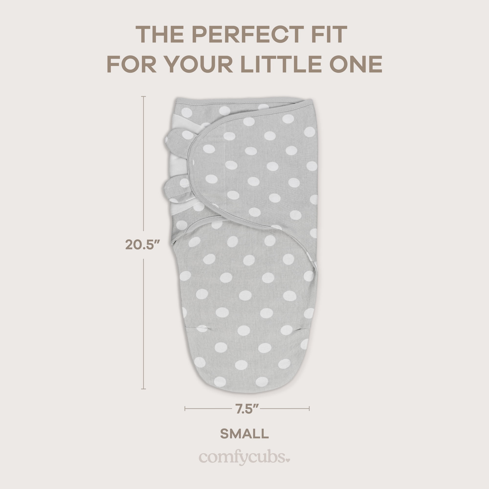 Comfy Cubs Baby Swaddles, Easy Adjustable 3 Pack for Boys and Girls (Small 0-3 Months, Gray)