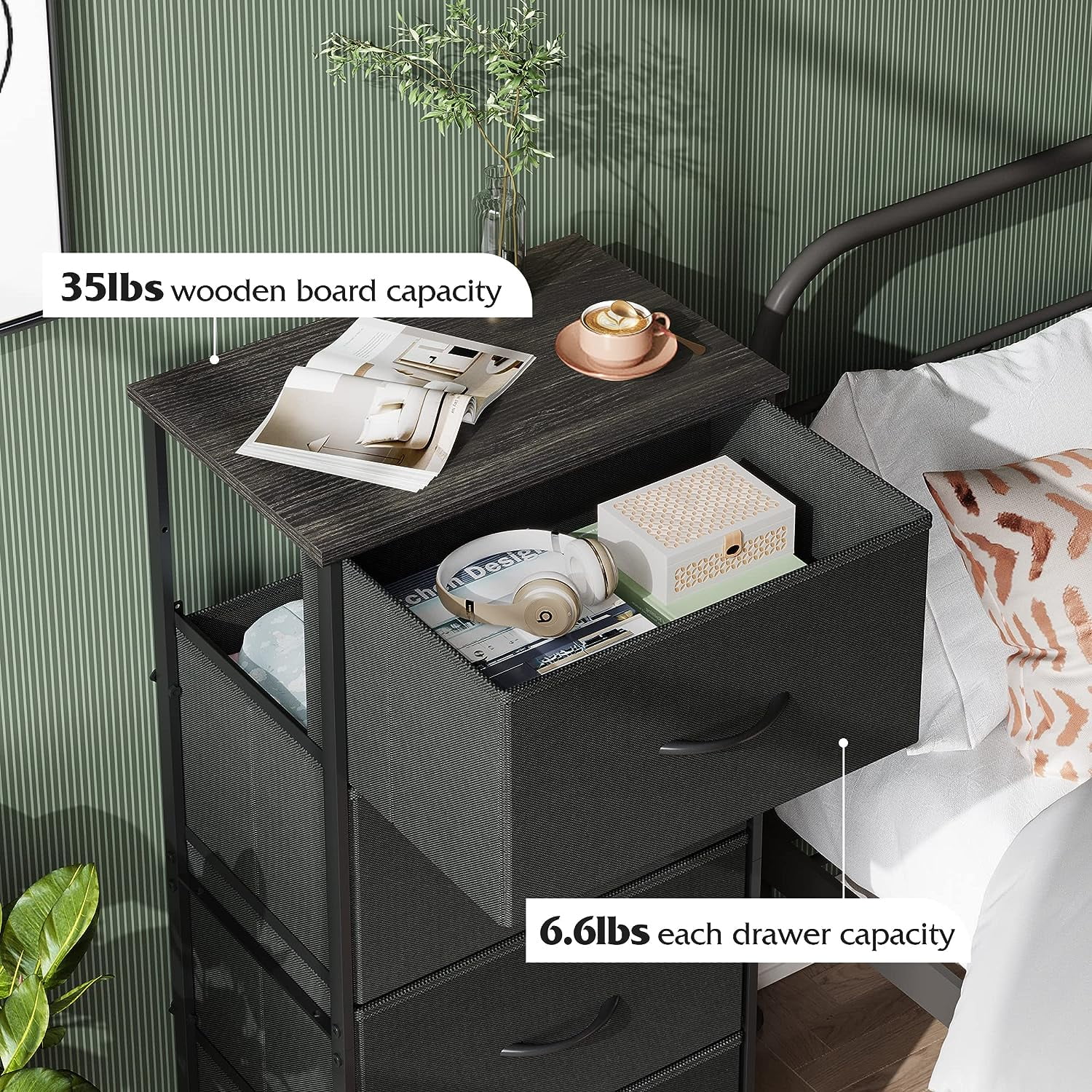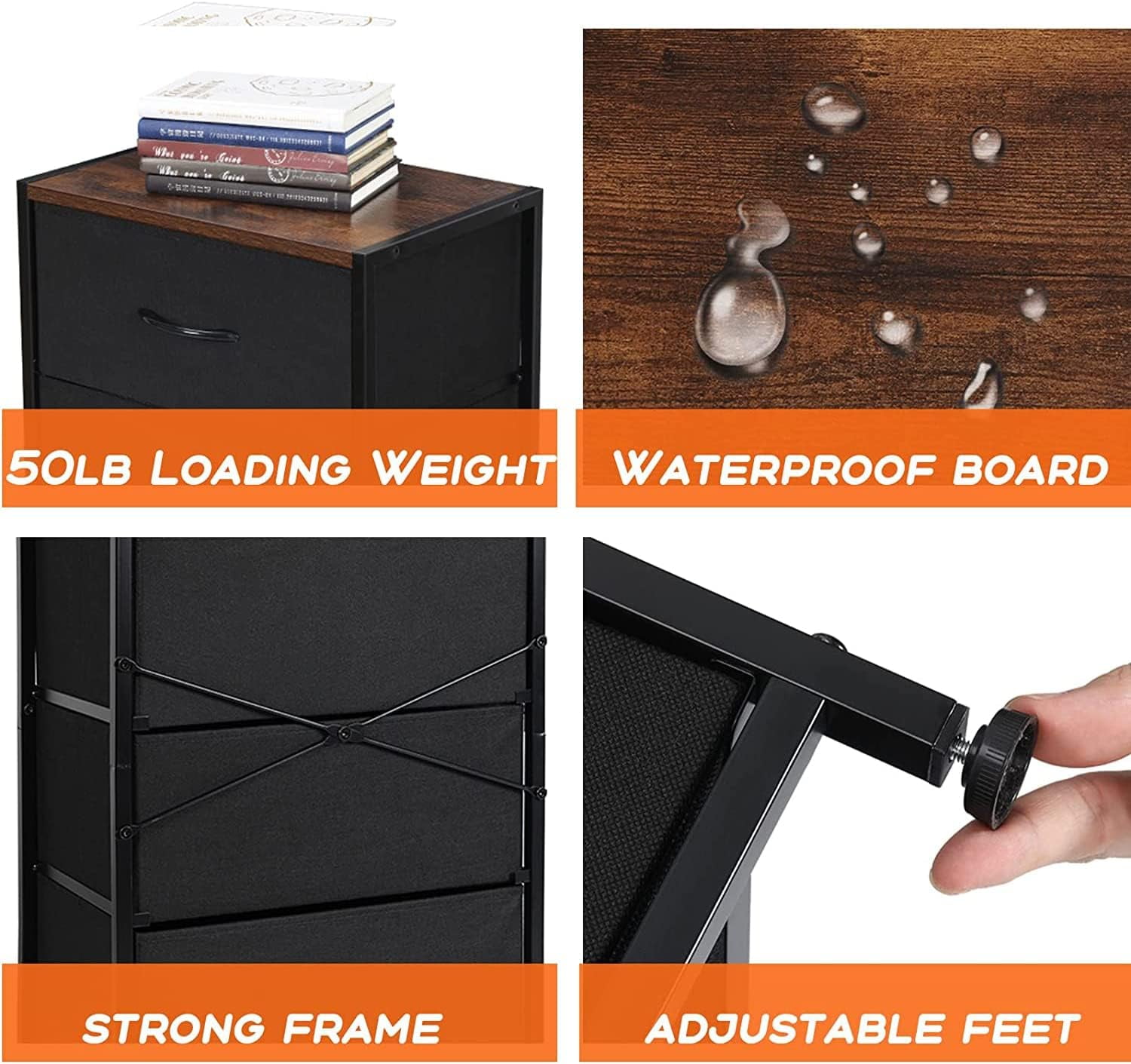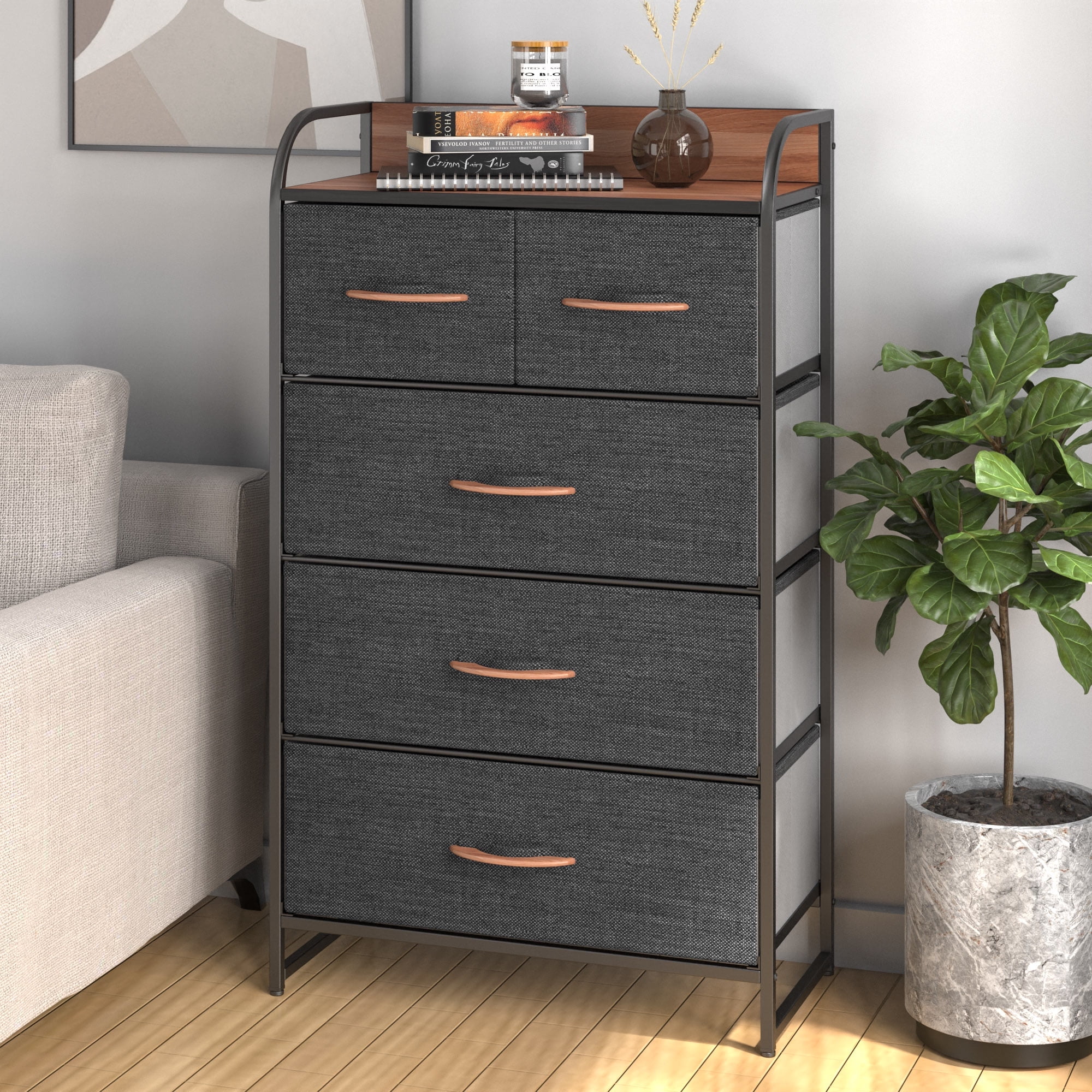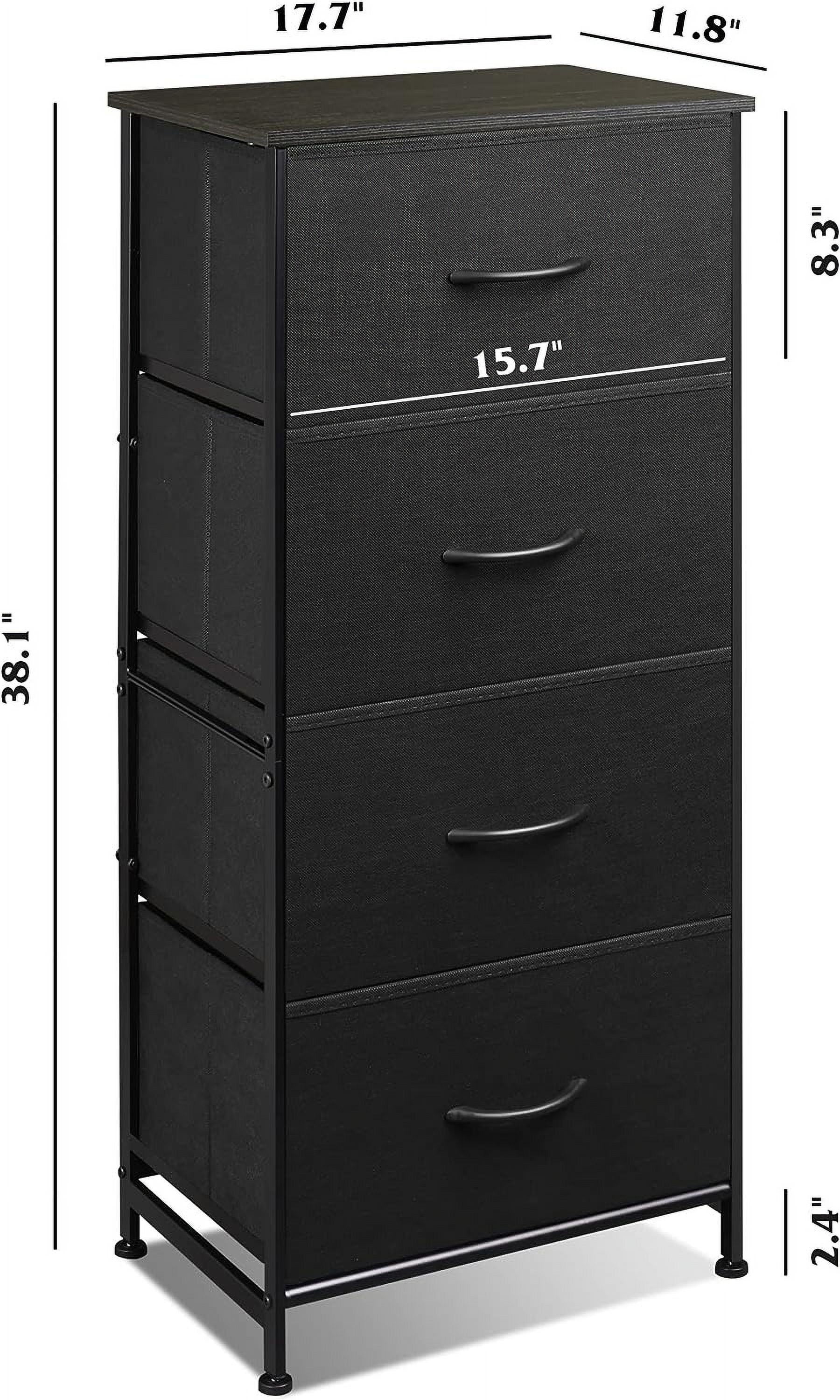 Efficient and Stylish Storage: The COMHOMA 4 Drawer Fabric Dresser is a sleek and functional storage solution designed for closets, bedrooms, and dorm rooms. Its thoughtfully organized structure offers ample space to neatly arrange your belongings, keeping your living area tidy and well-organized. Sturdy and Durable Build: Crafted with a robust frame and premium black fabric, this dresser is built to withstand daily use. Its solid construction ensures it can handle the demands of everyday life, guaranteeing long-lasting reliability. 4 Spacious Drawers: Boasting four generously sized drawers, this dresser provides extensive storage capacity. The drawers glide smoothly, making it easy and convenient to access your belongings. This promotes seamless organization and efficiency. Versatile Placement Possibilities: With its compact size, this dresser effortlessly fits into various settings. Whether you’re furnishing a bedroom, dorm room, or closet, it blends seamlessly with your existing decor, offering a versatile storage solution. Modern Elegance in Black: Featuring a sleek black finish, the COMHOMA 4 Drawer Fabric Dresser adds a touch of modern elegance to any space. Its contemporary design ensures it remains a stylish and functional piece in your living area for years to come.