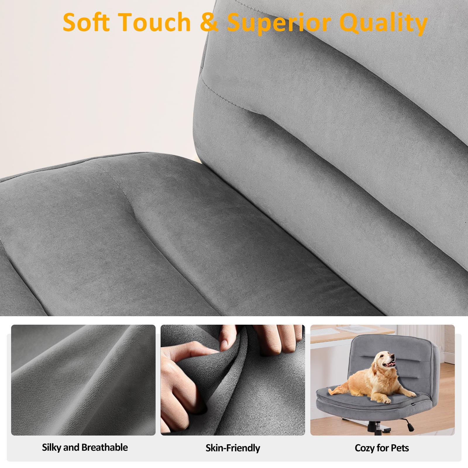 COMHOMA Armless Office Desk Chair, Criss Cross Swivel Chair with Wheels, Wide Seat Adult Vanity Chair for Home Office , Gray