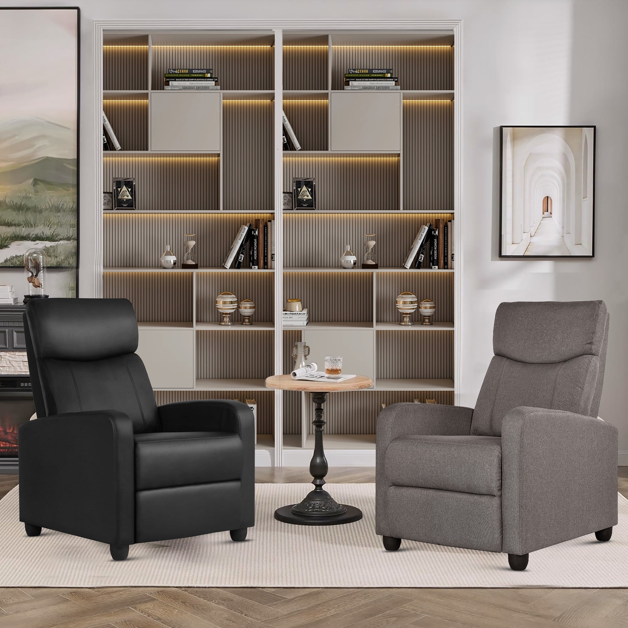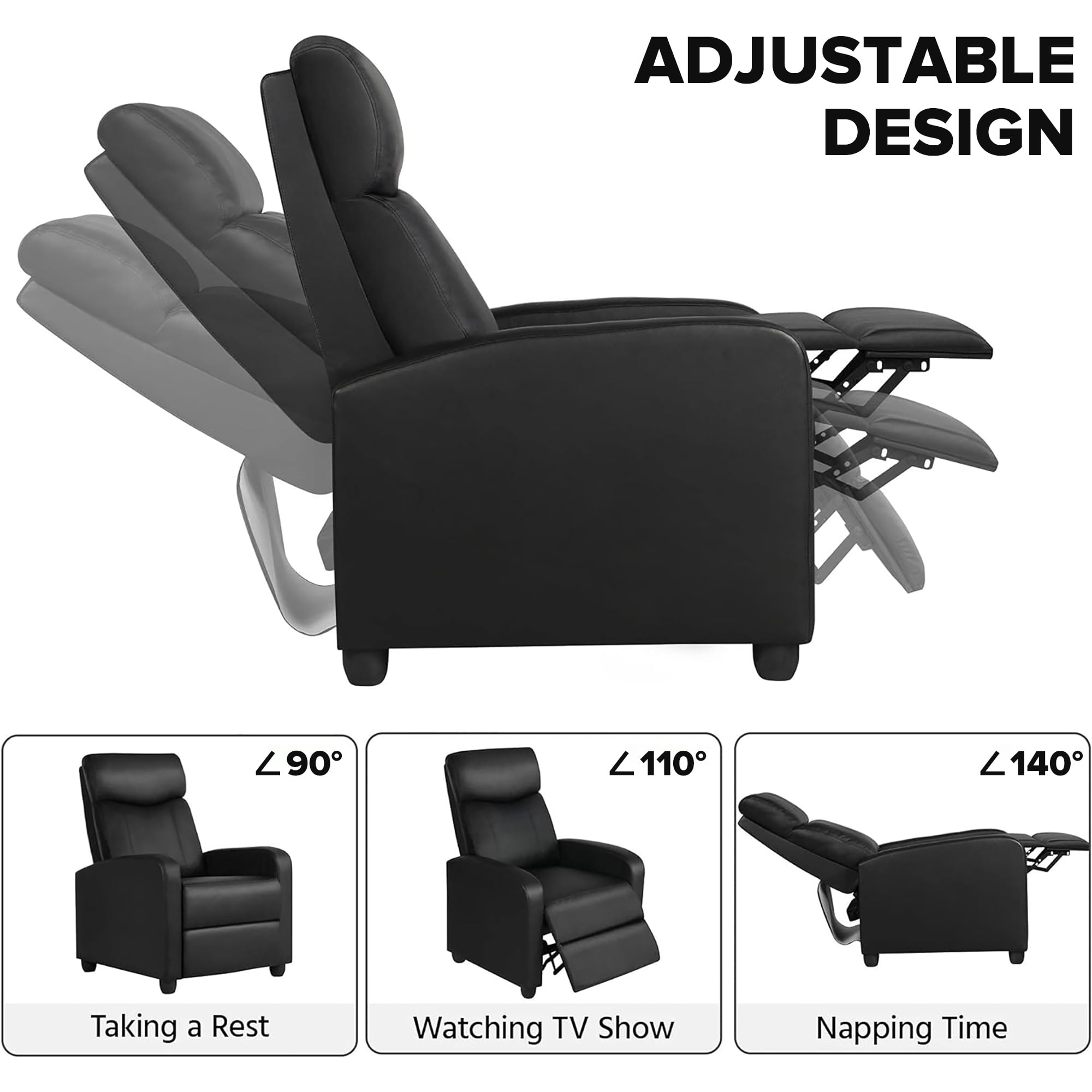COMHOMA Faux PU Leather Push-Back Recliners, Black
