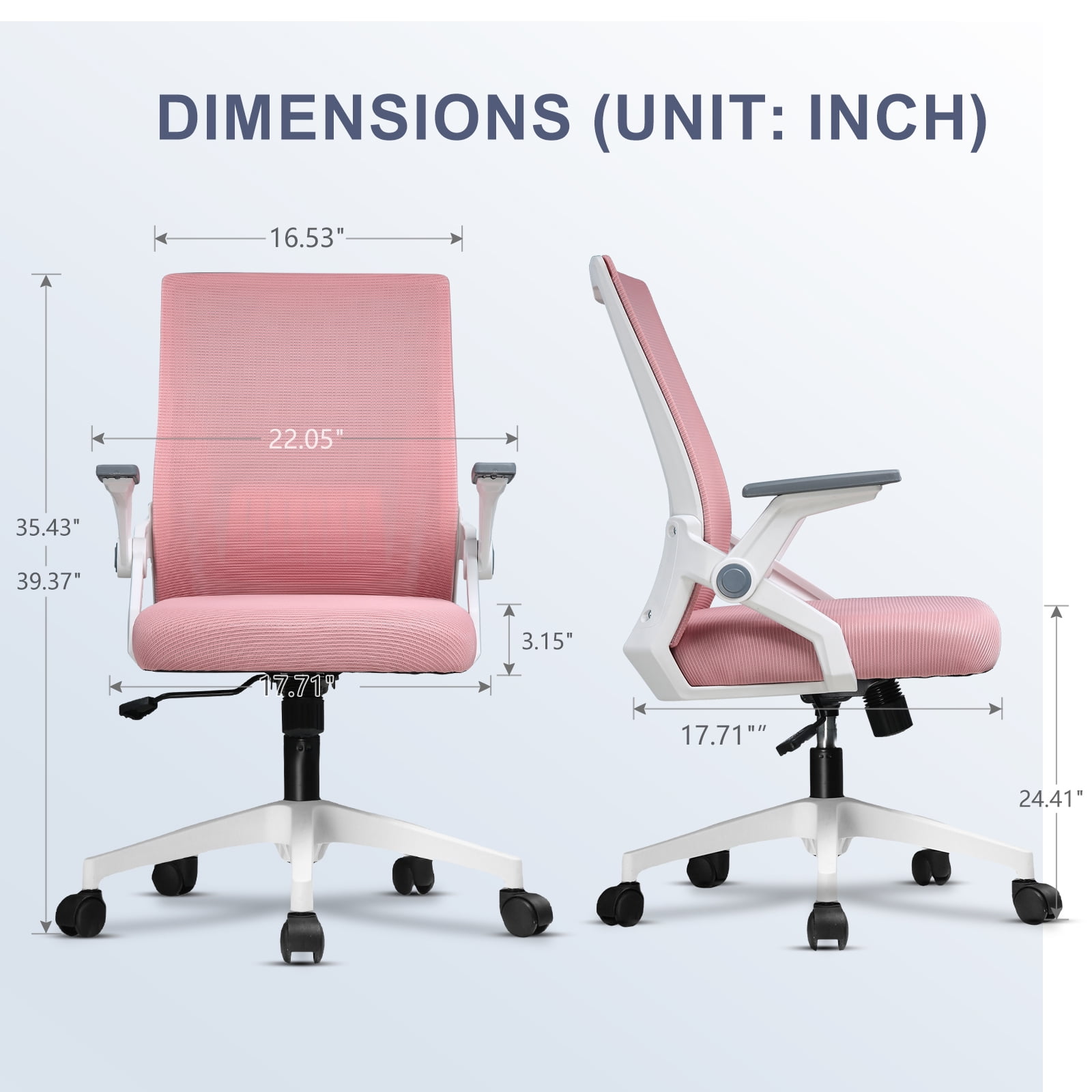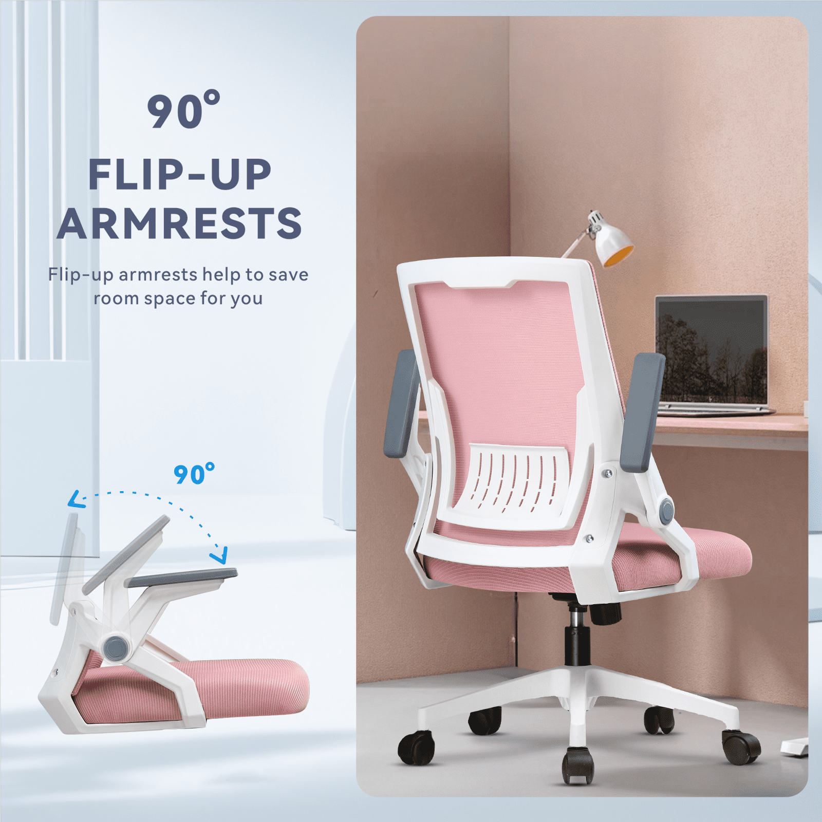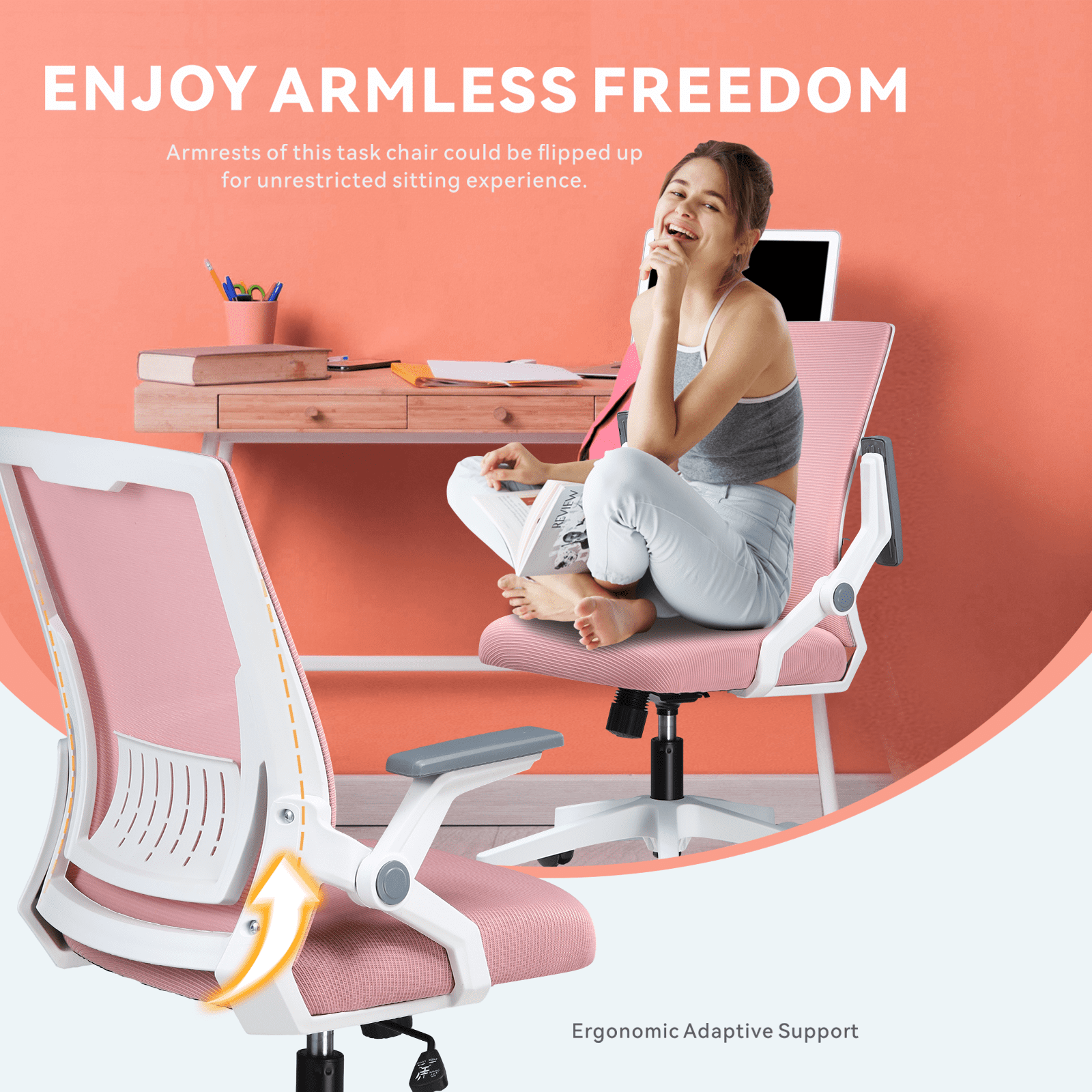 COMHOMA Mesh Office Chair with Flip-Up Armrests Mid Back Computer Chair, Pink