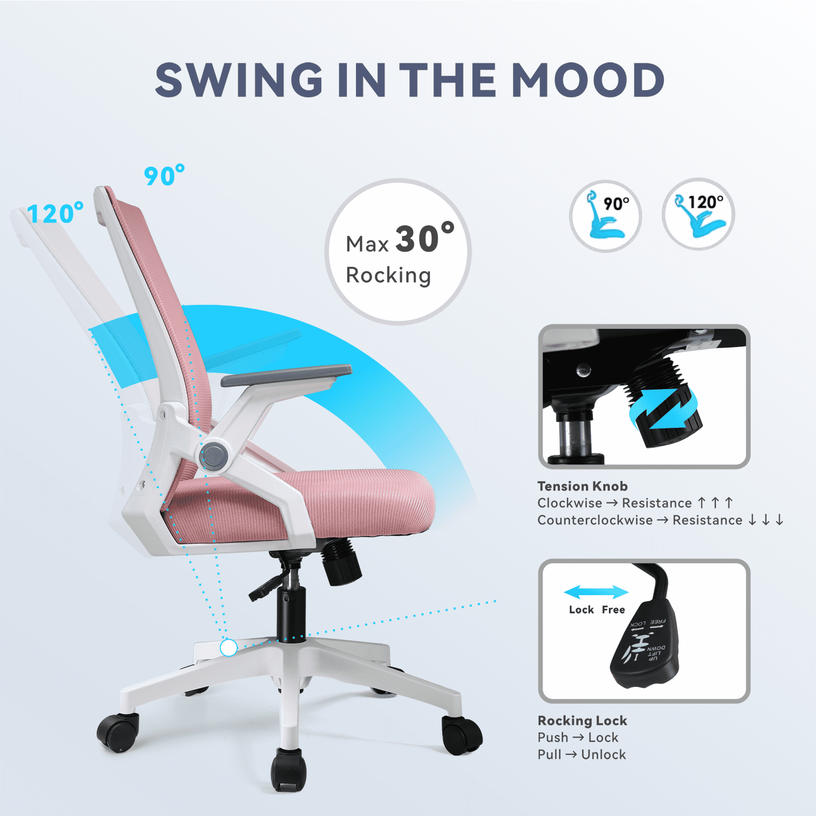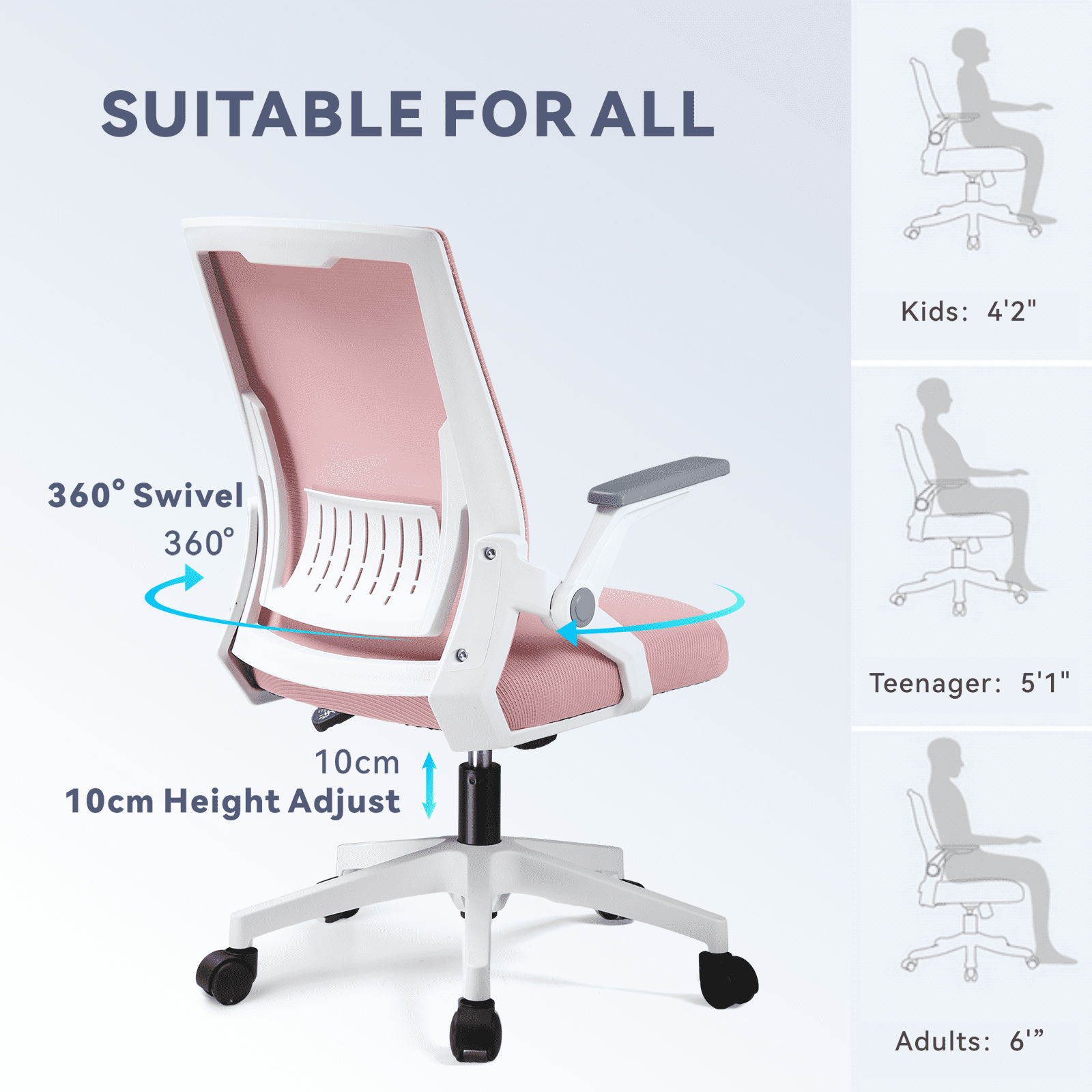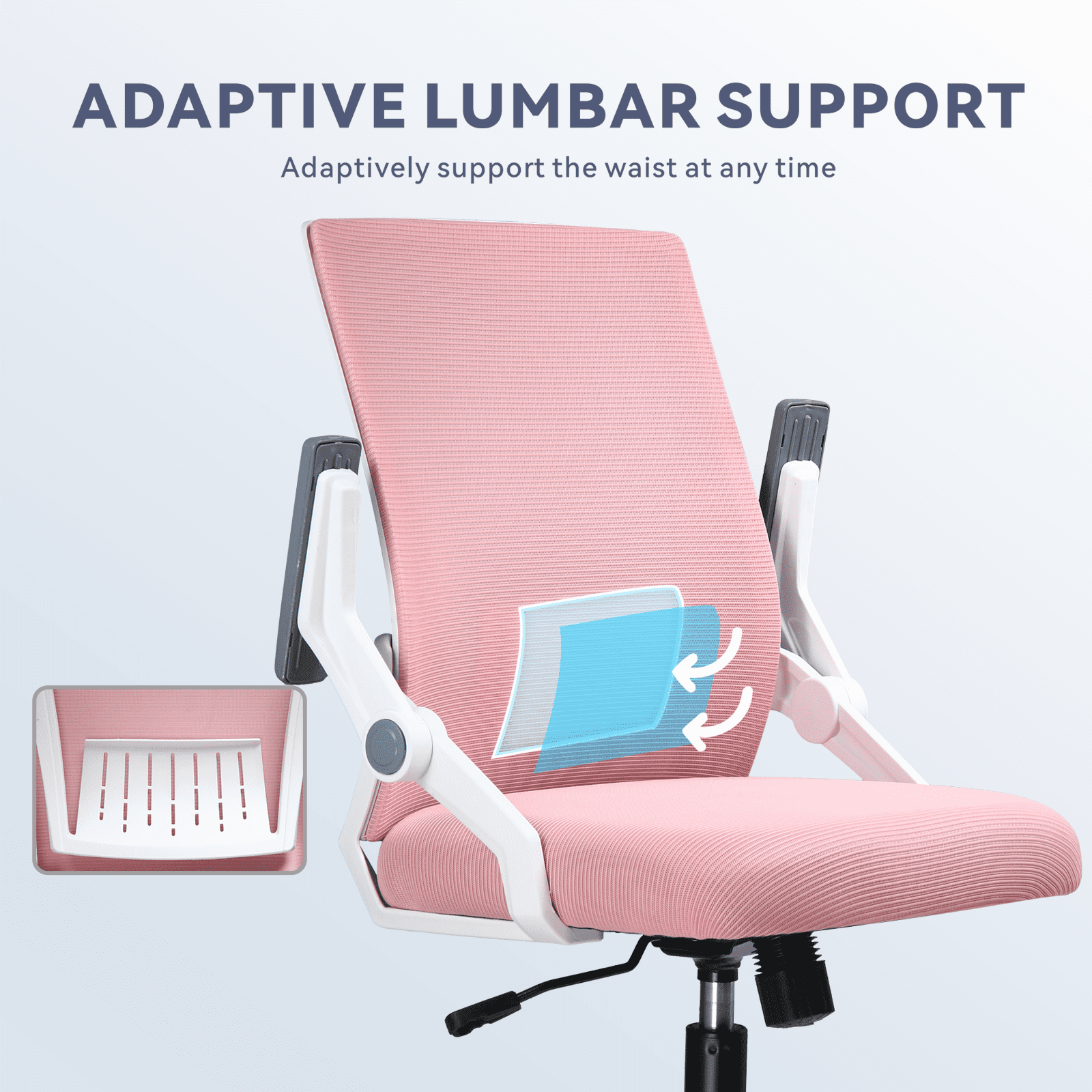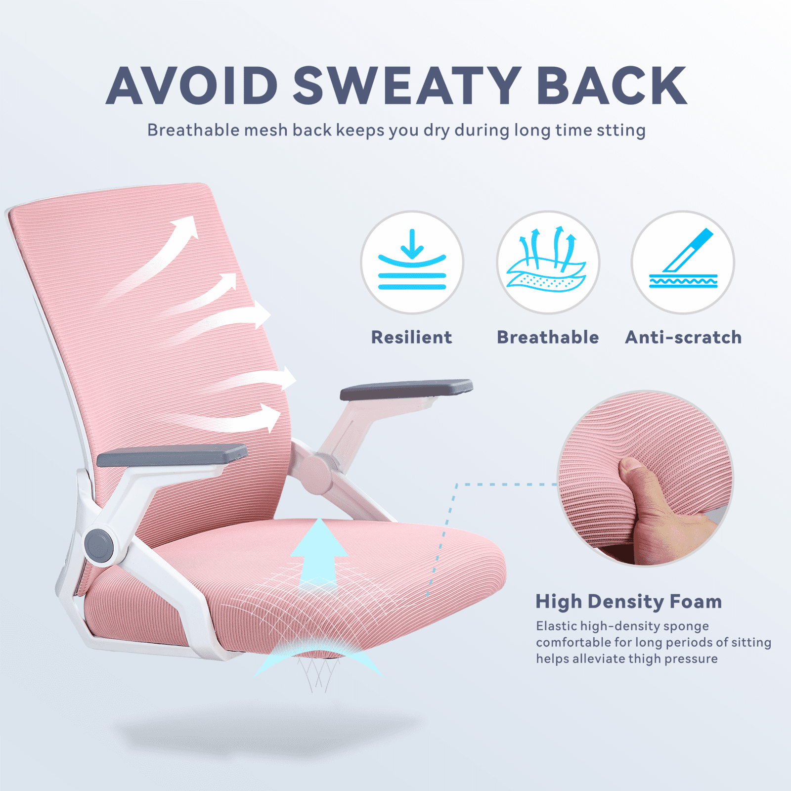 COMHOMA Mesh Office Chair with Flip-Up Armrests Mid Back Computer Chair, Pink