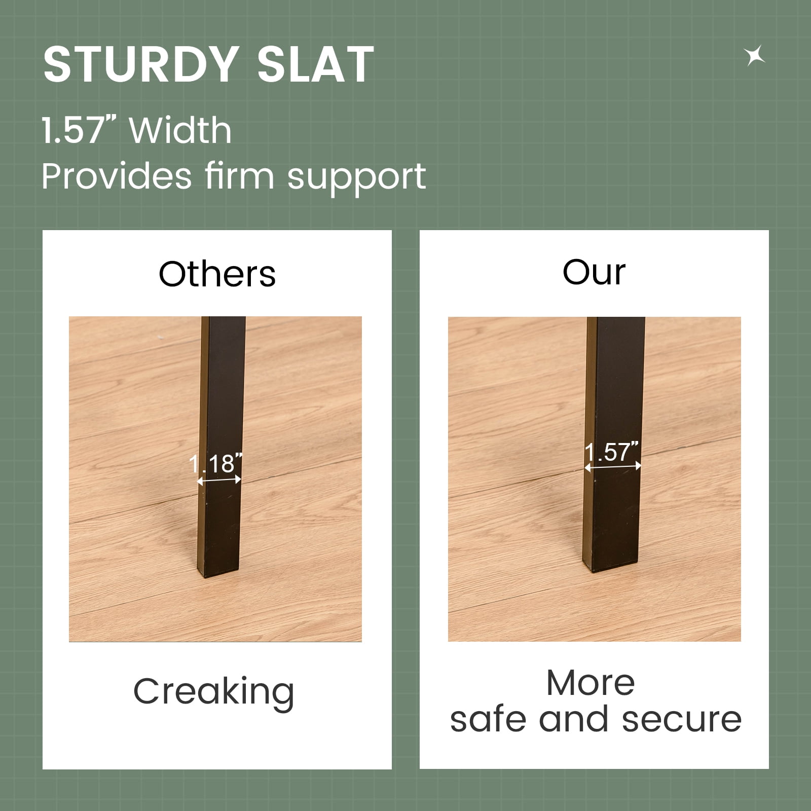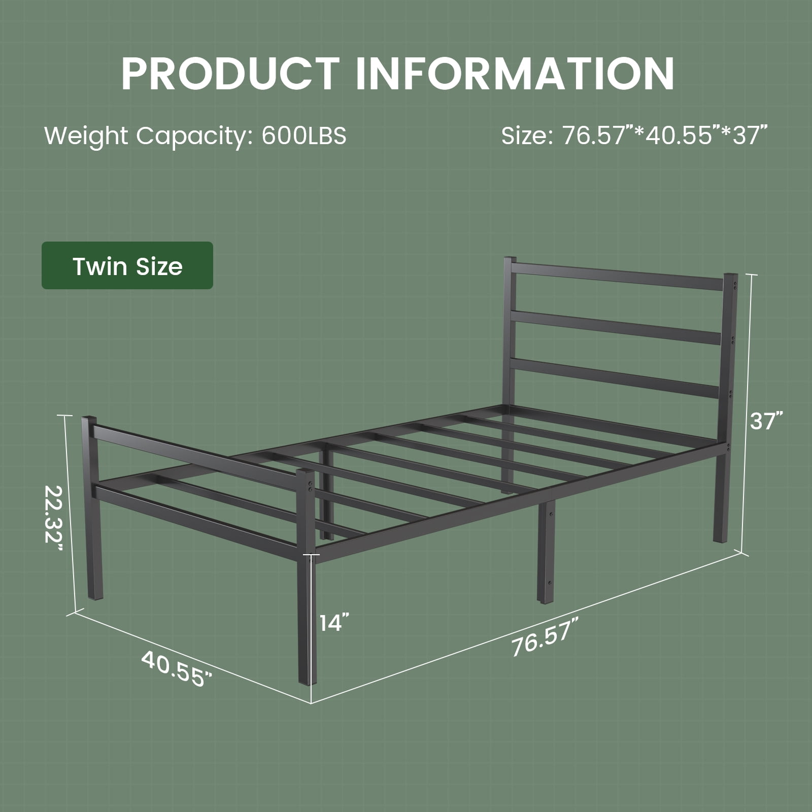 Note: This metal bed frame is Twin size, not Twin-XL. No box spring required. Heavy-duty capacity: Strong 600-pound weight capacity, easily supporting your mattress. Sturdy structure: Nine sturdy legs and solid railing slats, no need for additional box springs or gliders. Low maintenance: Compared to soft-pack beds that are prone to stains, our metal bed requires almost no maintenance. Anti-insect features: Unlike wooden beds, metal beds have anti-insect functions, providing a clean and healthy sleeping environment for you. Increased storage space: This cast iron bed frame provides up to 14 inches of clearance under the bed, creating more storage space in your bedroom.